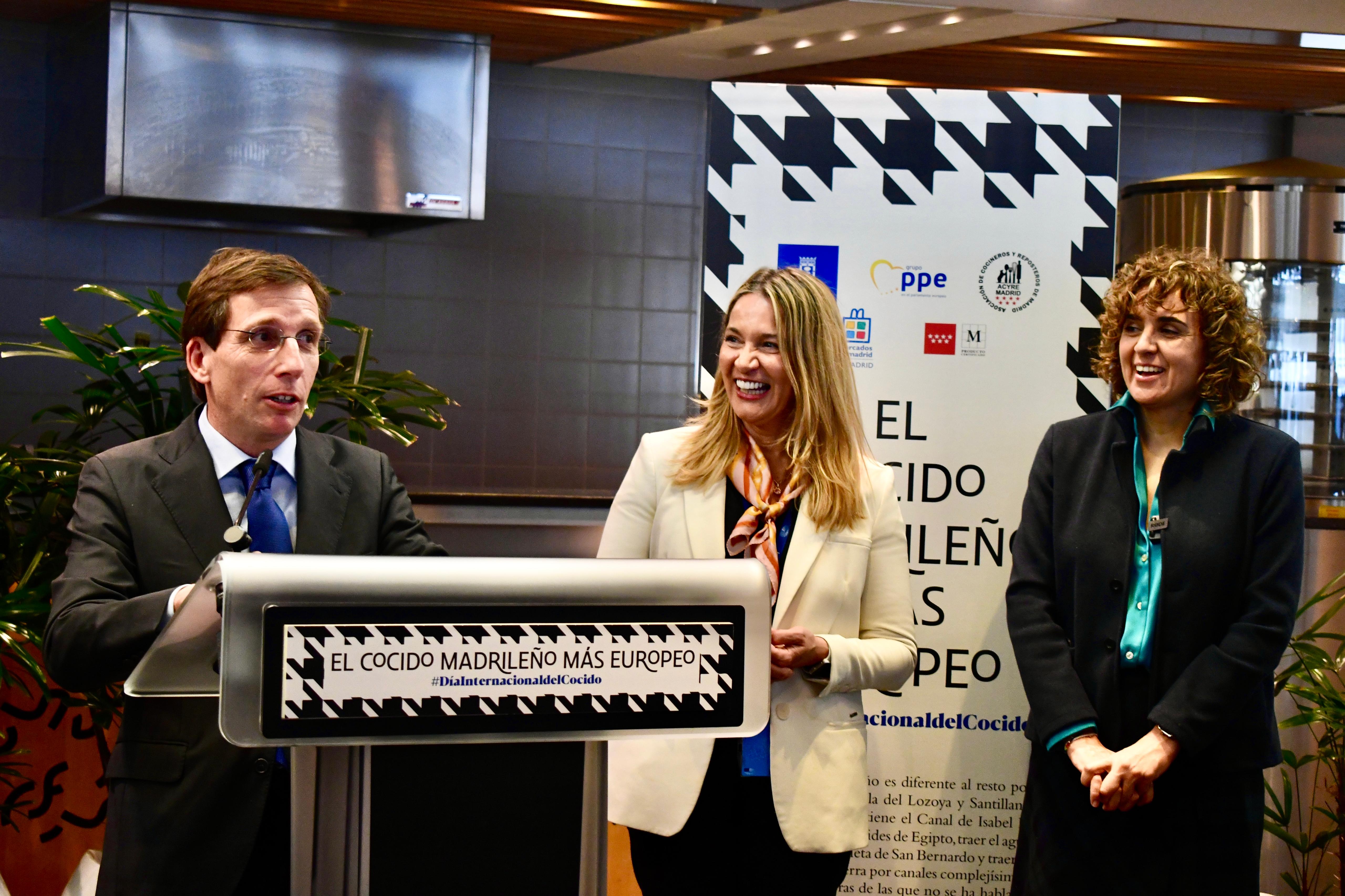 El alcalde de Madrid, José Luis Martínez-Almeida, acompañado de la concejala delegada de Turismo, Almudena Maíllo, ha participado hoy en Bruselas en un acto de promoción del cocido madrileño, organizado por la Asociación de Cocineros y Reposteros de Madrid (ACYRE) en el Parlamento Europeo, con motivo de la celebración, la próxima semana, del Día Internacional del Cocido.