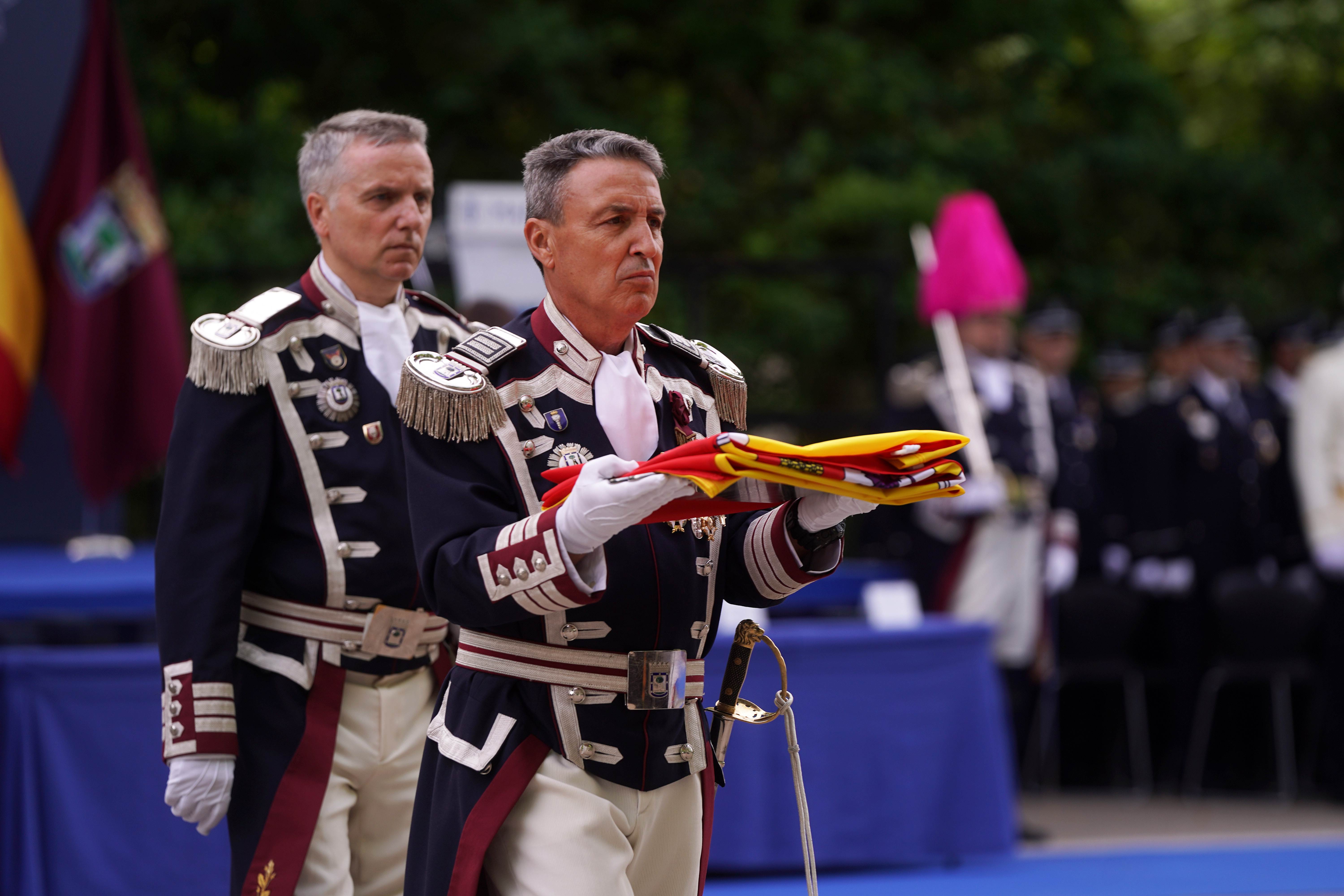 - El acto ha concluido con el tradicional desfile de las unidades del cuerpo, entre ellos el Escuadrón de Caballería, la Banda de Música, la Sección de Policías de Gala y de motoristas de la Unidad de Servicios Especiales y de la Agrupación de Tráfico de la Guardia Civil