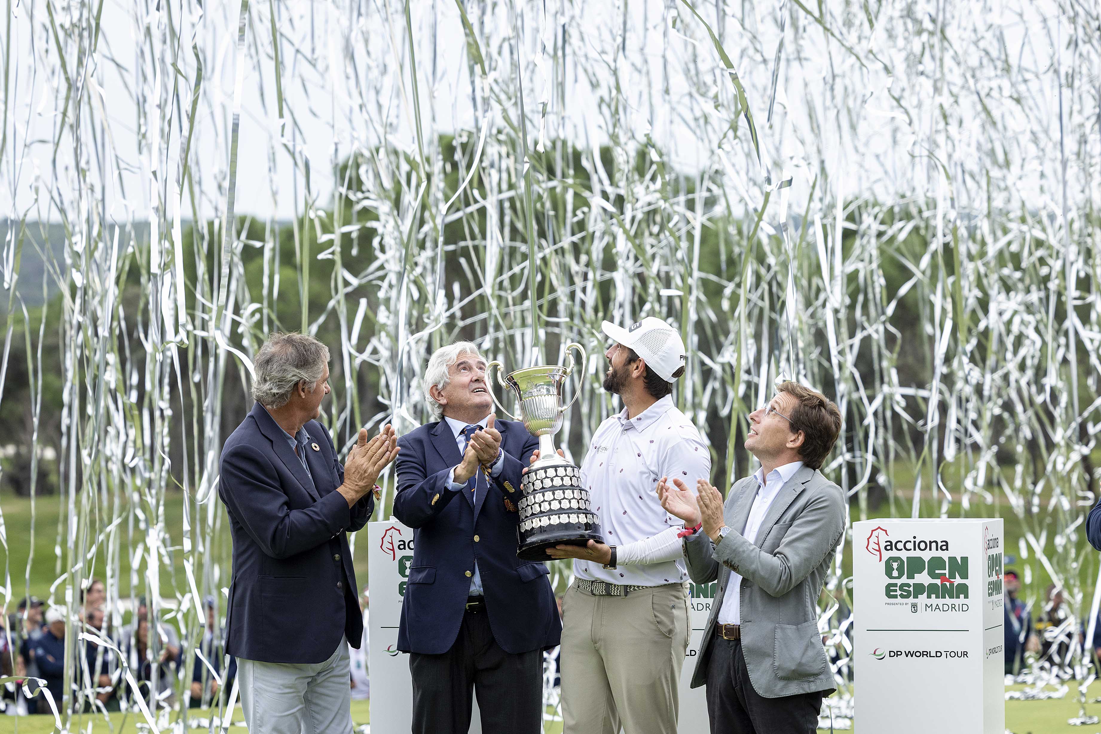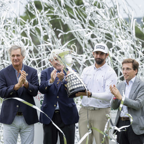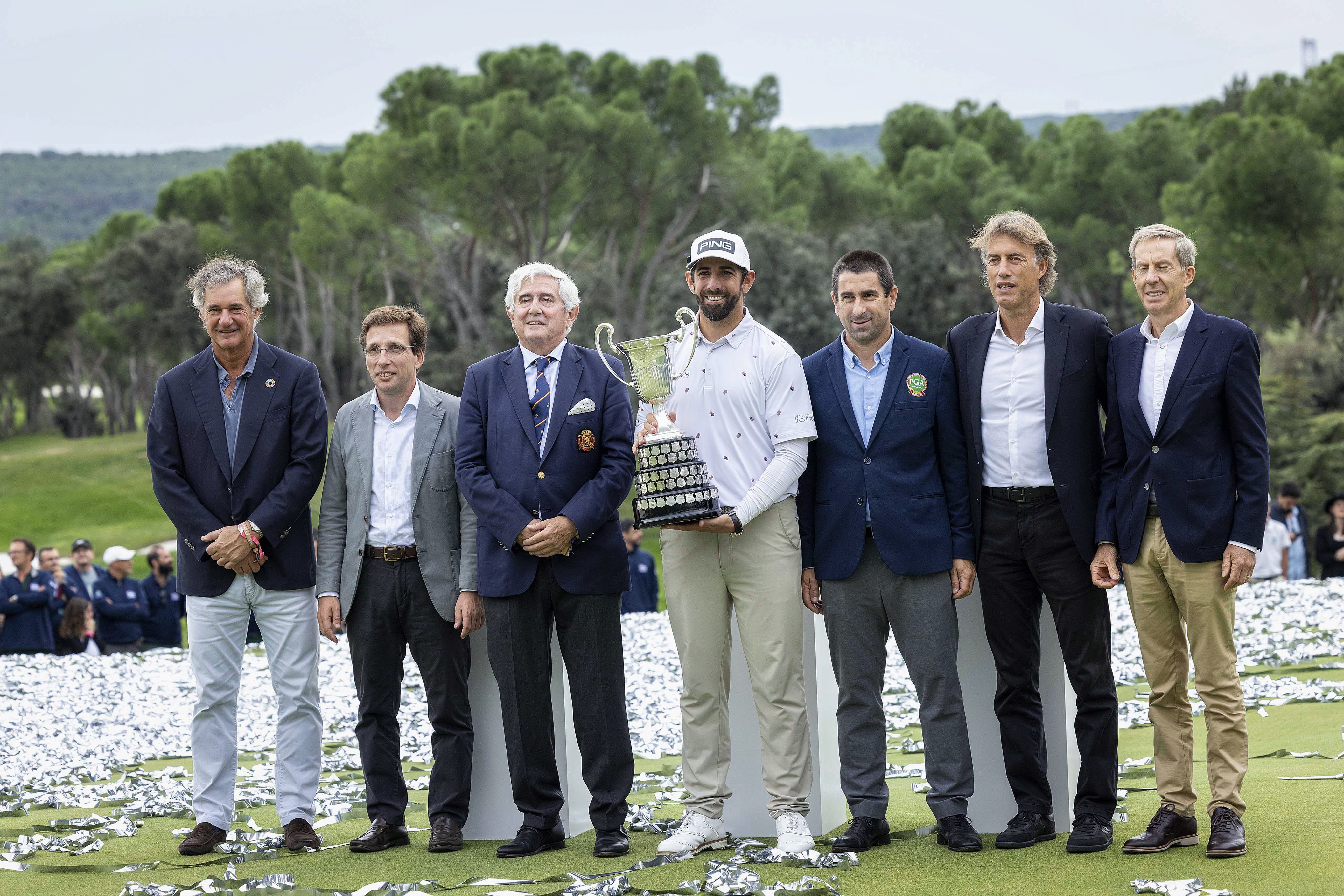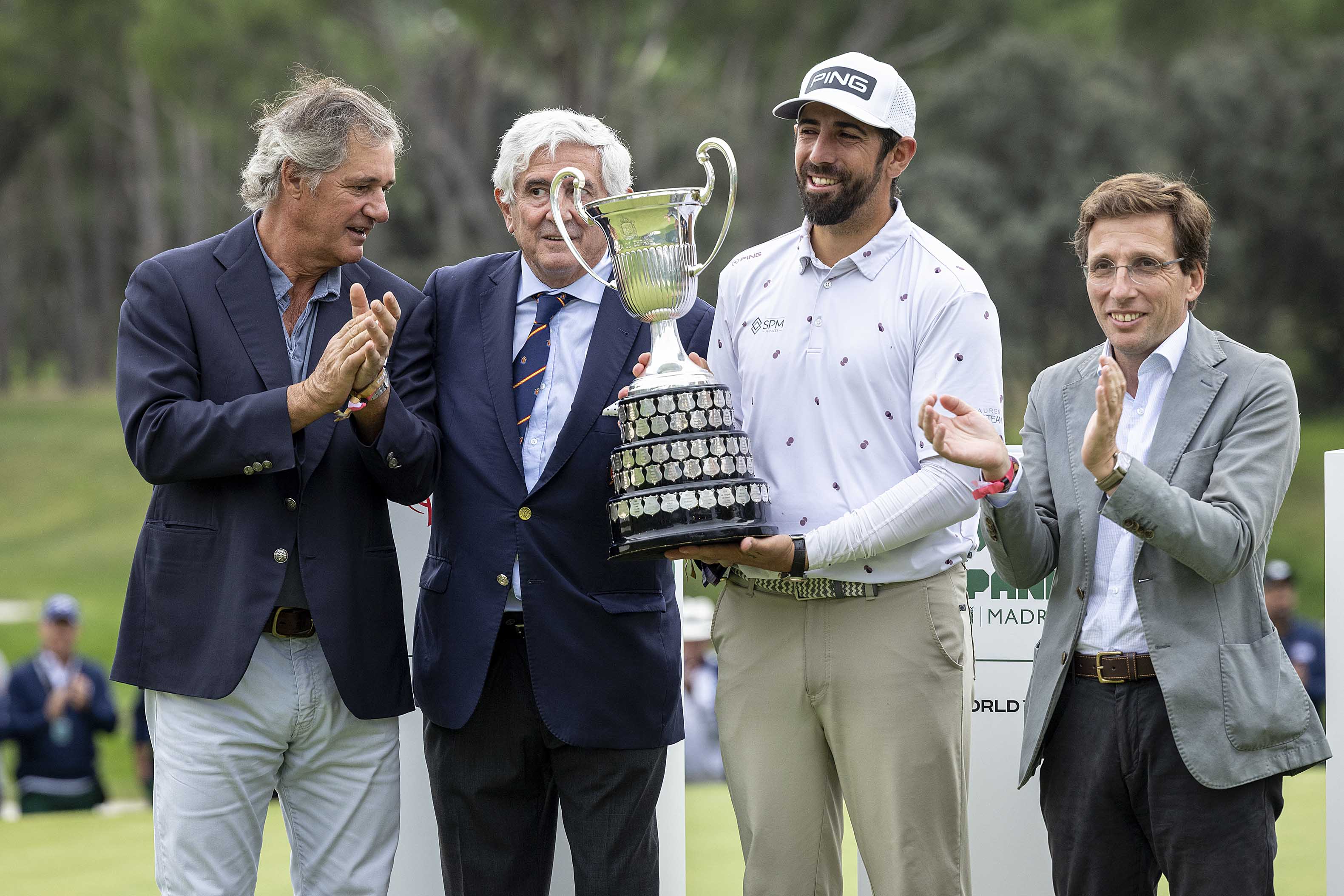 El alcalde de Madrid, José Luis Martínez-Almeida, ha entregado, junto al presidente de Acciona, José Manuel Entrecanales, y el presidente de la Real Federación Española de Golf, Gonzaga Escauriaza, el trofeo del Acciona Open de España presented by Madrid a Matthieu Pavon como vencedor del torneo.