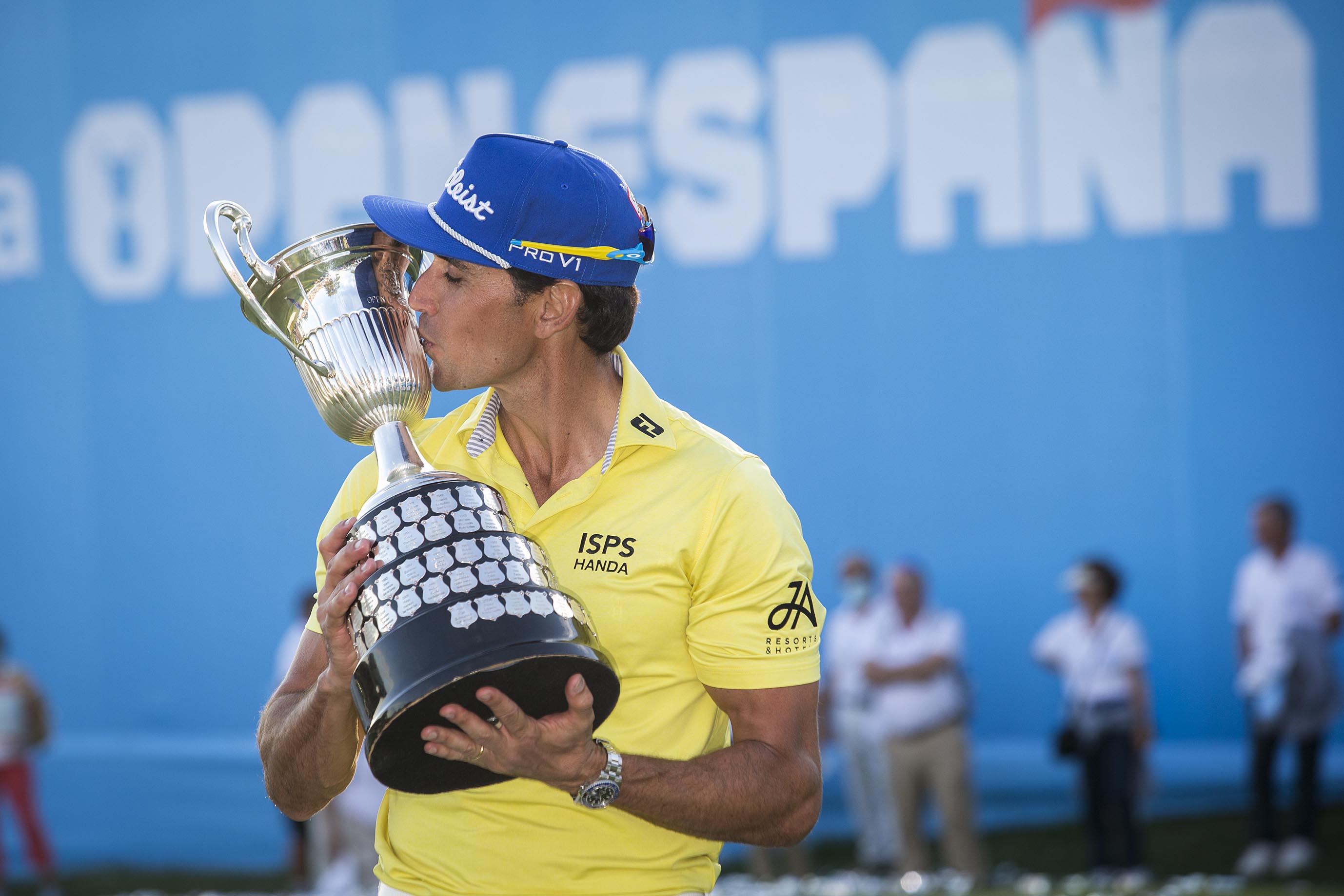 Almeida entrega a Rafa Cabrera el trofeo del Open de España de Golf