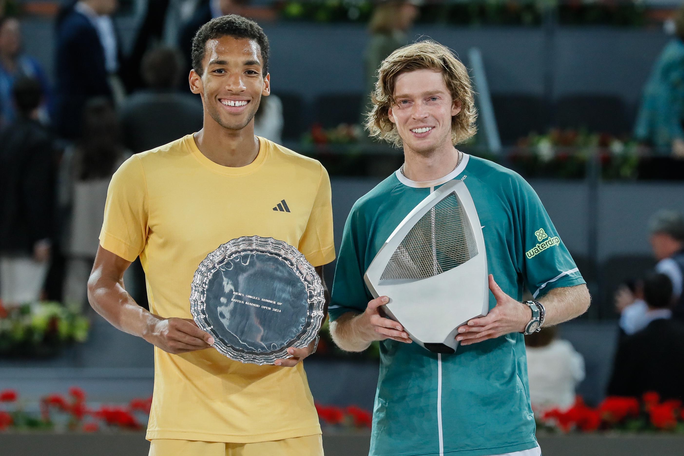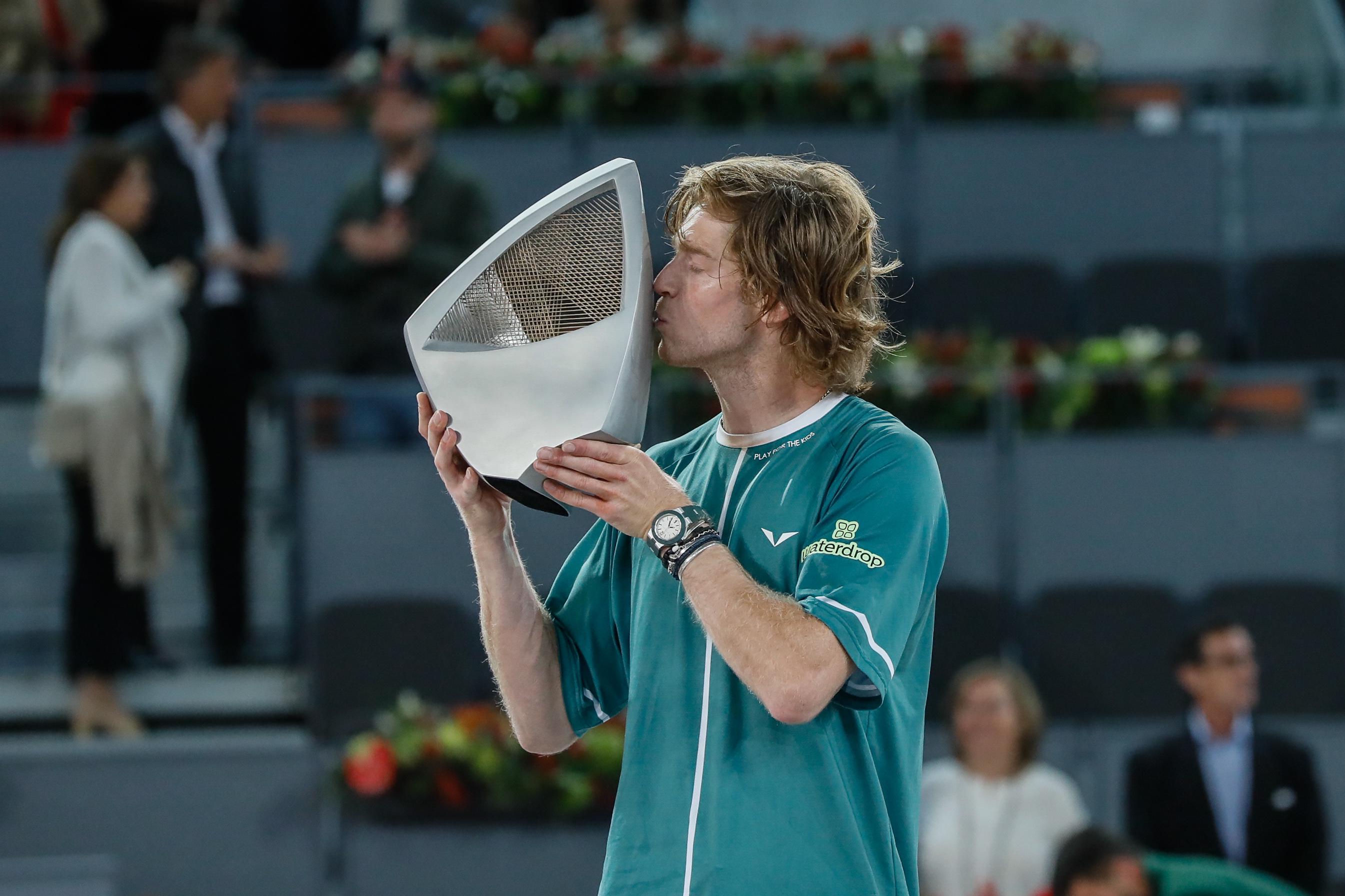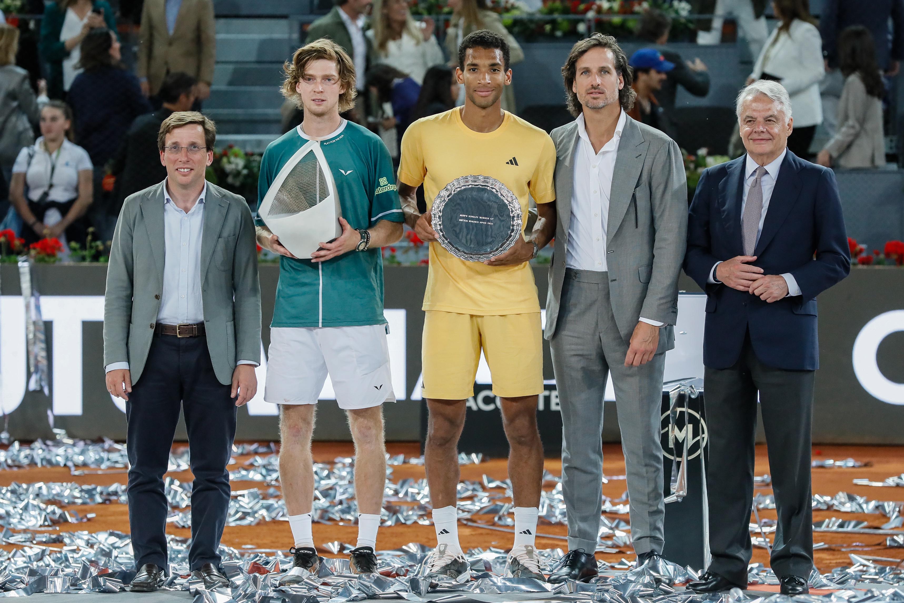 Almeida entrega el trofeo del Mutua Madrid Open a Andrey Rublev