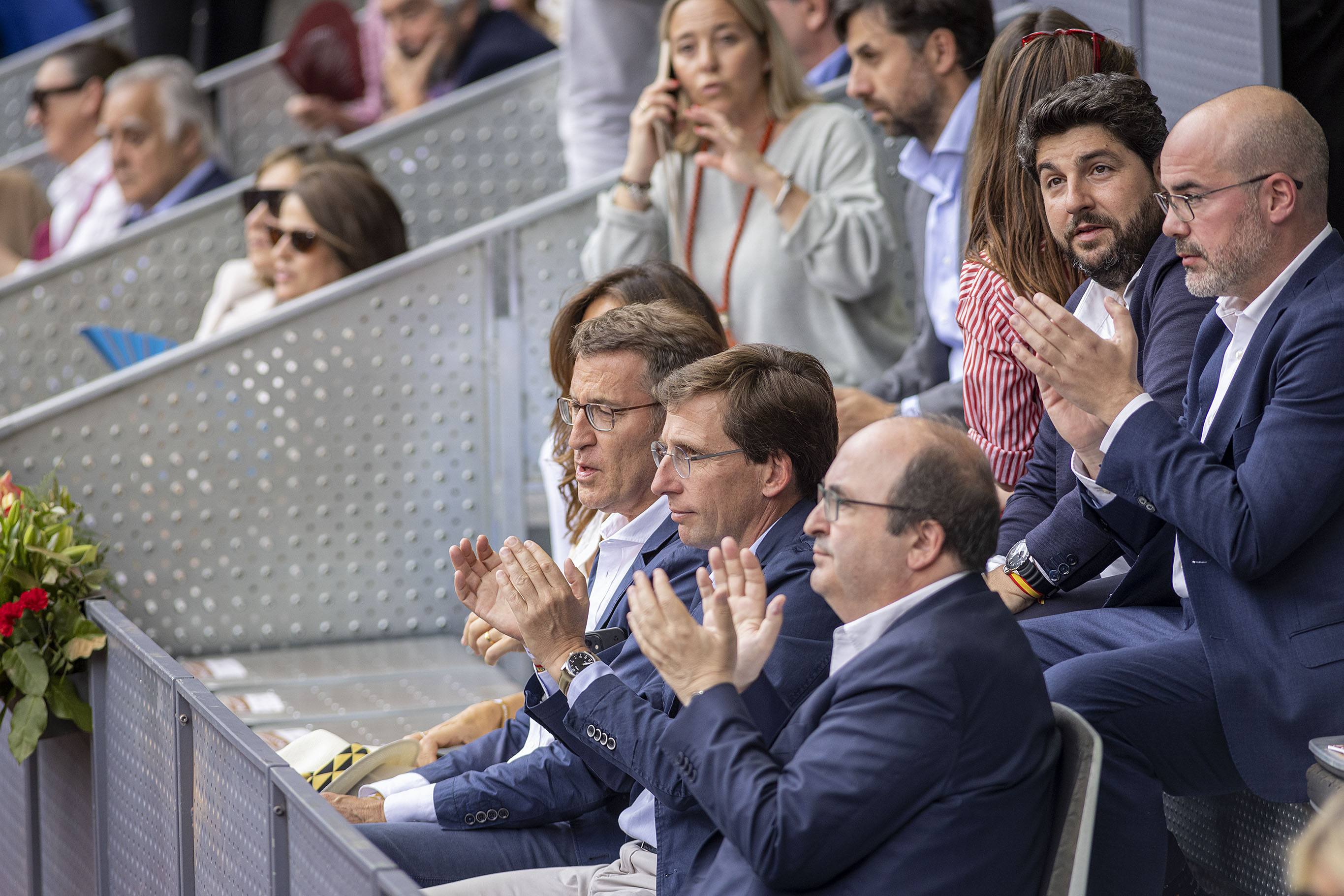 El alcalde de Madrid, José Luis Martínez-Almeida, ha hecho entrega del trofeo de campeón del Mutua Madrid Open 2023 a Carlos Alcaraz, junto al director del torneo, Feliciano López, y el presidente de Mutua Madrileña, Ignacio Garralda. Alcaraz ha vencido a Jan-Lennard Struff por 6-4/3-6/6-3 y a sus 20 años ha ganado por segunda vez consecutiva este torneo.