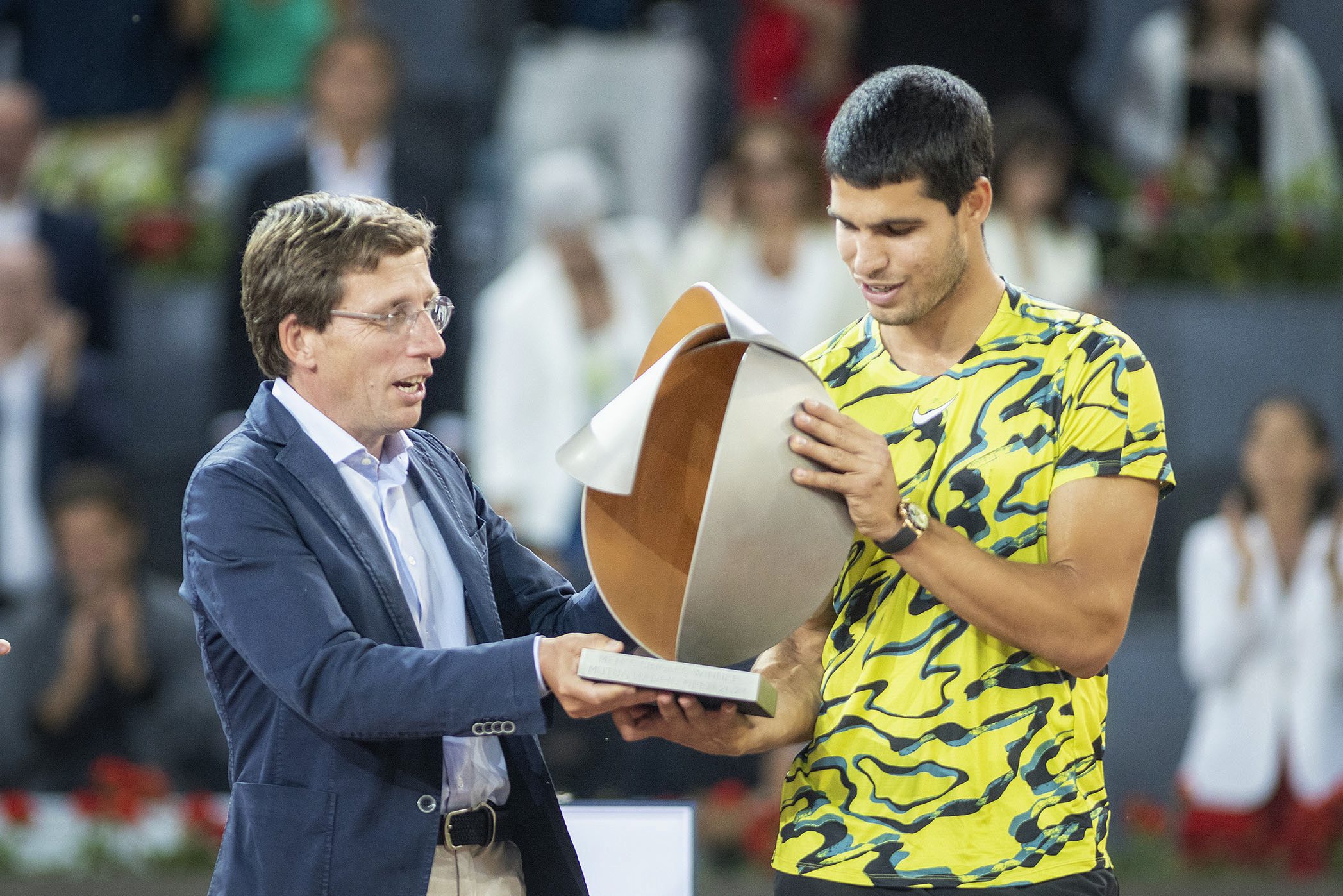 Almeida entrega el trofeo del Mutua Madrid Open a Carlos Alcaraz