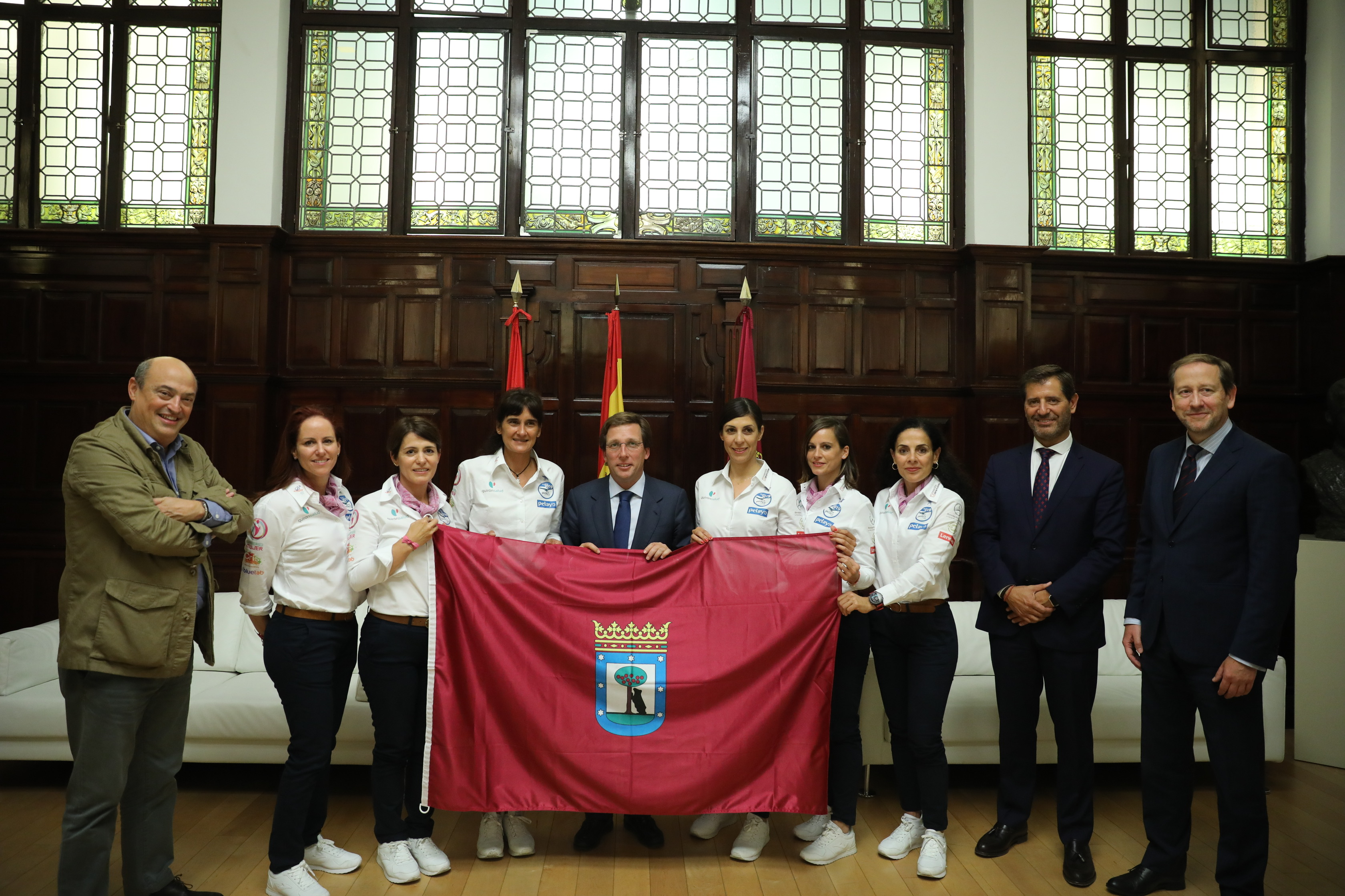 Almeida entrega la bandera de la ciudad de Madrid a las participantes de la prueba de resistencia extrema Reto Pelayo Vida