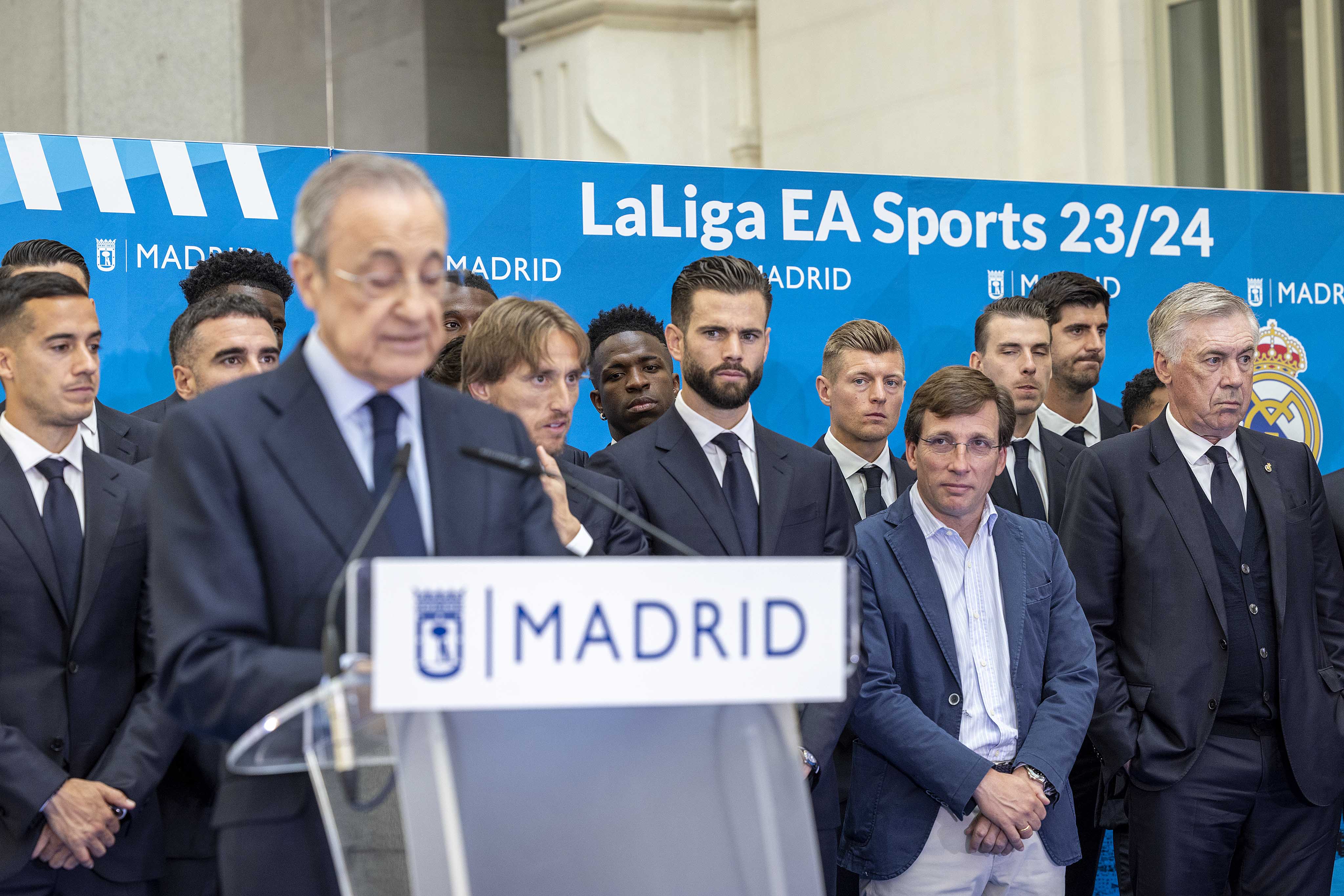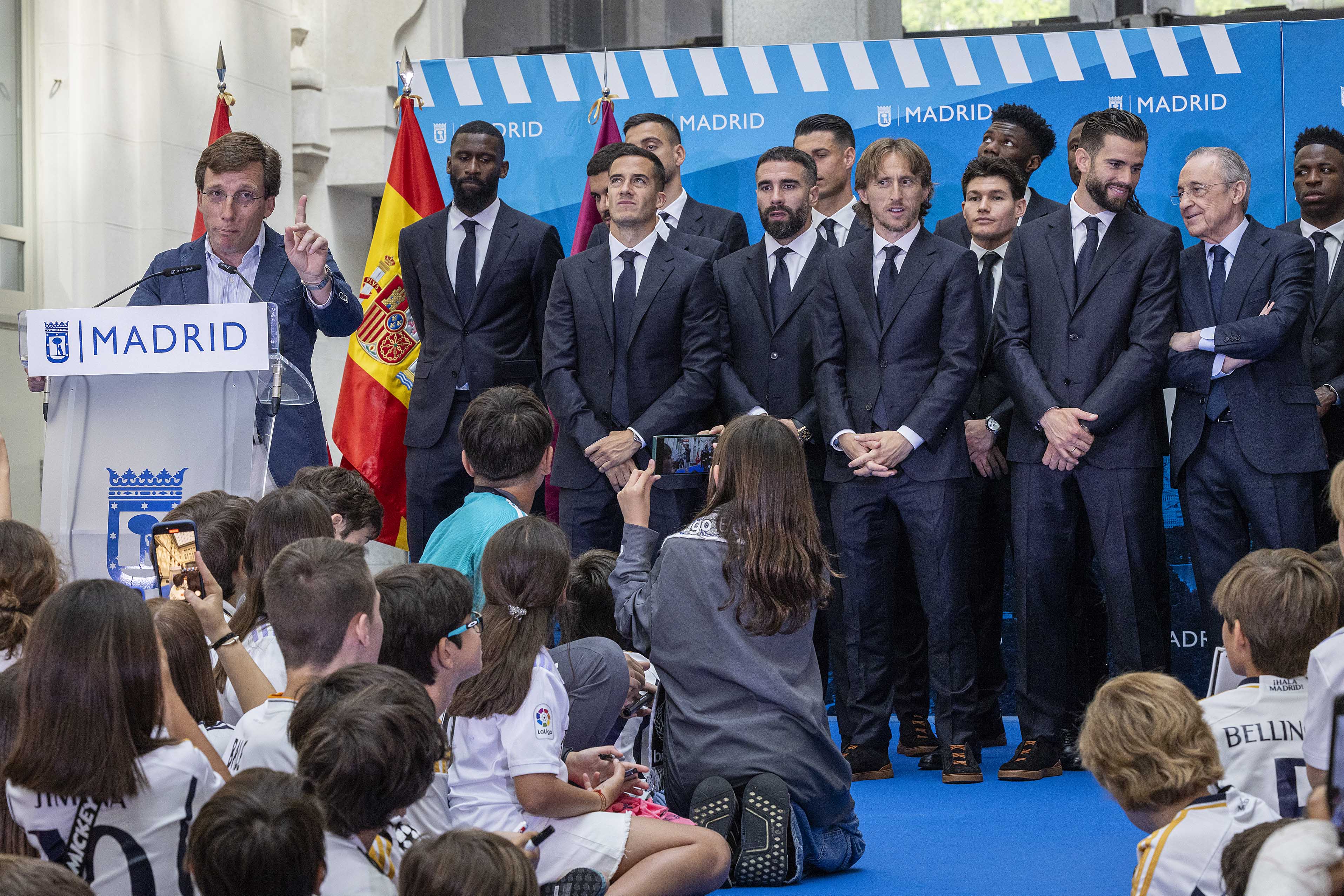 Almeida ha recordado el año difícil que ha vivido el Real Madrid, que “empezó con lesiones muy graves”, pero sus jugadores “lo dieron todo para ser campeones de liga” porque “jamás se rinden y siempre quieren ganar”. Además, se ha mostrado convencido de que próximamente van a volver al Ayuntamiento a celebrar un nuevo título.
