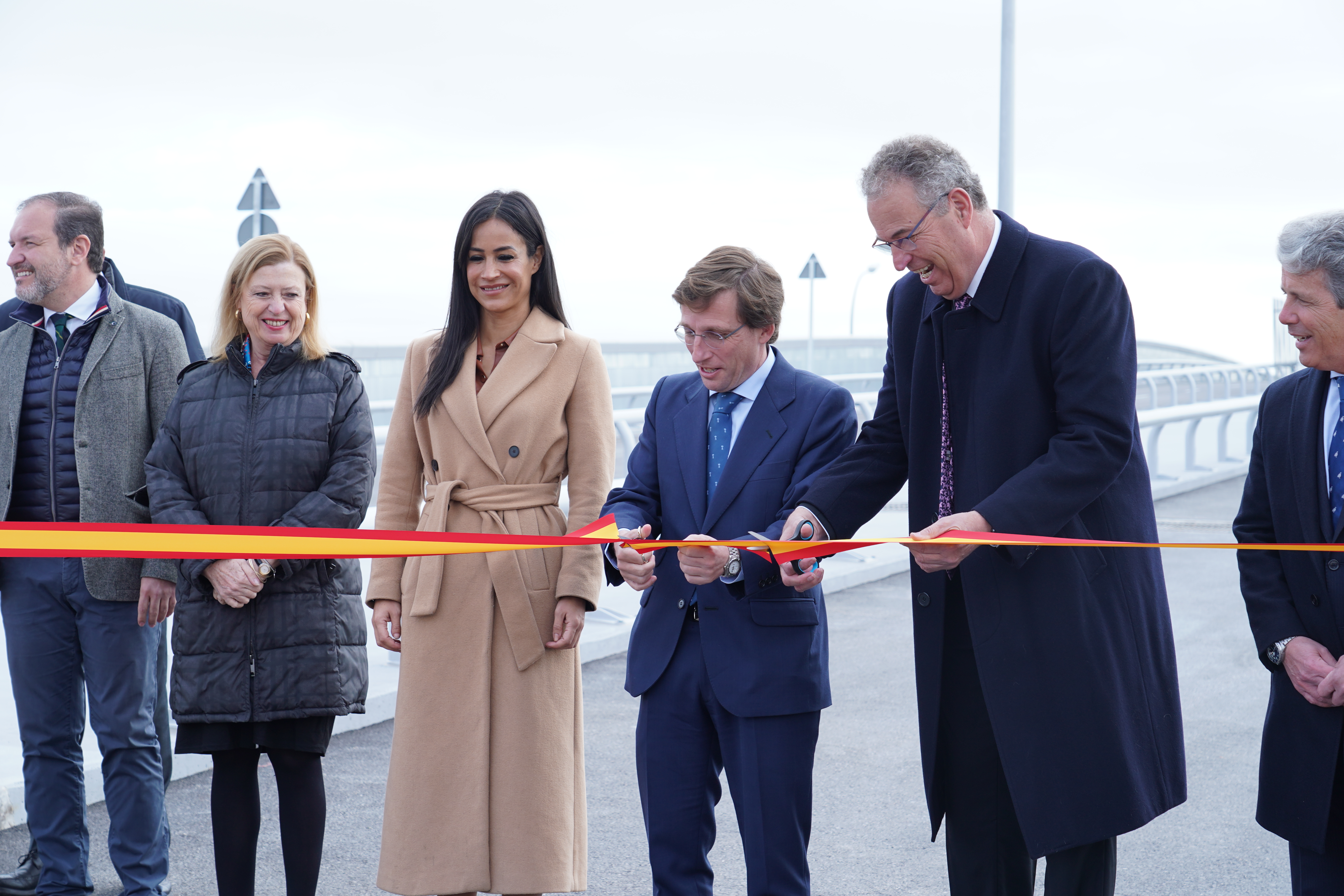 El alcalde de Madrid, José Luis Martínez-Almeida, se ha mostrado convencido de que el nuevo puente de la Concordia que conecta Valdebebas con la Terminal 4 del aeropuerto Adolfo Suárez Madrid-Barajas sobre la carretera M-12 “se va a convertir en un icono de la ciudad de Madrid”. El alcalde ha participado esta mañana en el acto de inauguración de esta nueva infraestructura cuyas obras de construcción han supuesto una inversión de 21 millones de euros y han sido ejecutadas y financiadas por la Junta de Compensación de Valdebebas con la supervisión del Área de Obras y Equipamientos. Junto al alcalde han estado presentes la vicealcaldesa, Begoña Villacís, los delegados de Obras y Equipamientos, Paloma García Romero, y de Desarrollo Urbano, Mariano Fuentes, y el concejal de Hortaleza, Alberto Serrano.