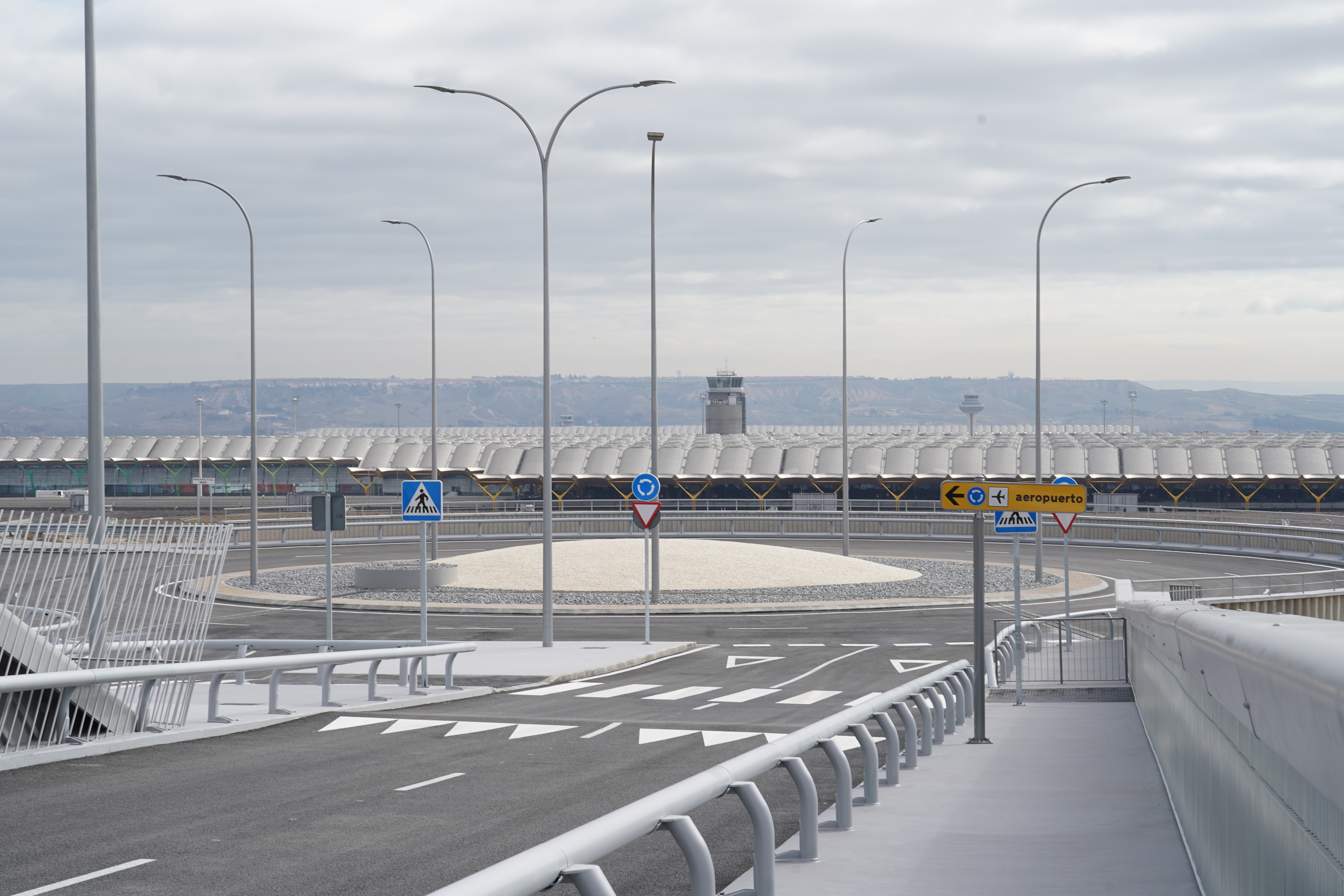El mayor hito en el proceso constructivo tuvo lugar el pasado mes de abril, cuando se instaló el tramo central del puente de 130 metros de largo, 25 metros de ancho y 2.400 toneladas. La operación se llevó a cabo montando esta estructura en una plataforma lateral paralela a la M-12 y desplazándola posteriormente hasta su posición definitiva. La maniobra de desplazamiento tuvo una duración ininterrumpida de seis días y requirió el corte total de la M-12 durante ese período de tiempo. /