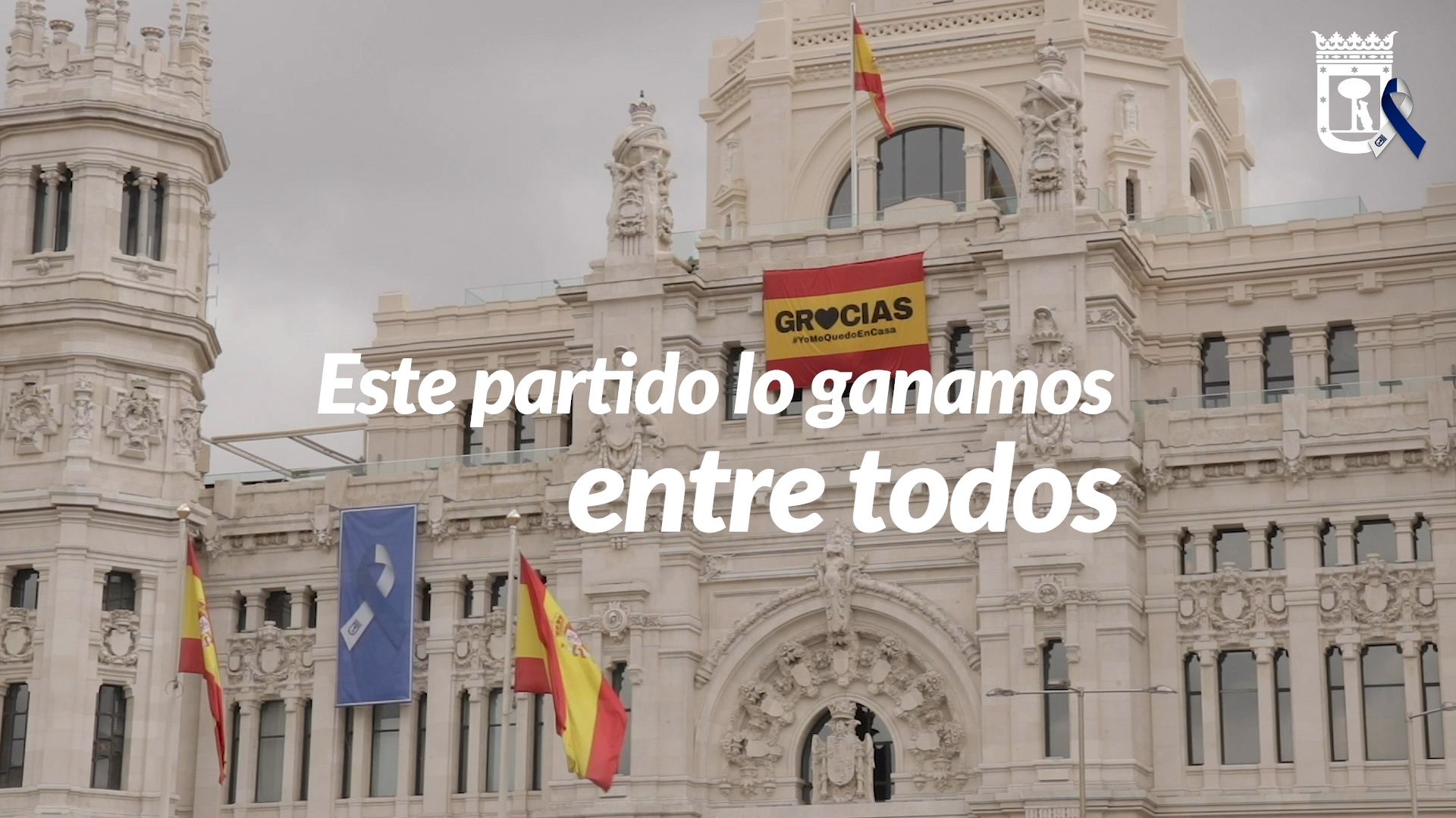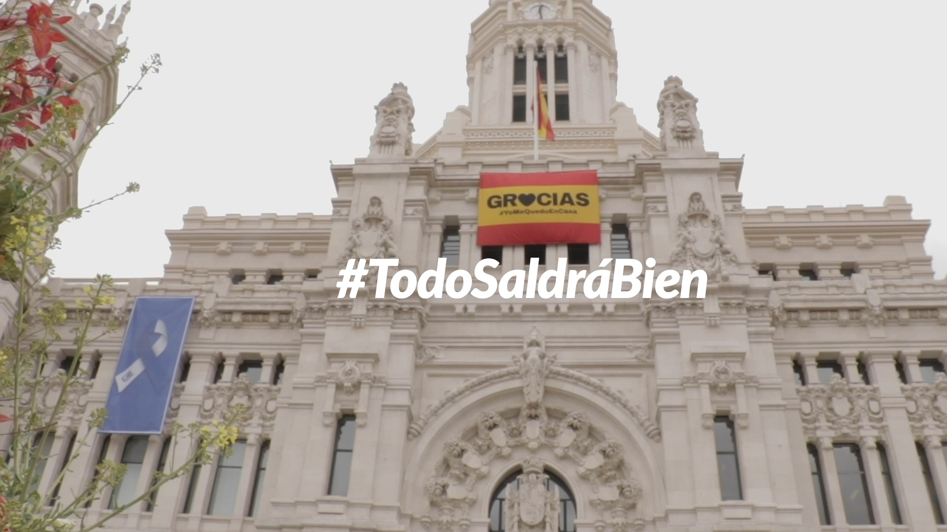 Con la campaña #YoMeQuedoEnCasa, el Ayuntamiento está difundiendo varios vídeos en los que los trabajadores municipales y de servicios y sectores esenciales agradecen a la población que se quede en sus domicilios. Además, dentro de esta misma campaña, el Consistorio ha colgado de la fachada de su sede, en el Palacio de Cibeles, una bandera española con la leyenda ‘Gracias #YoMeQuedoEnCasa’ y un lazo azul y blanco que simboliza el agradecimiento a todos los profesionales que continúan trabajando para que los servicios básicos de la ciudad sigan funcionando. Ambos mensajes suponen, además, un mensaje de esperanza que recuerda que, todos juntos y haciendo caso a las recomendaciones sanitarias, vamos a salir de esta situación./