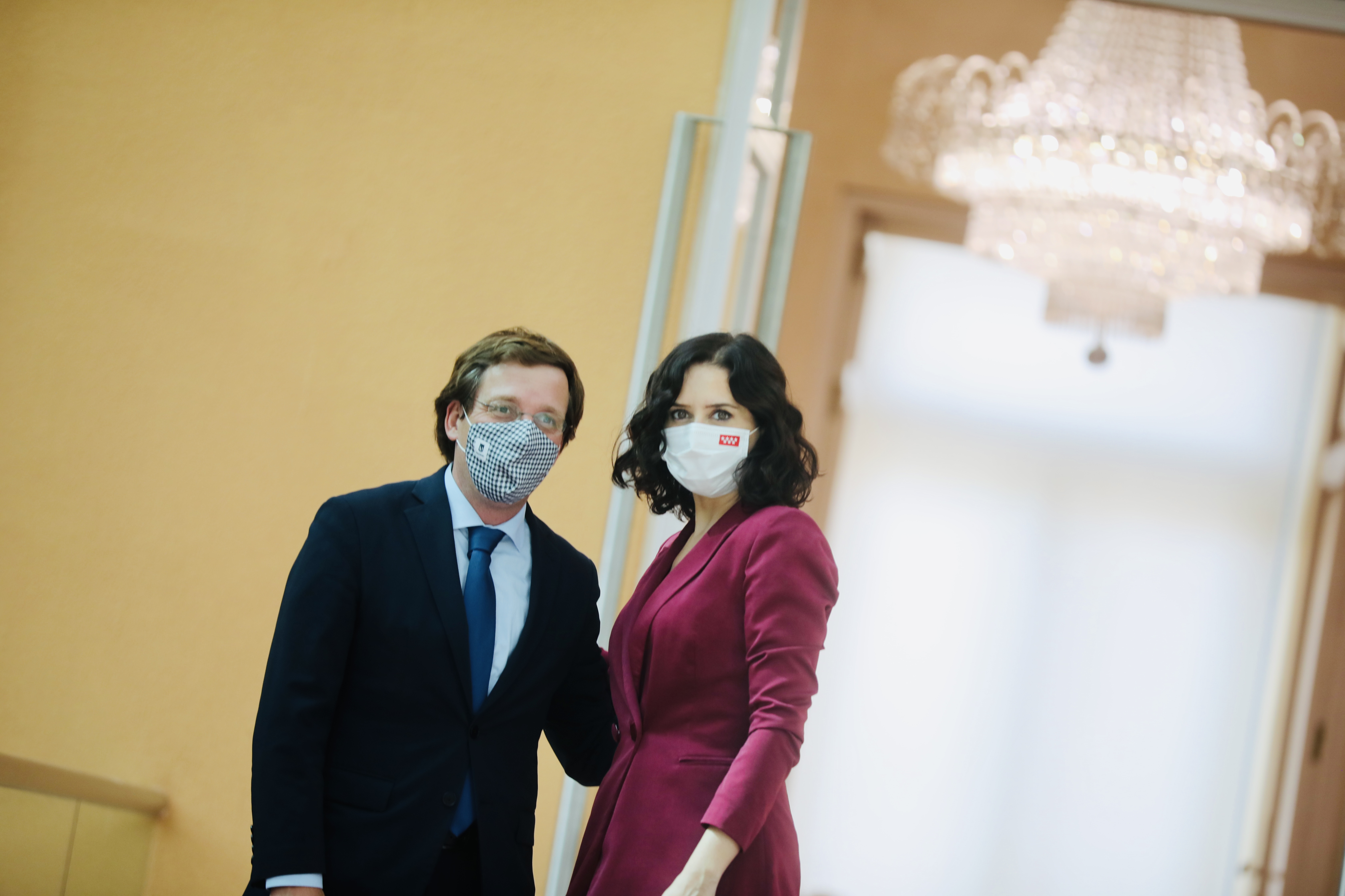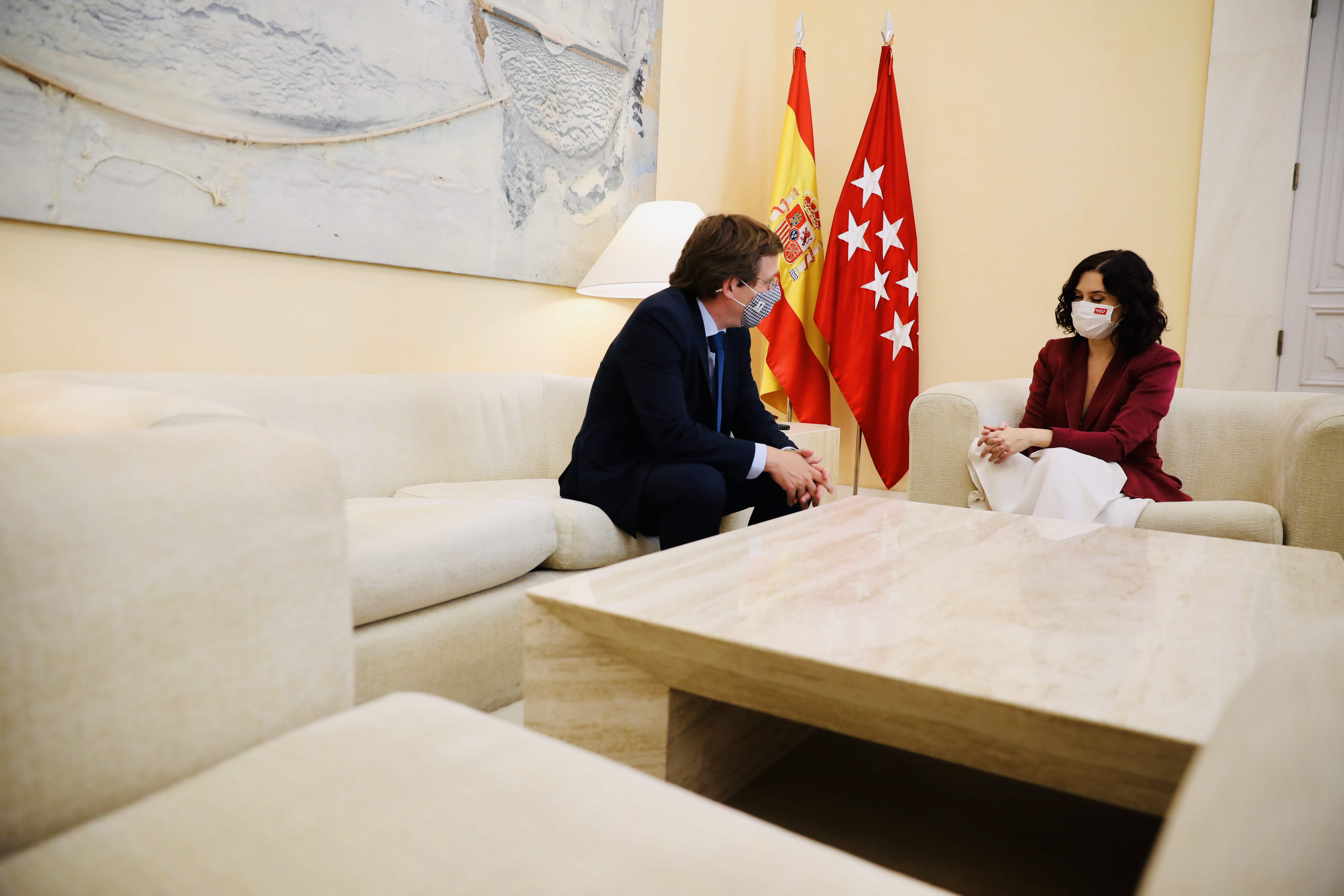 Almeida, que ha destacado que entre las dos instituciones existe “una gran sintonía”, ha explicado que ambos han abordado “asuntos urgentes y que son de interés común de los madrileños” como la recuperación económica y el mantenimiento de la cohesión social, “dos ejes fundamentales porque sabemos que los madrileños lo están pasando mal”; la sostenibilidad en la ciudad de Madrid y el proceso de transformación digital, entre otros temas. /