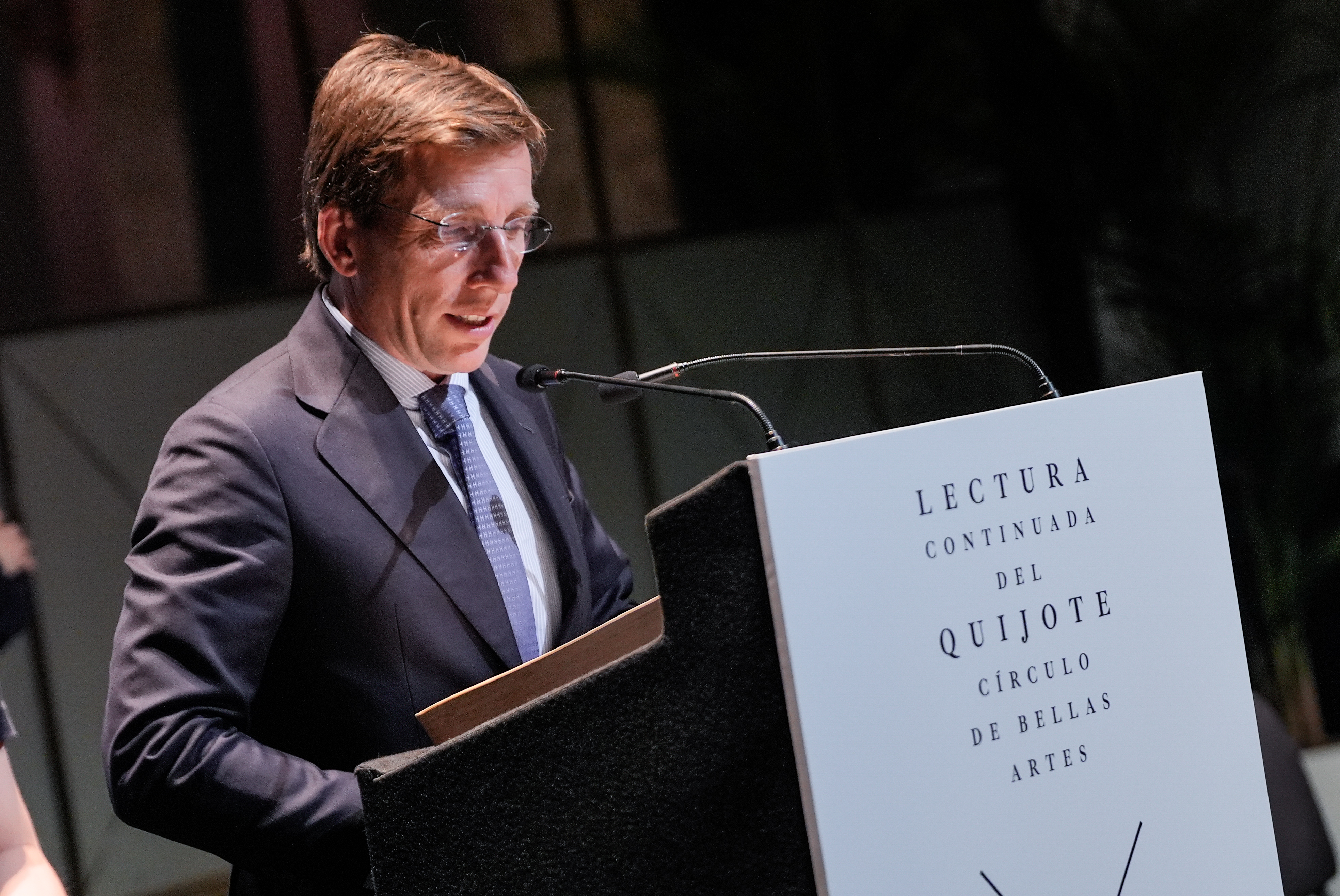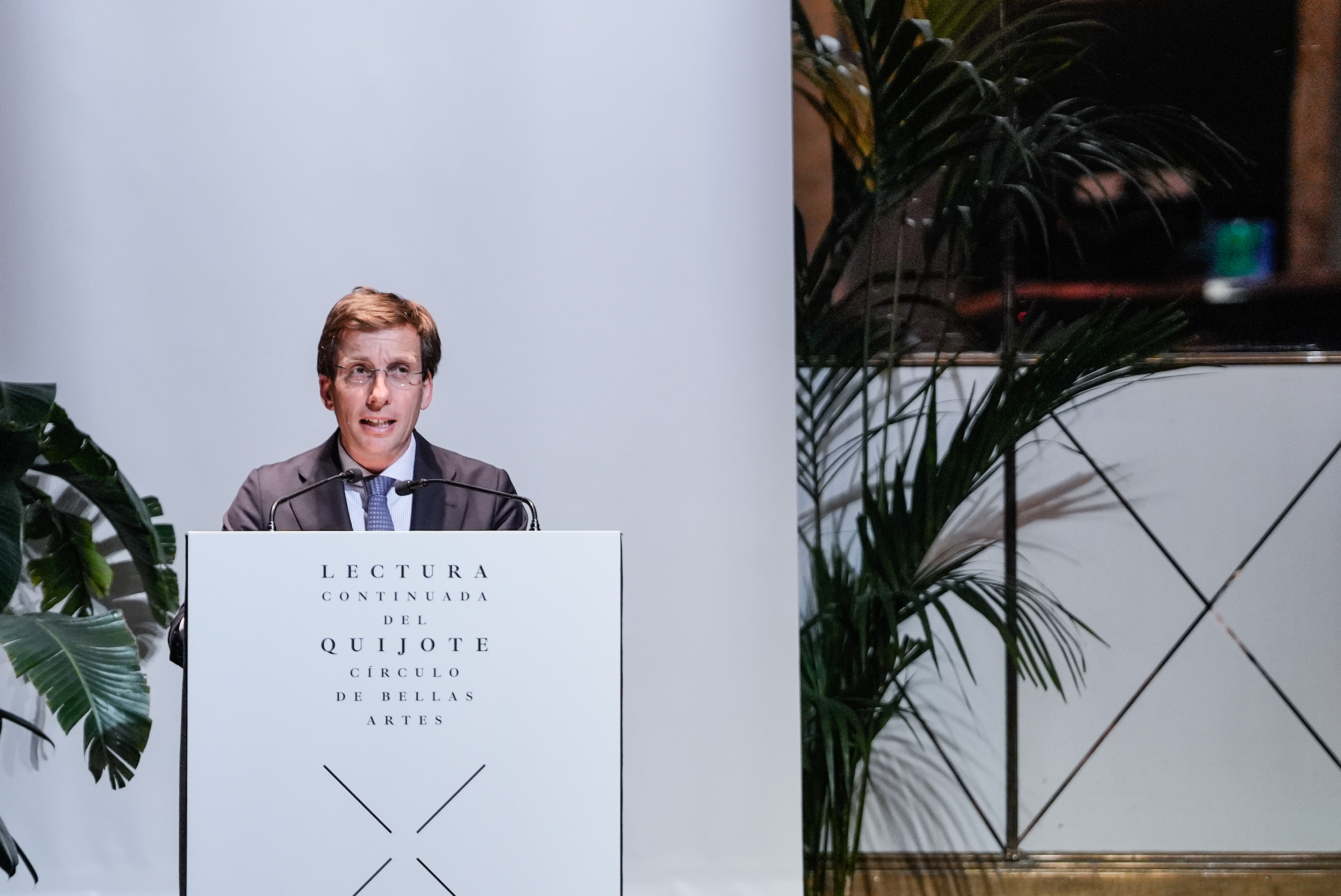 El alcalde de Madrid, José Luis Martínez-Almeida, ha participado esta tarde en la XXIX lectura continuada de El Quijote, organizada por el Ministerio de Cultura y el Círculo de Bellas Artes para conmemorar el Día Internacional del Libro y La Noche de los Libros. Almeida ha leído un fragmento del capítulo 1 que trata de la condición y ejercicio del famoso y valiente hidalgo don Quijote de la Mancha.
