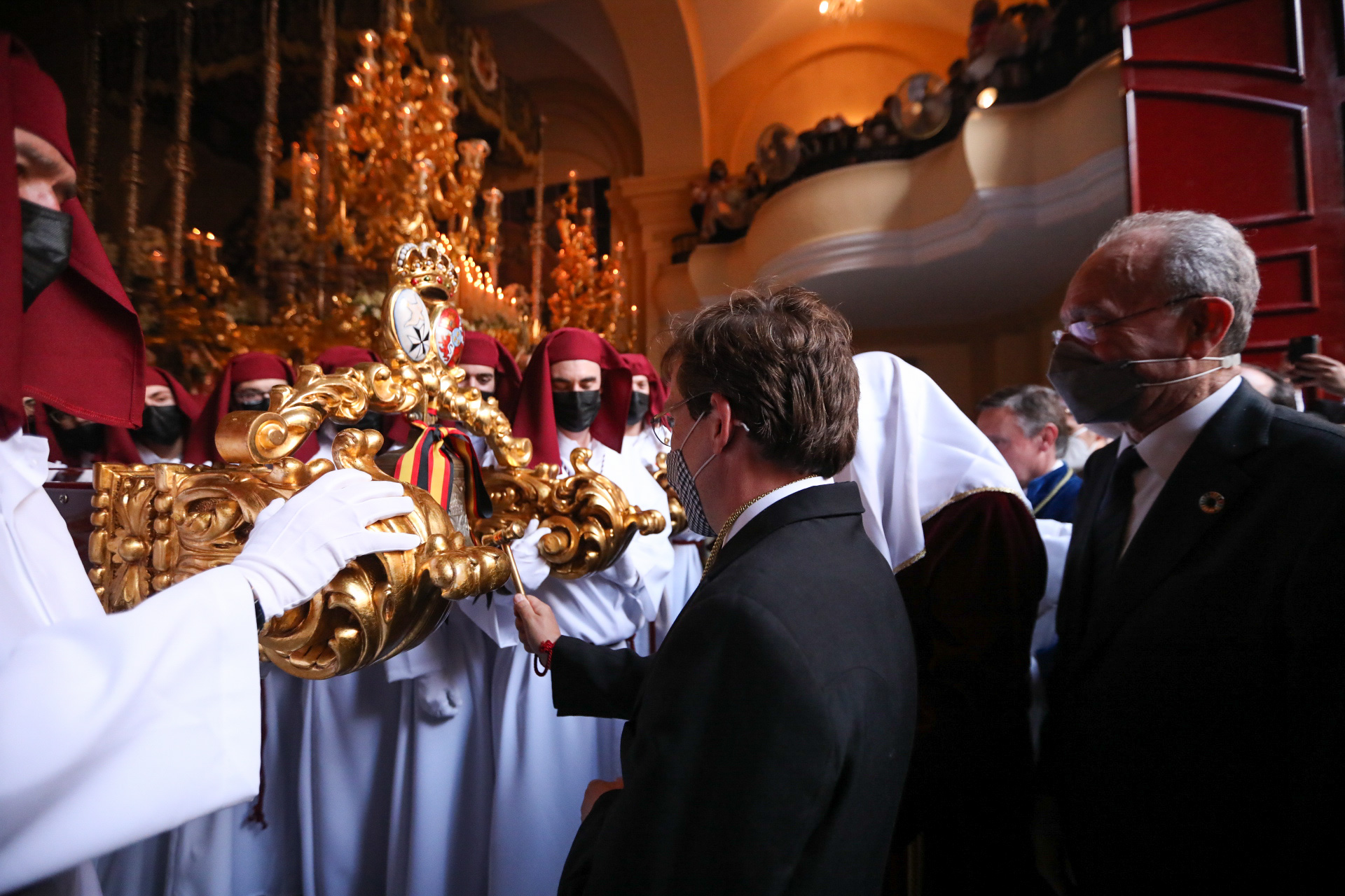 El alcalde de Madrid, José Luis Martínez-Almeida, ha participado esta tarde, por segundo año consecutivo, en la salida procesional de la Cofradía de Nazarenos de Nuestro Padre Jesús de la Puente del Cedrón y María Santísima de la Paloma de Málaga.