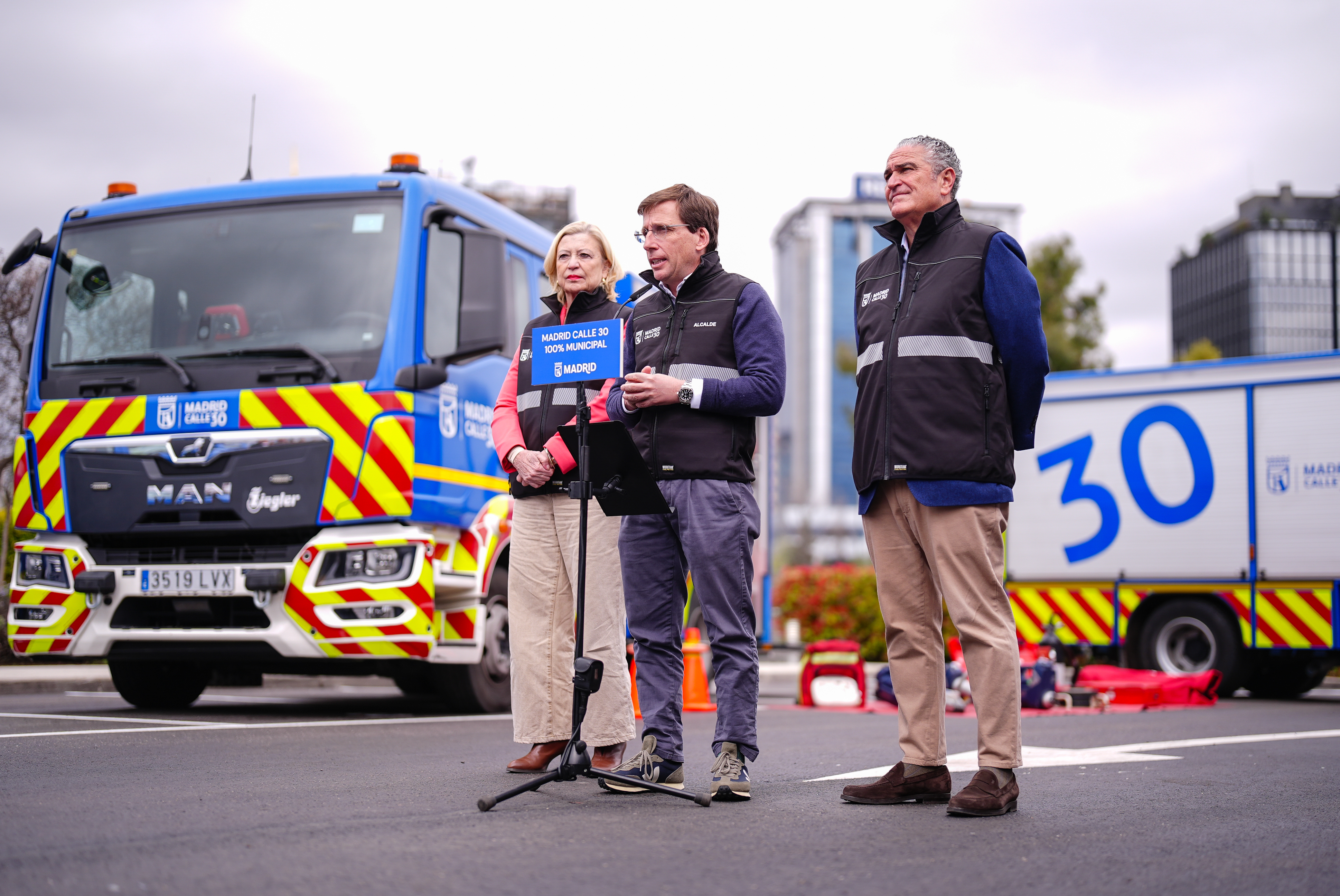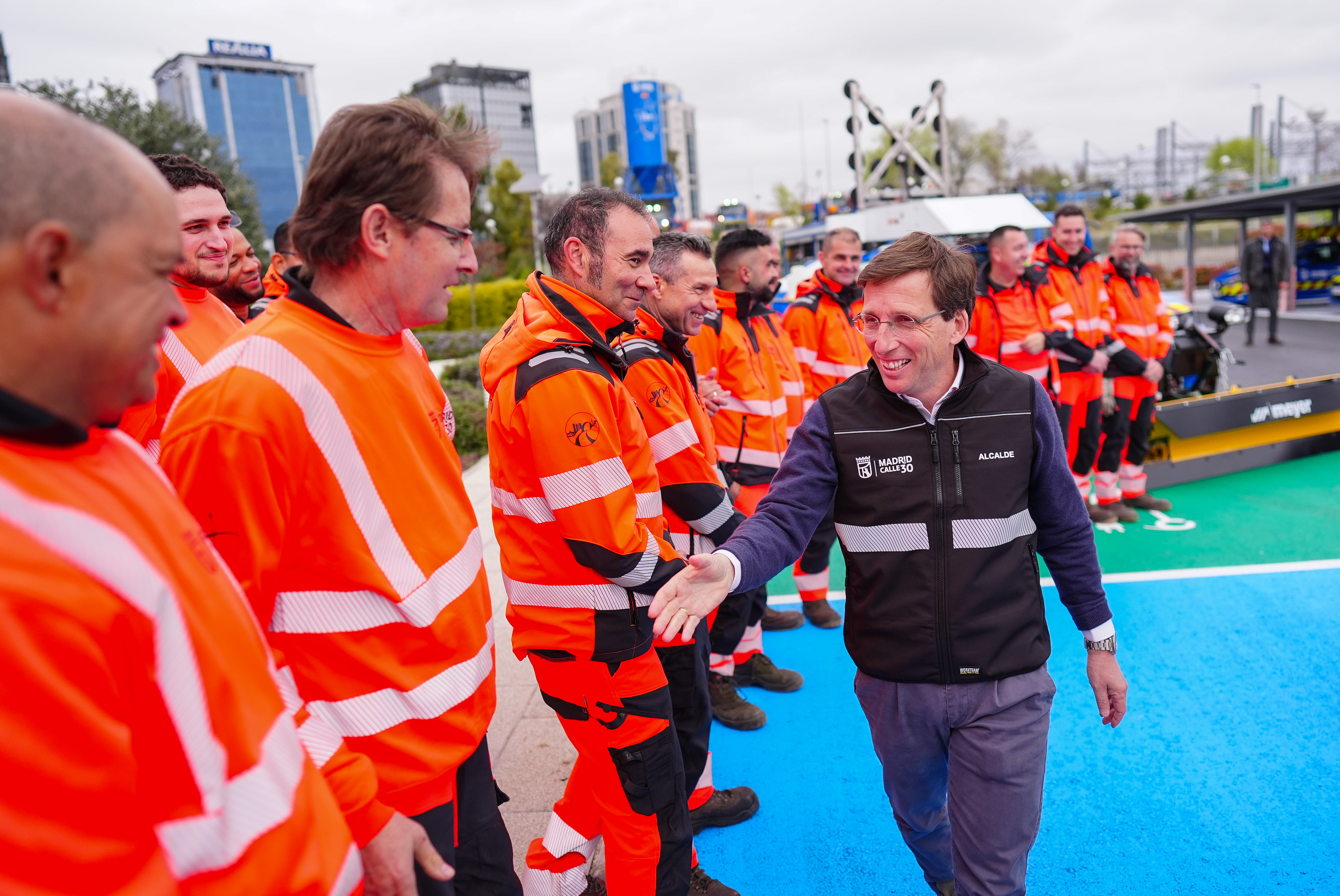 El alcalde de Madrid, José Luis Martínez-Almeida, acompañado de la delegada de Obras y Equipamientos y presidenta de Madrid Calle 30, Paloma García Romero, ha presentado esta mañana la nueva flota de vehículos y la nueva equipación del personal de Madrid Calle 30, la empresa encargada de la gestión y explotación de la M-30 que desde el pasado 1 de enero ha pasado a ser 100 % municipal.