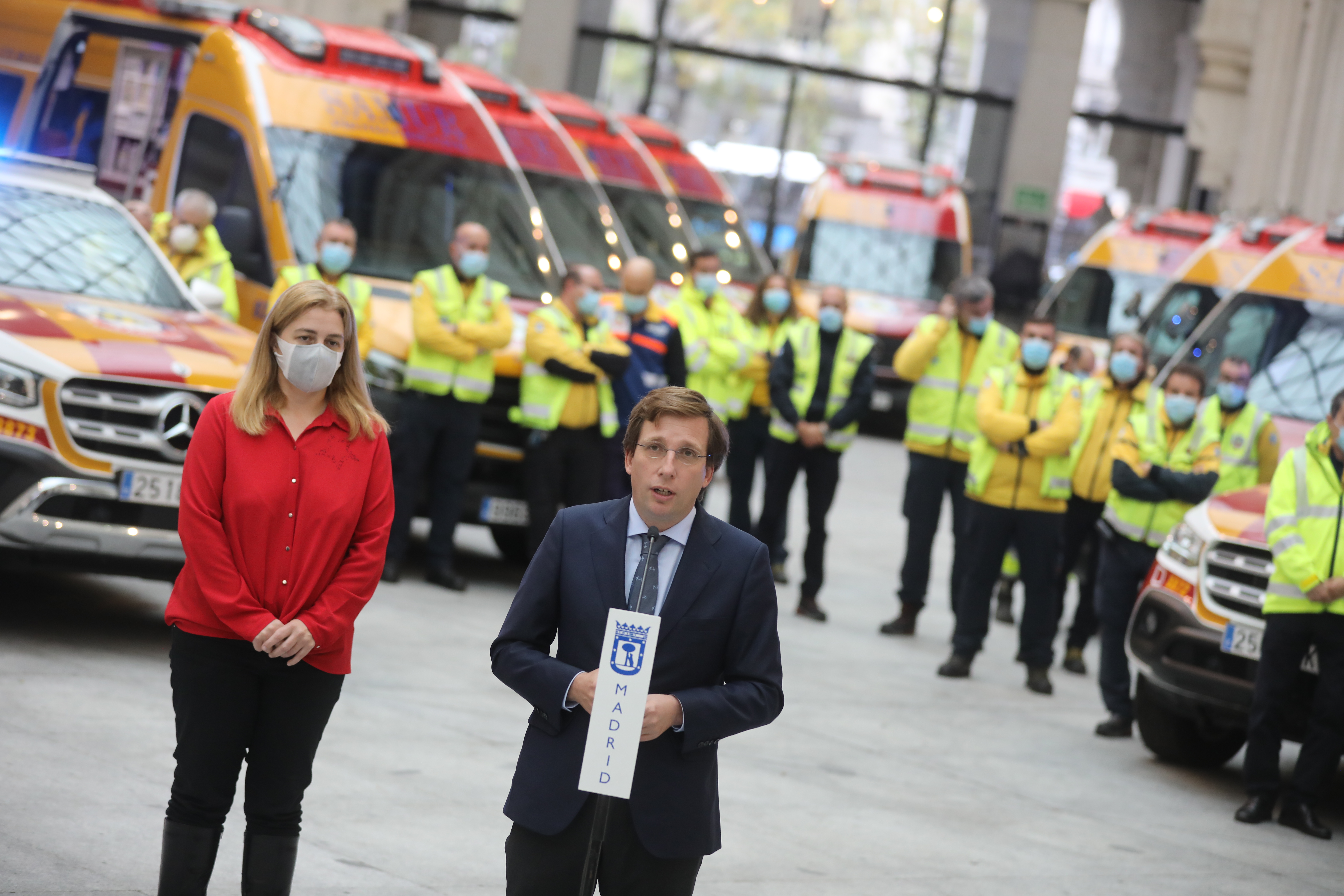 El alcalde ha estado acompañado en la presentación por la delegada de Seguridad y Emergencias y portavoz municipal, Inmaculada Sanz; el coordinador general de Seguridad y Emergencias, Javier Hernández; y el director general de Emergencias y Protección Civil, Enrique López Ventura, entre otras autoridades y sanitarios.