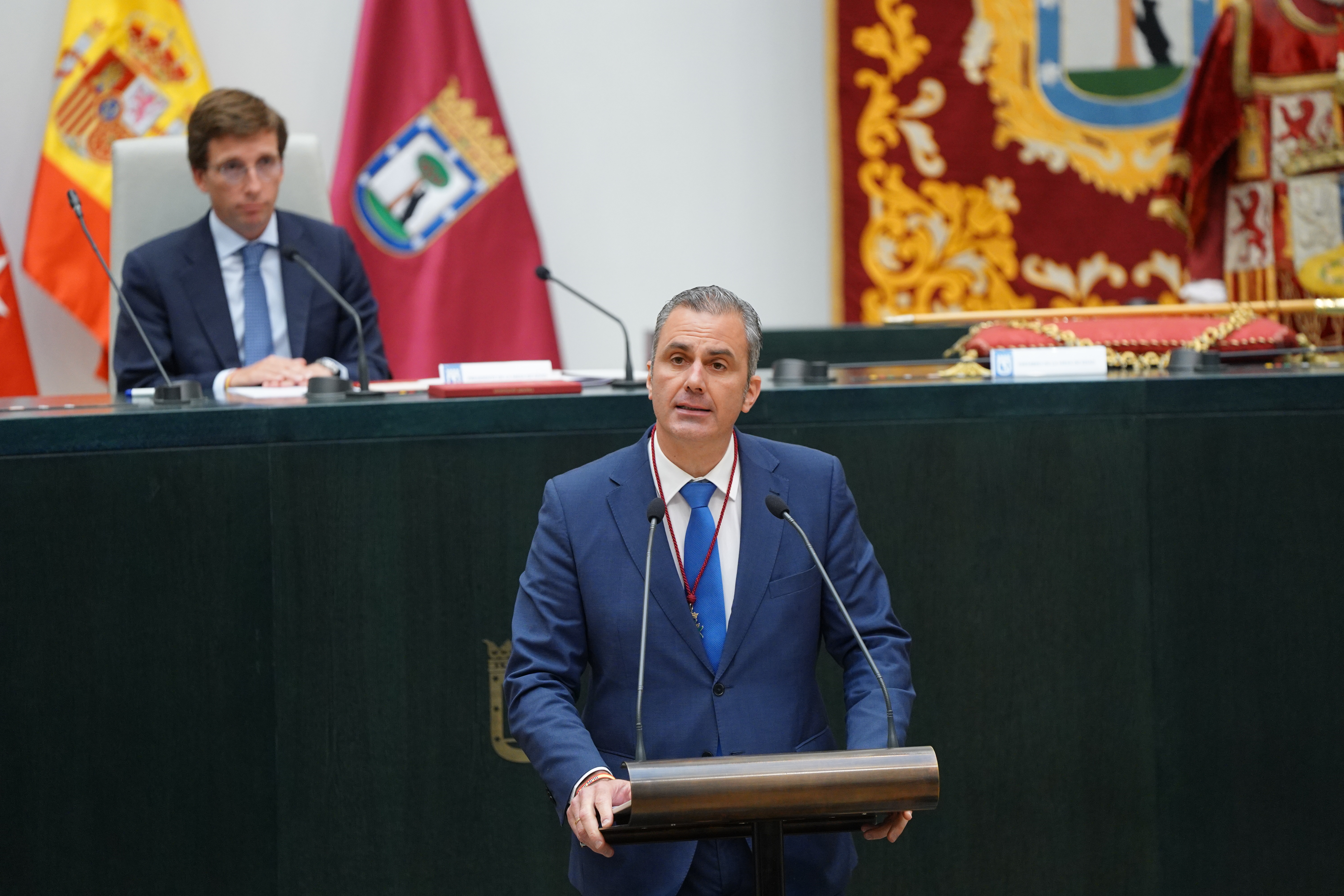 El alcalde, que ha asumido su nueva responsabilidad “con un sentimiento de profunda gratitud”, ha desgranado en su discurso de investidura los ocho puntos que vertebrarán su hoja de ruta para el mandato 2023-27 “con la vista puesta siempre -ha dicho- en el bien común de los madrileños”.