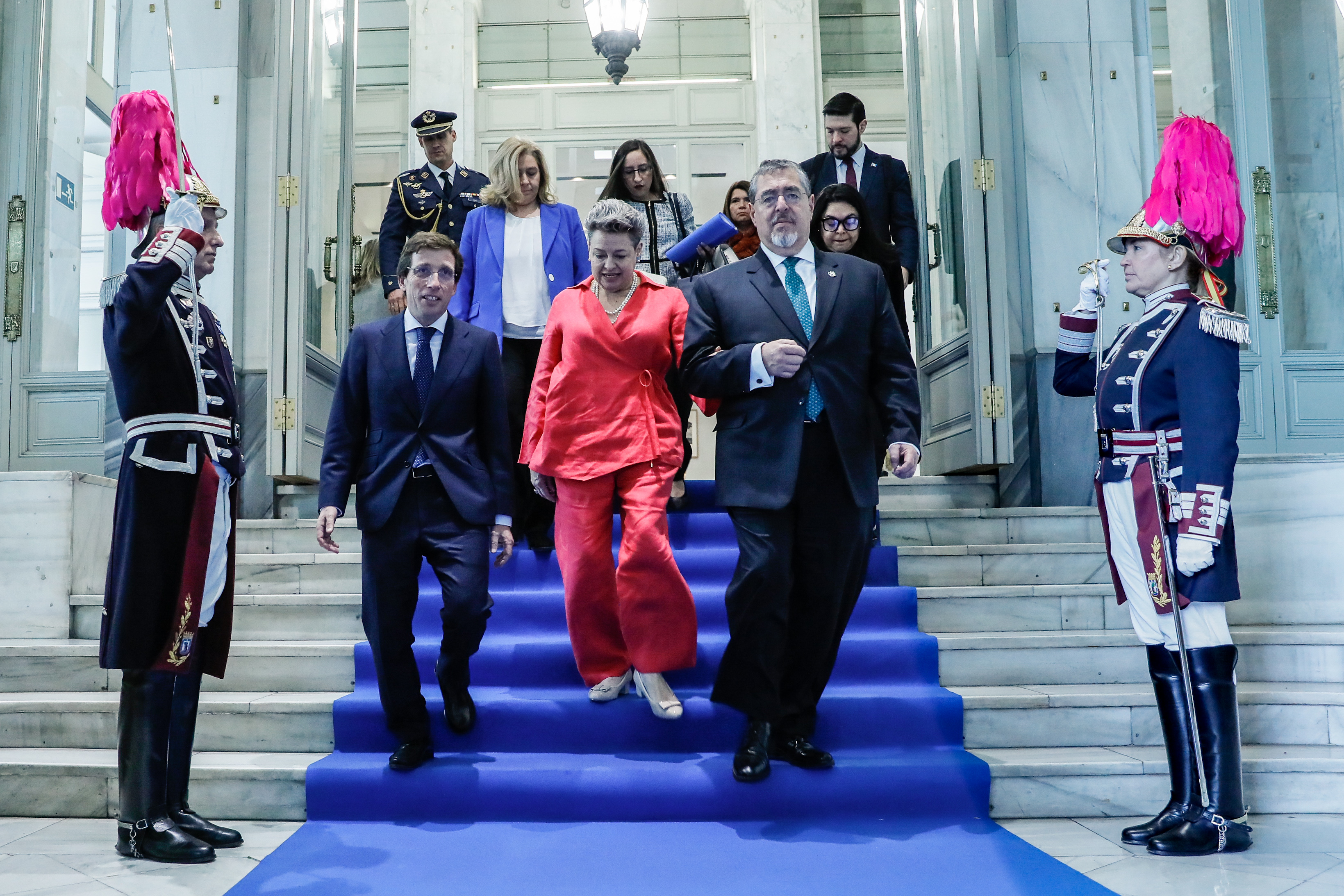 El alcalde de Madrid, José Luis Martínez-Almeida, ha recibido esta mañana en el Palacio de Cibeles a una delegación de la República de Guatemala, encabezada por su presidente, Bernardo Arévalo, que se encuentra de viaje oficial en España junto a la primera dama, Lucrecia Peinado.
