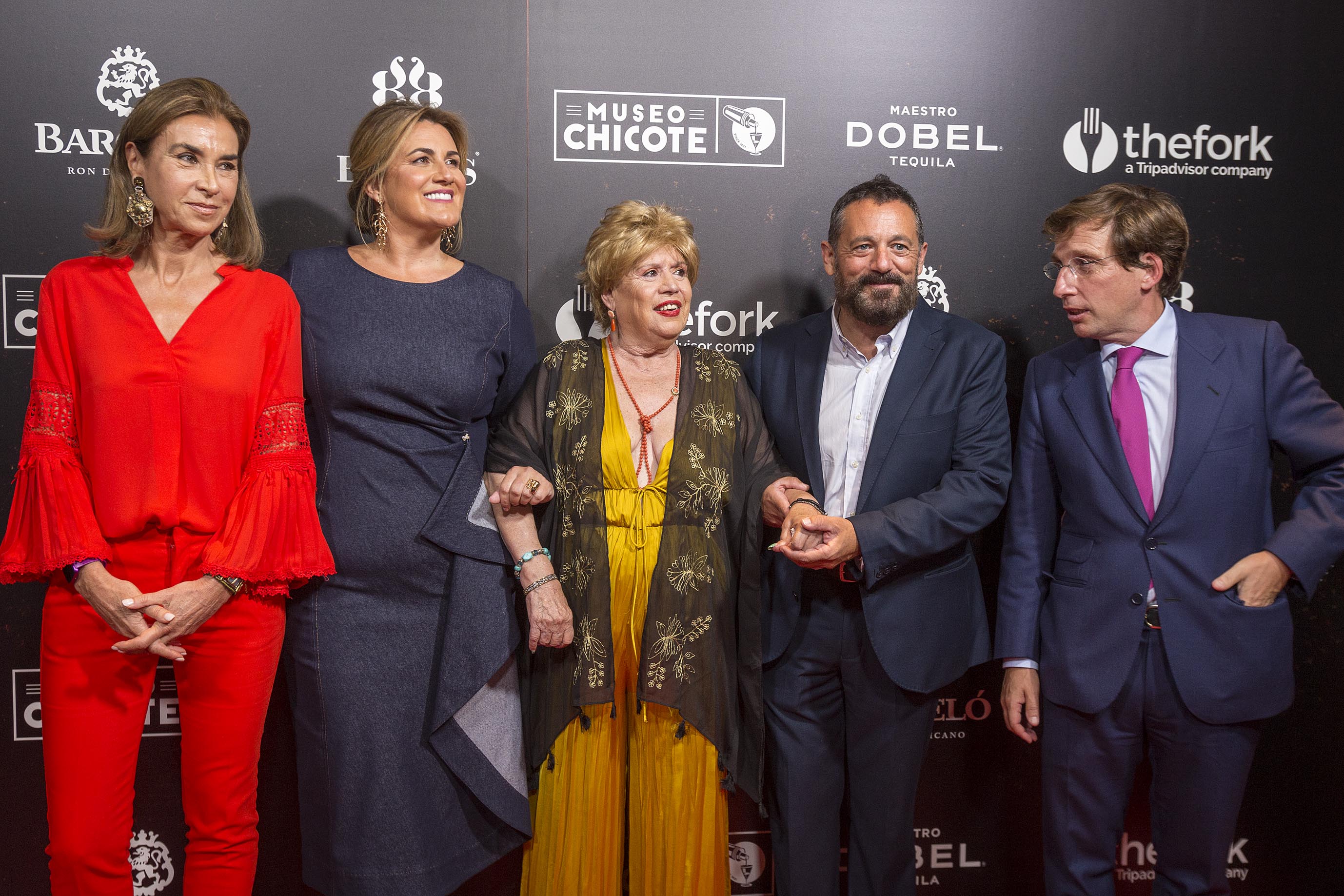El alcalde de Madrid, José Luis Martínez-Almeida, acompañado de la delegada de Cultura, Turismo y Deporte, Andrea Levy, y de la concejala delegada de Turismo, Almudena Maíllo, ha recogido esta tarde el Premio a la ciudad de Madrid, uno de los cinco galardones que el Museo Chicote ha entregado este año, coincidiendo con el 90 aniversario del establecimiento.