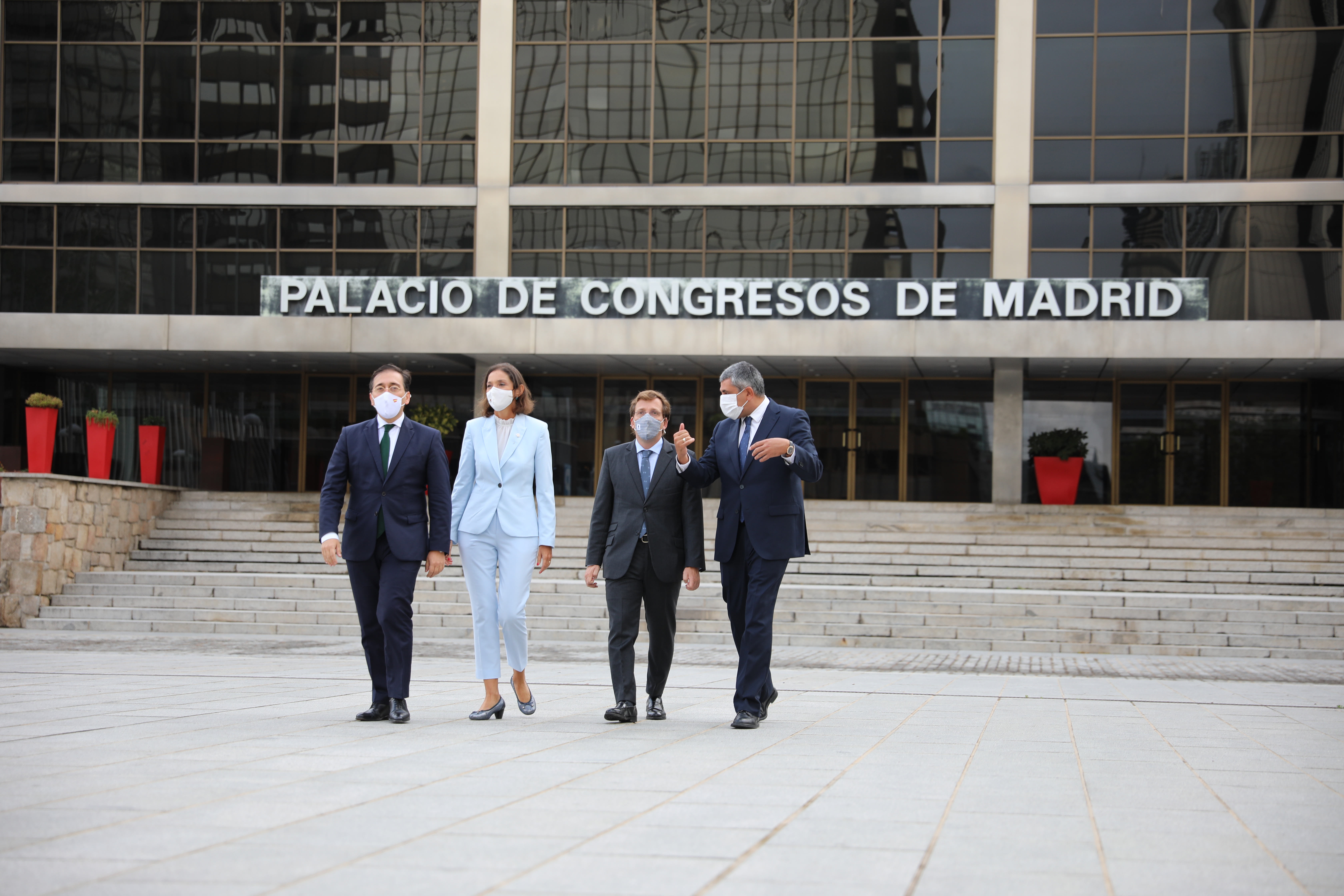El alcalde de Madrid, José Luis Martínez-Almeida, ha visitado el Palacio de Congresos de la Castellana, futura sede de la Organización Mundial del Turismo (OMT), junto al ministro de Asuntos Exteriores, Unión Europea y Cooperación, José Manuel Albares; la ministra de Industria, Comercio y Turismo, Reyes Maroto, y el secretario general de la OMT, Zurab Pololikashvili. Almeida ha conocido el proyecto de reforma diseñado para remodelar el edificio que albergará las nuevas oficinas de la OMT. Un espacio, ha dicho el alcalde, que “tiene una ubicación privilegiada y que es un atractivo para el turismo de negocios, congresos y ferias de primer orden”.