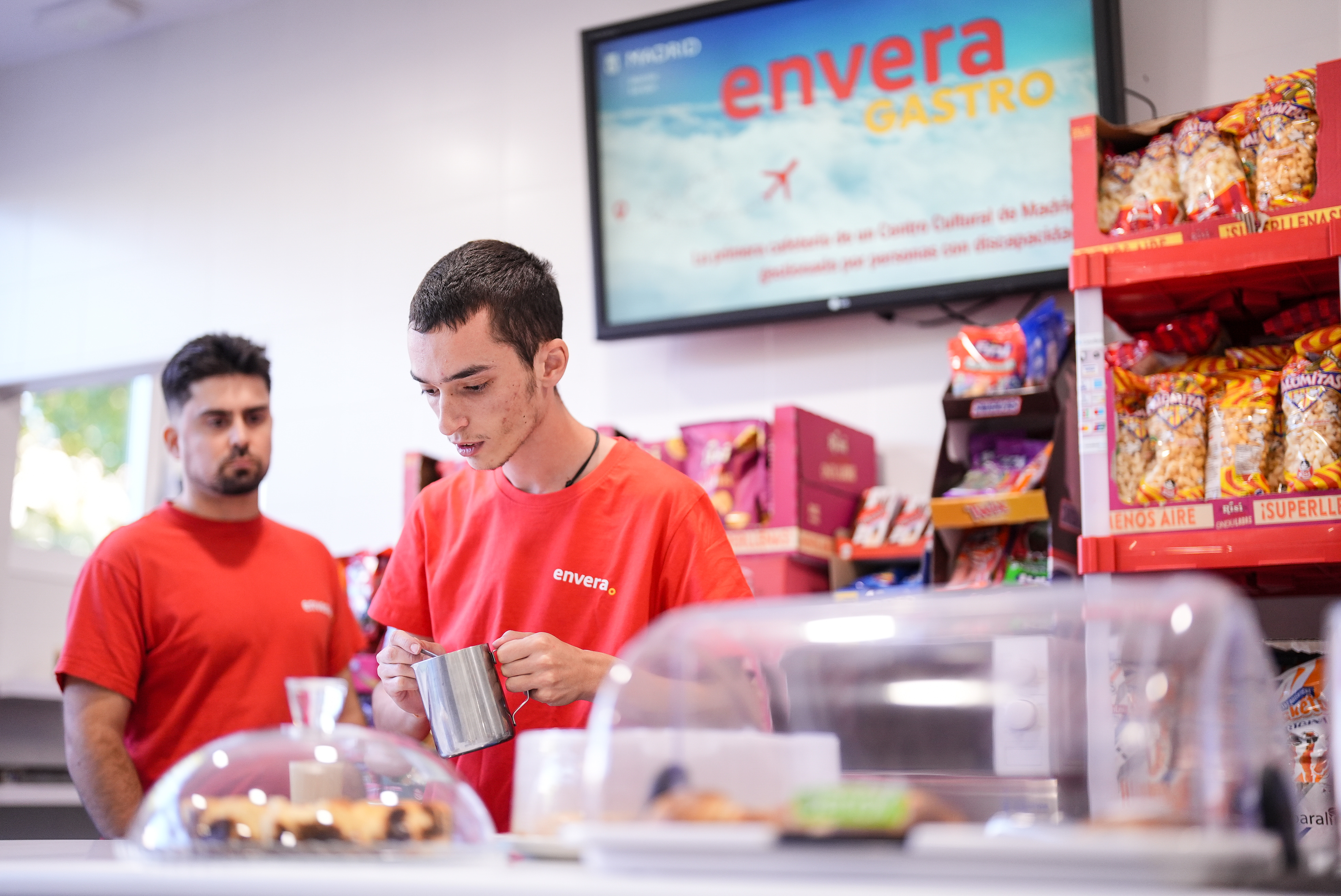 La apertura de Envera Gastro supone un hito en materia de integración social y representa una oportunidad única para visibilizar las capacidades profesionales de las personas con discapacidad en un entorno laboral. Gracias a este proyecto, cinco jóvenes con discapacidad, Emilio, Daniel, Mónica, Carol, y Miguel, cuentan ya con empleo estable y protegido.