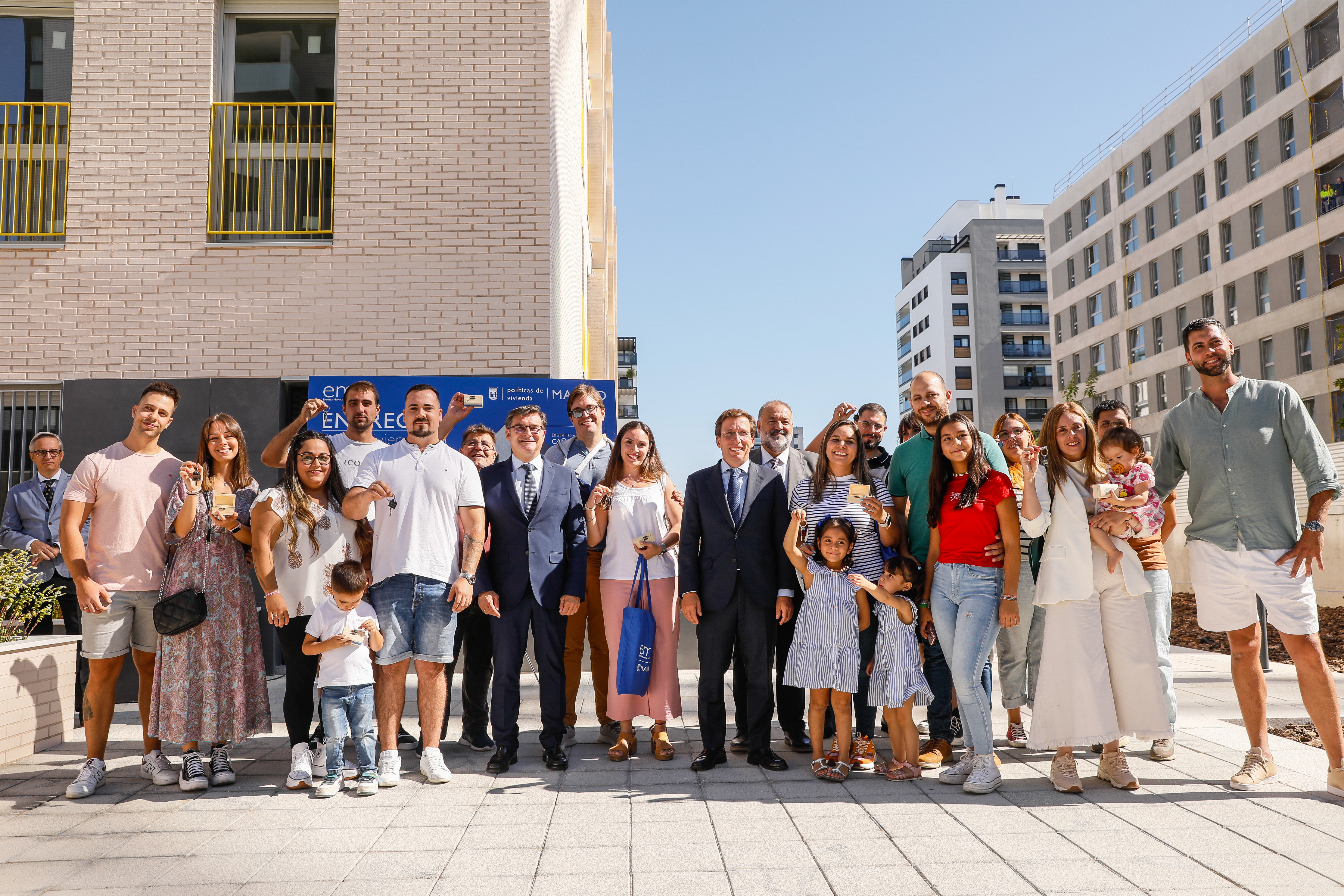 Familias con hijos menores y jóvenes madrileños han recibido este lunes de manos del alcalde de Madrid, José Luis Martínez-Almeida, las llaves de 82 nuevas viviendas de alquiler asequible que la Empresa Municipal de la Vivienda y Suelo de Madrid (EMVS Madrid) ha construido en El Cañaveral, distrito de Vicálvaro.