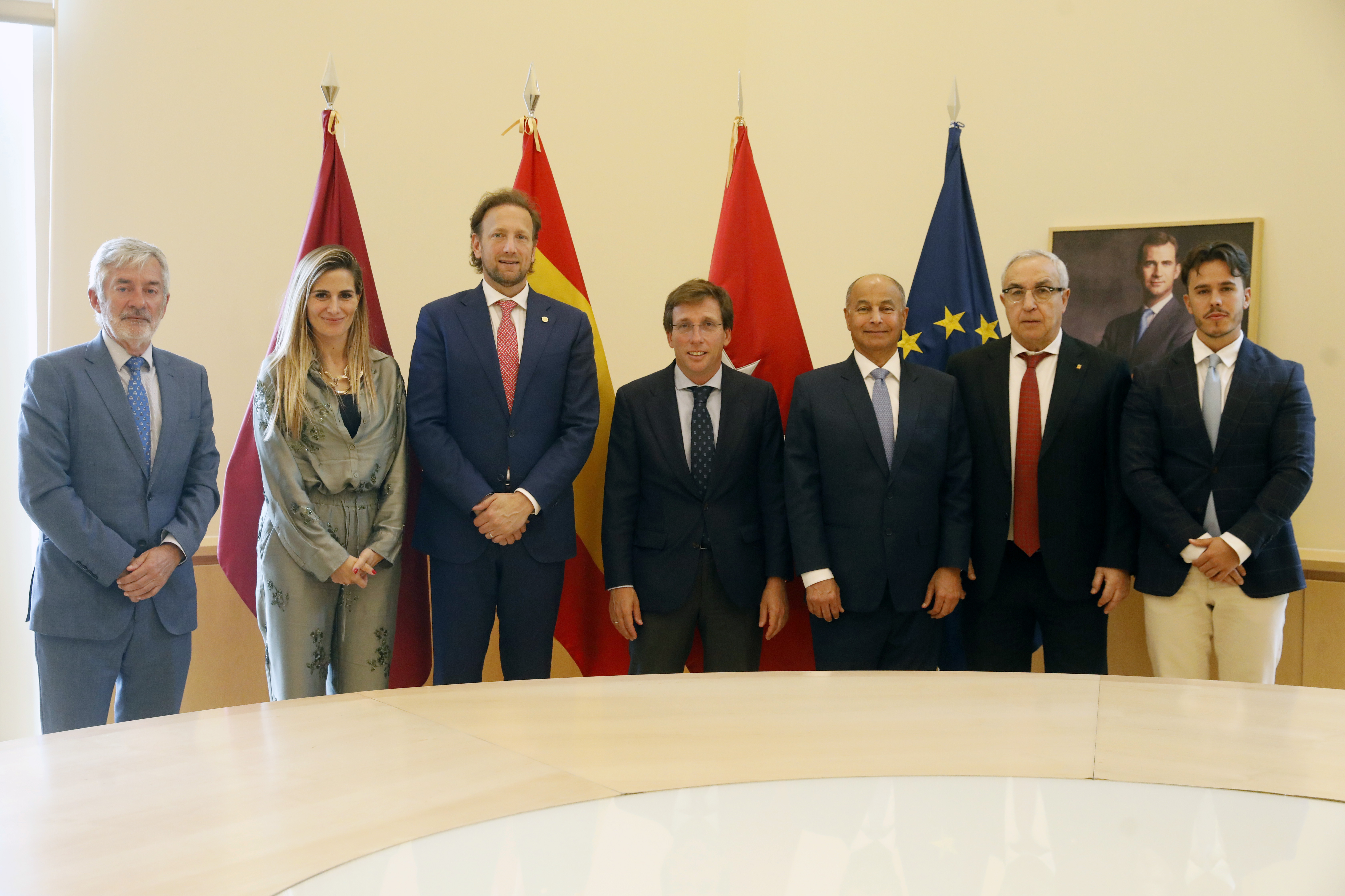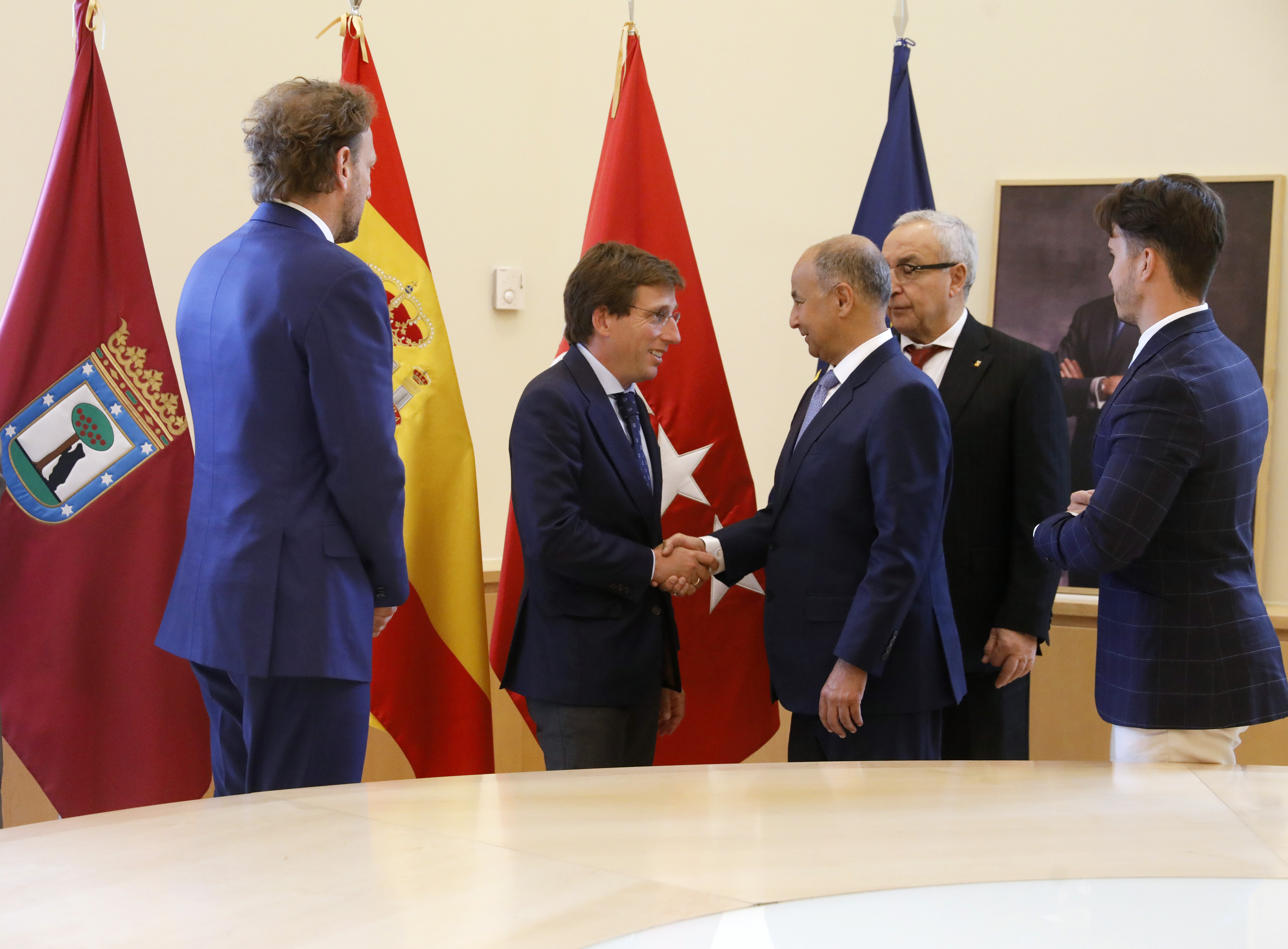 El alcalde de Madrid, José Luis Martínez-Almeida, acompañado por la concejala delegada de Deporte, Sonia Cea, ha recibido hoy en el Palacio de Cibeles al presidente del Comité Olímpico Español (COE), Alejandro Blanco; al presidente de la Real Federación Española de Natación, Fernando Carpena, y al presidente de World Aquatics, Husain Al-Musallam, encuentro en el que han abordado el interés de Madrid por acoger el XXV Campeonato Mundial de Natación en 2031.