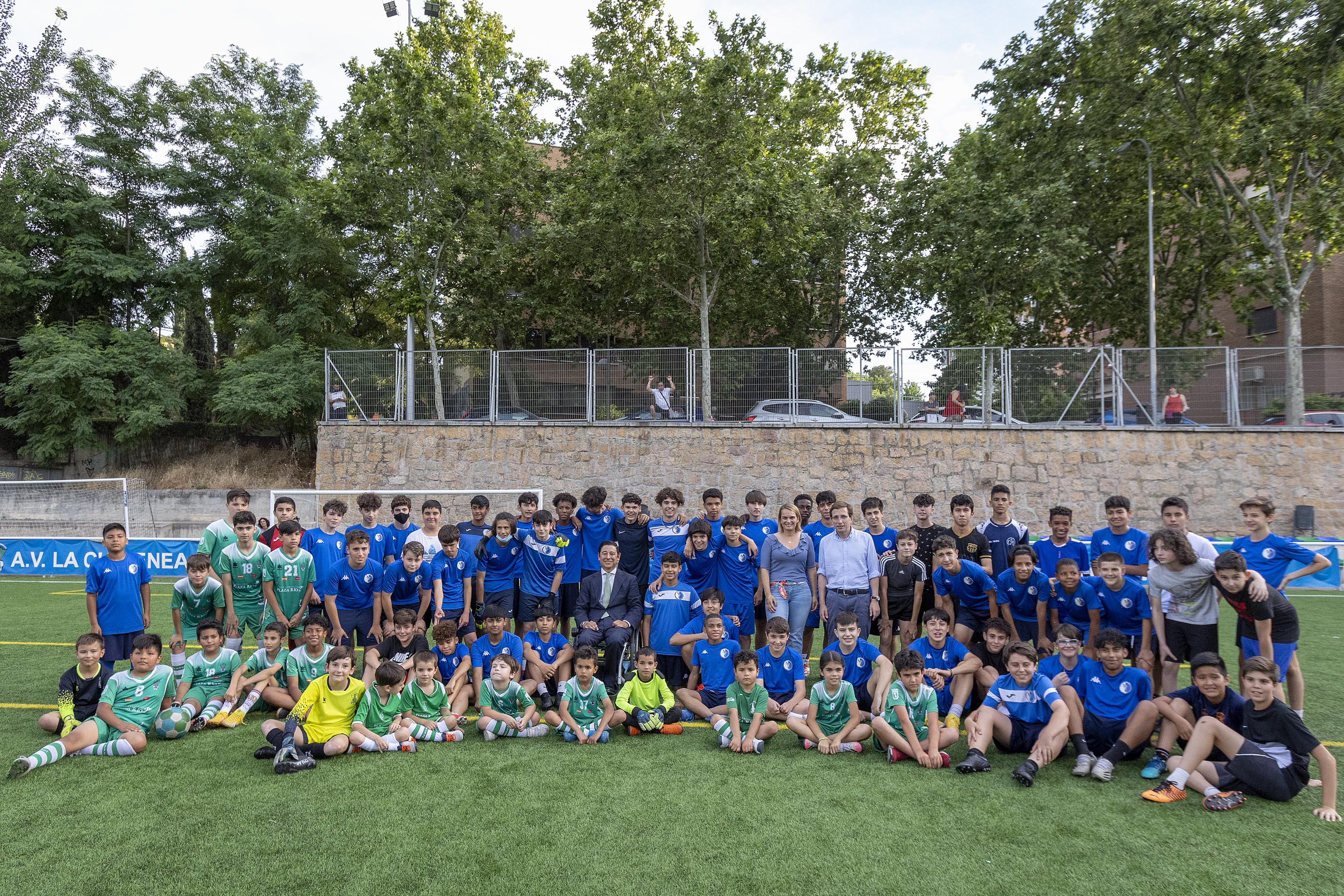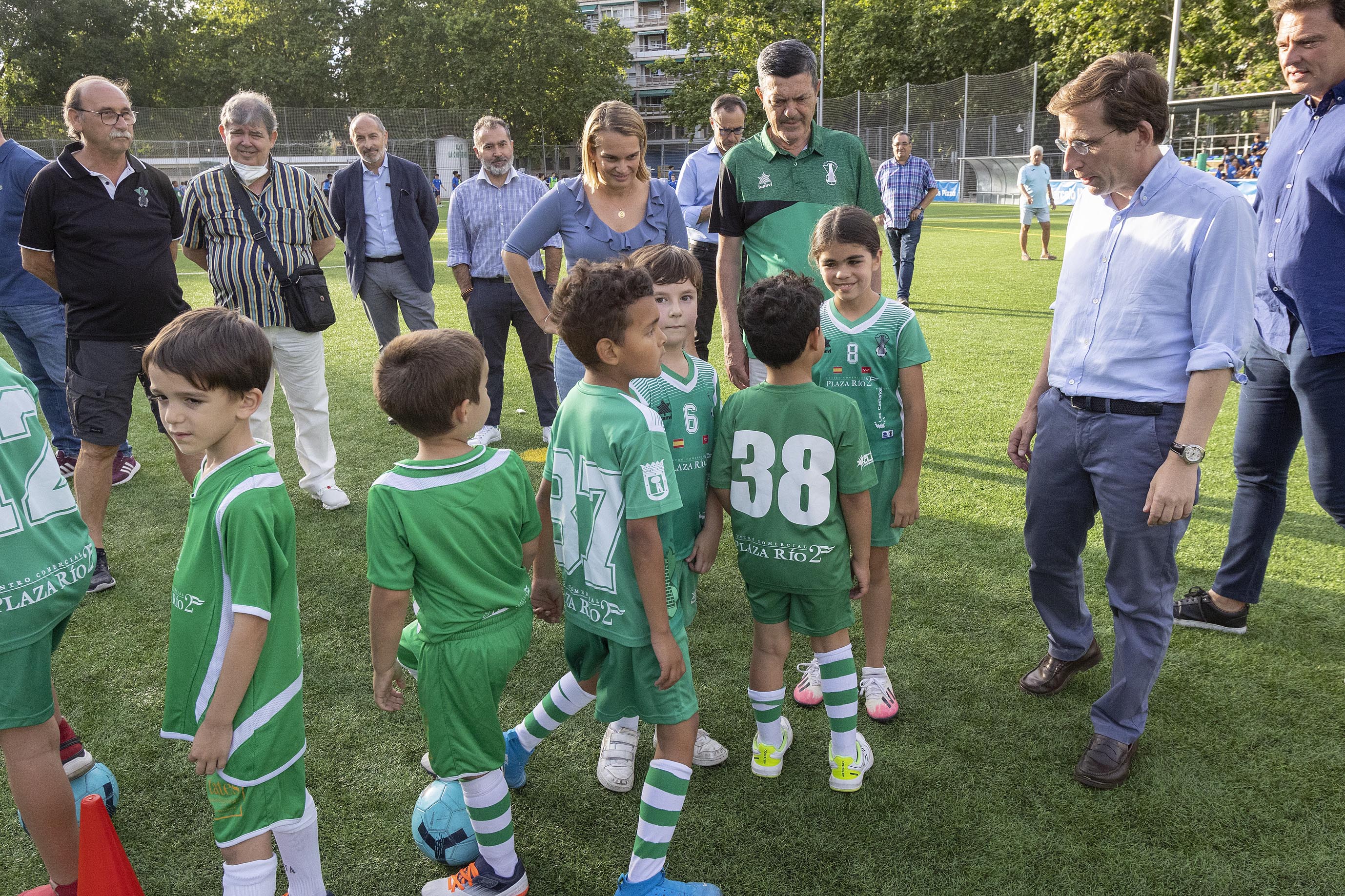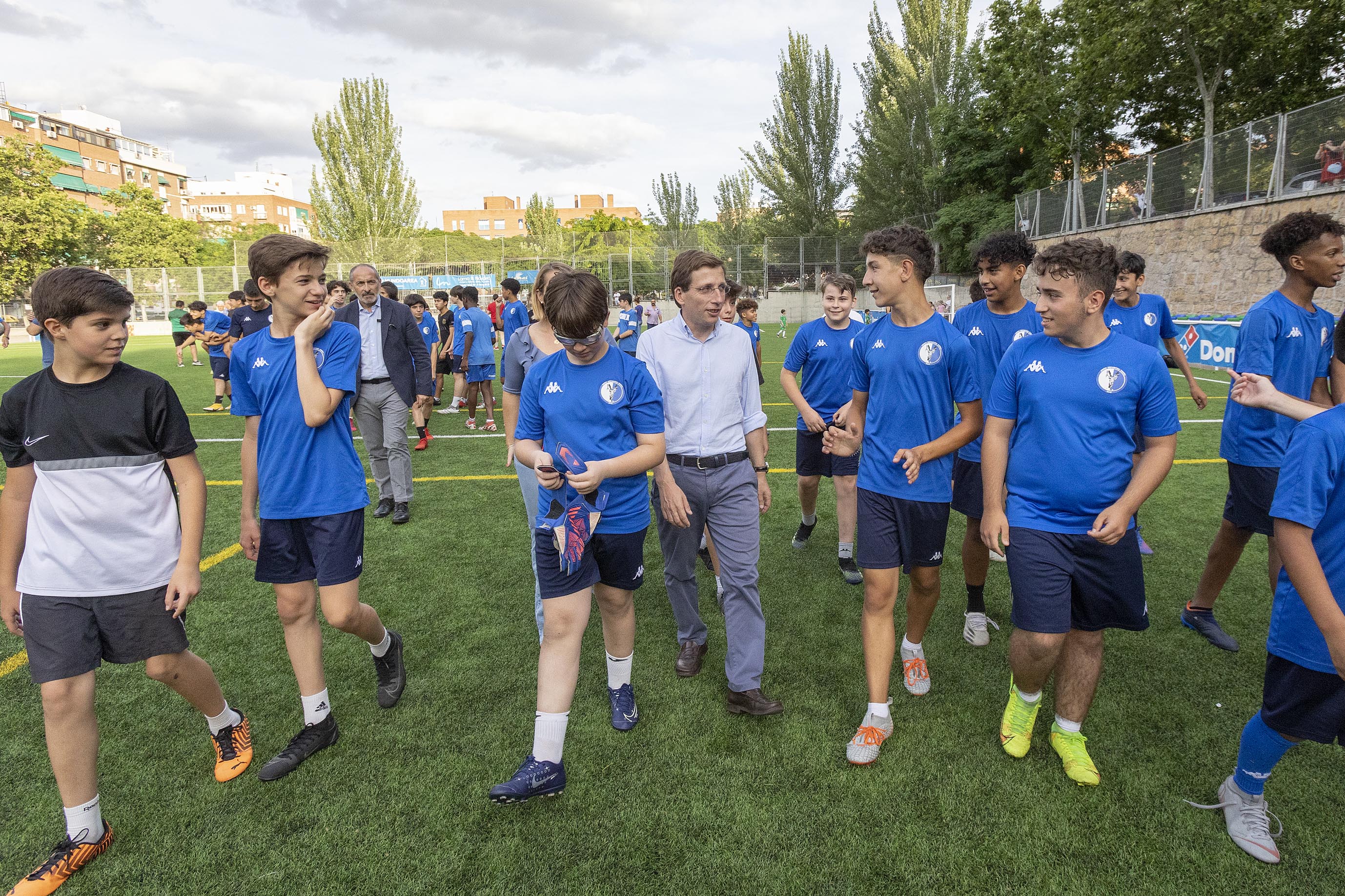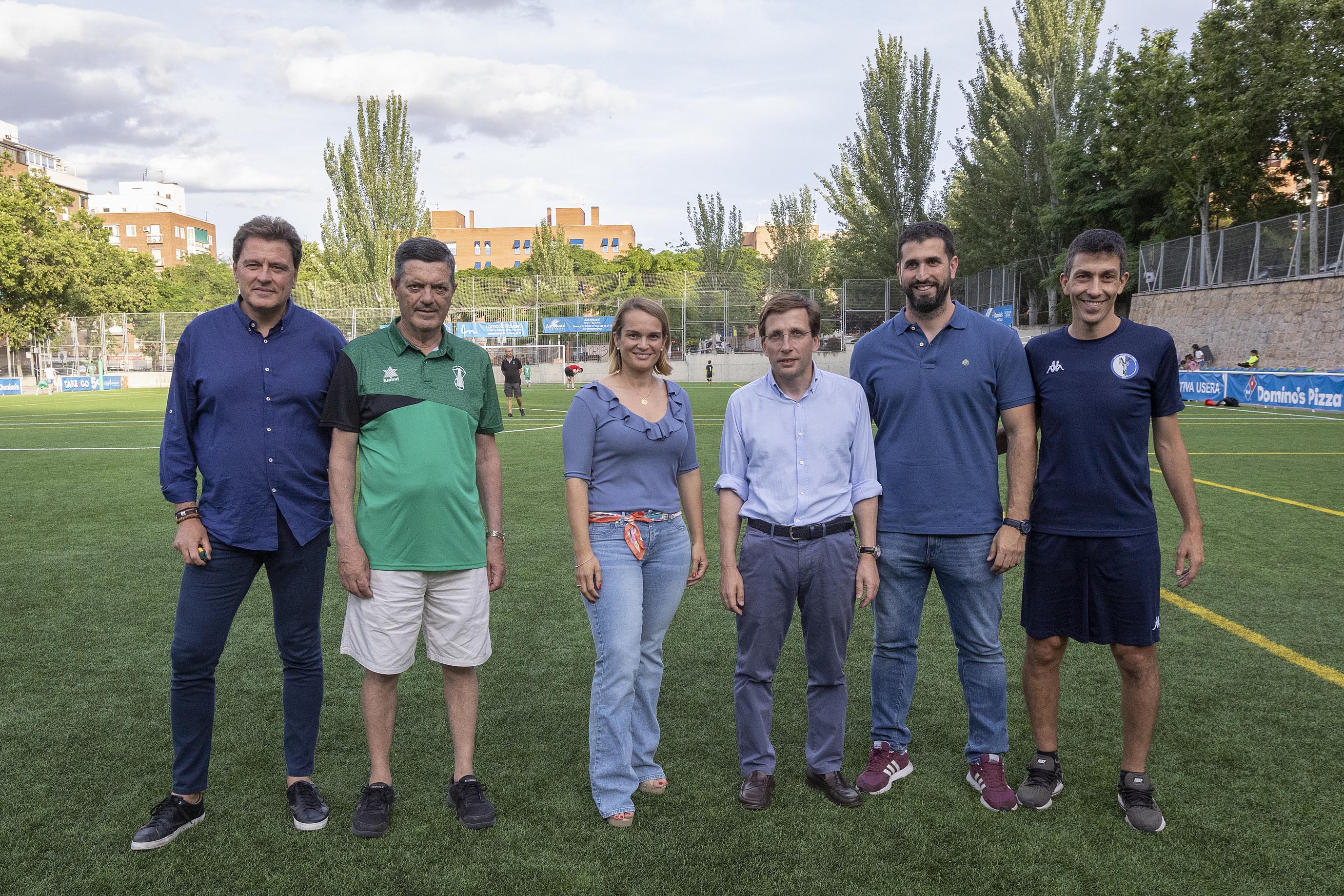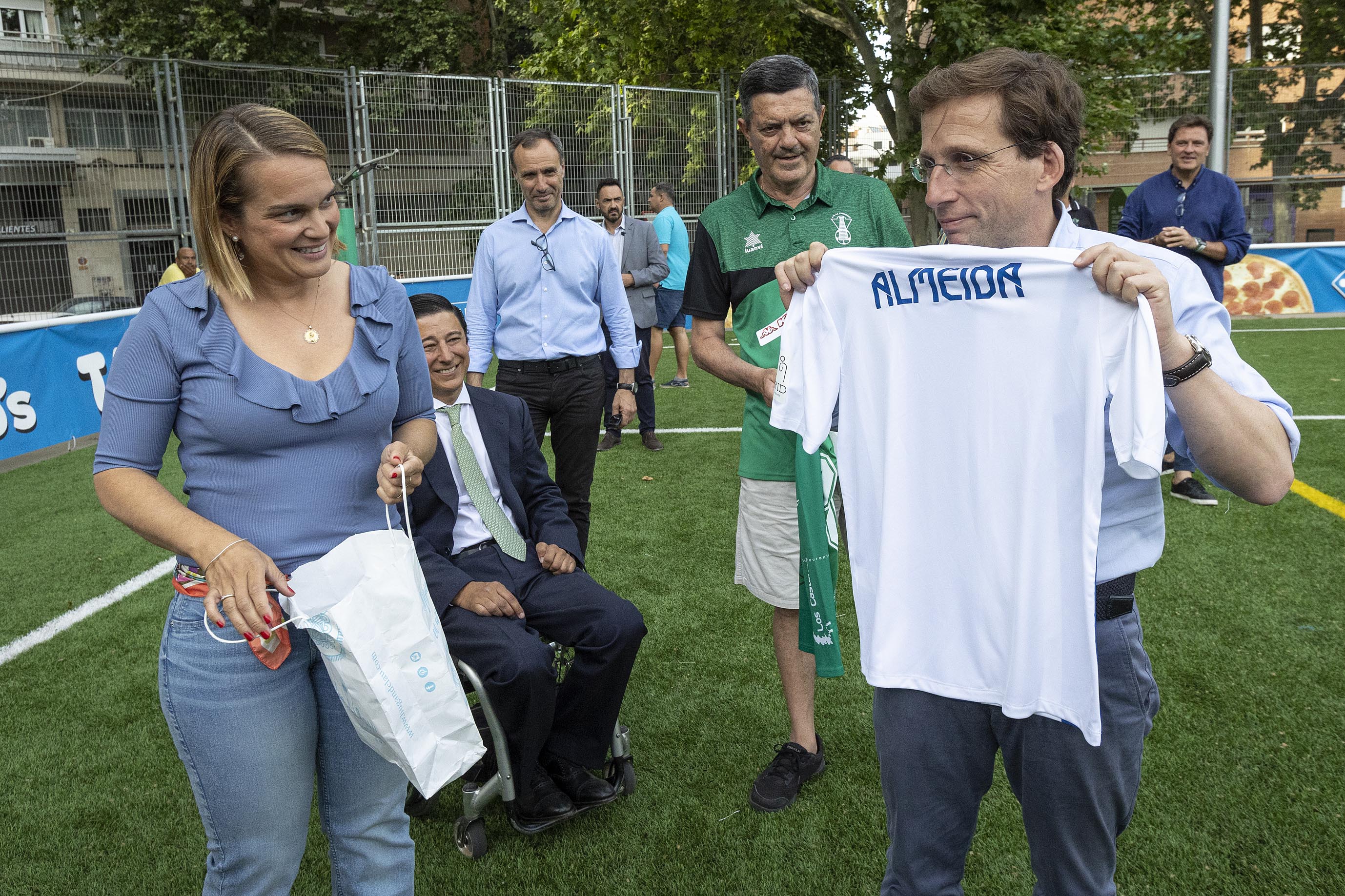 Durante la visita, Almeida ha podido saludar e intercambiar impresiones con los presidentes de los dos clubes deportivos que gestionan este campo de fútbol, La Chimenea y Club Unión Deportiva Usera, y los jugadores de los equipos de alevines e infantiles. En estas instalaciones, entrenan también distintos colegios del distrito, ya que los clubes les ceden las instalaciones.