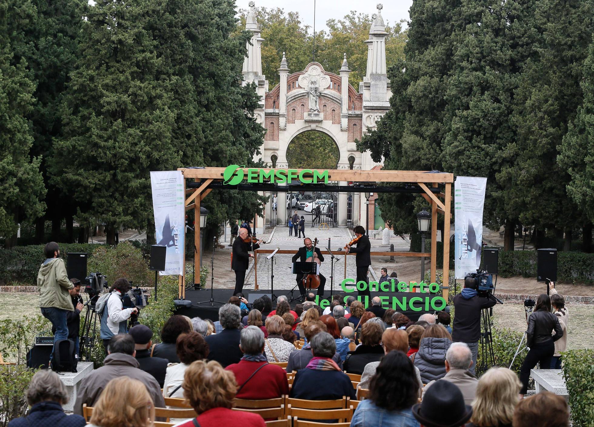 Con un escenario explícitamente montado para la ocasión, ubicado frente a la capilla del cementerio de La Almudena, la EMSFCM abre una vez más este espacio cargado de patrimonio histórico, cultural y artístico a toda la ciudadanía. El programa constará de cuatro conciertos en los que se podrá disfrutar de una serie de piezas musicales elegidas para la ocasión e interpretadas por músicos de primer nivel: