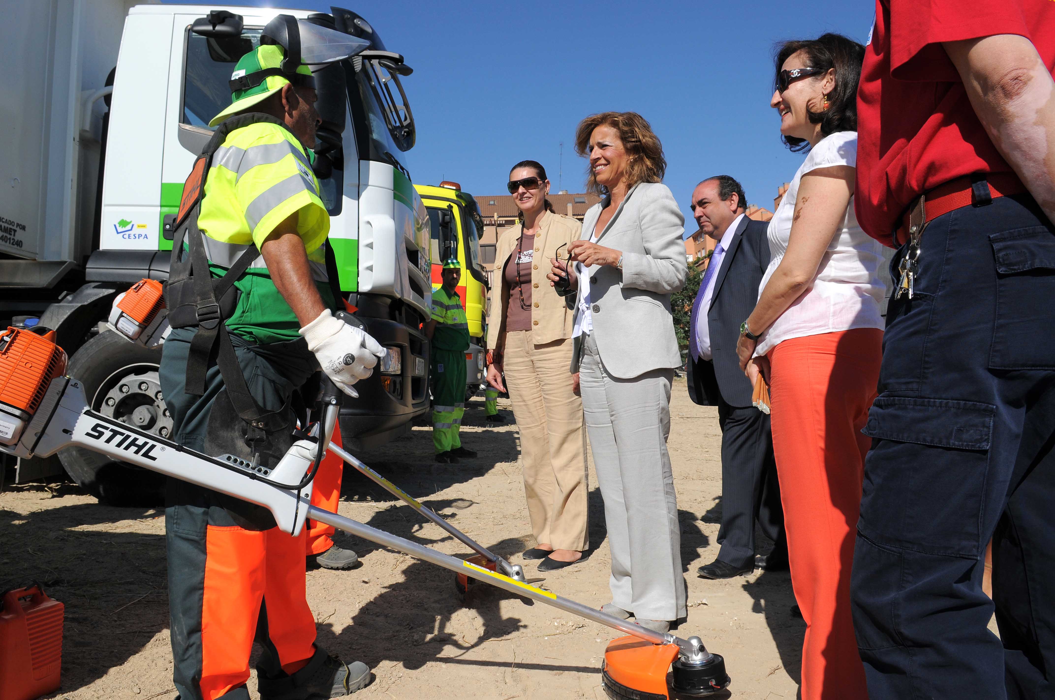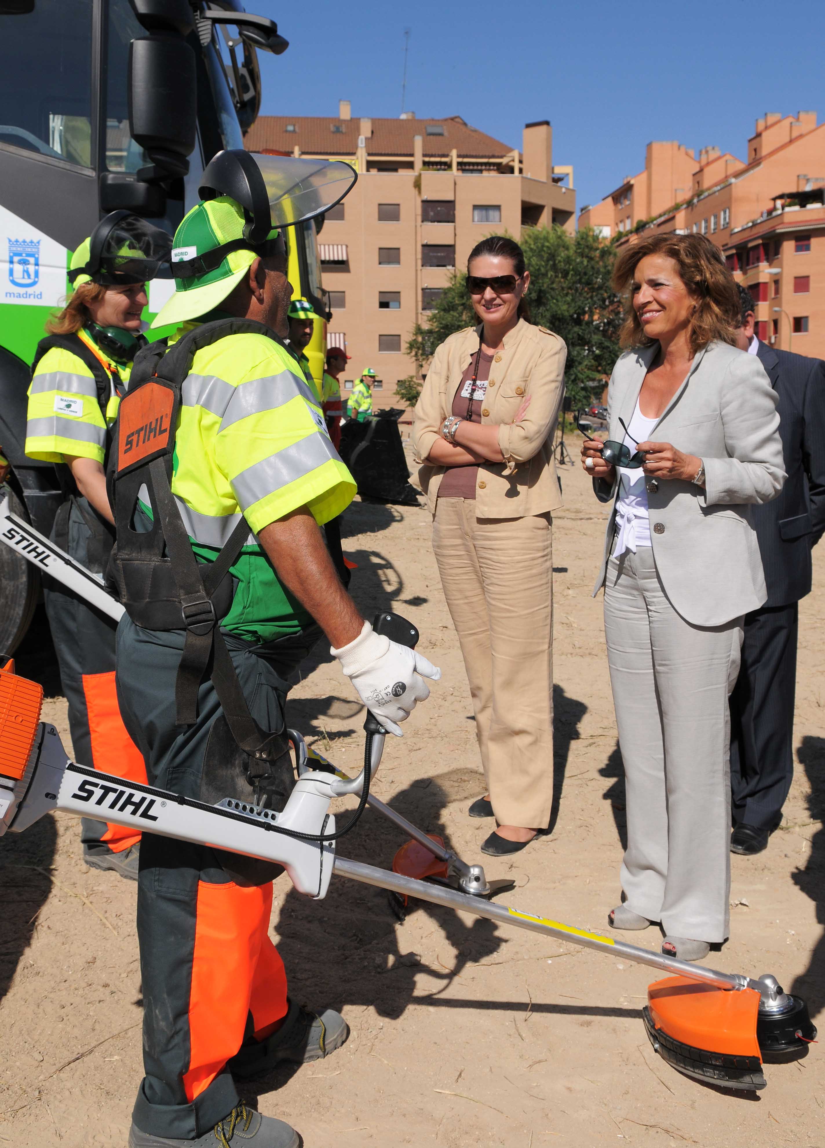 El Ayuntamiento de Madrid ha puesto en marcha la campaña anual de desbroce de solares municipales y espacios sin urbanizar para evitar el riesgo de incendios. De los 3,2 millones de metros cuadrados de parcelas de uso público local que se limpiarán este verano, ya se han arreglado 1,5 millones de metros cuadrados, lo que supone incrementar en un 22% la superficie desbrozada respecto al año pasado. La delegada de Medio Ambiente, Ana Botella, visitó esta mañana los trabajos que se están acometiendo en la parcela situada en la calle de Mónaco s/n, esquina con la de Calabria.