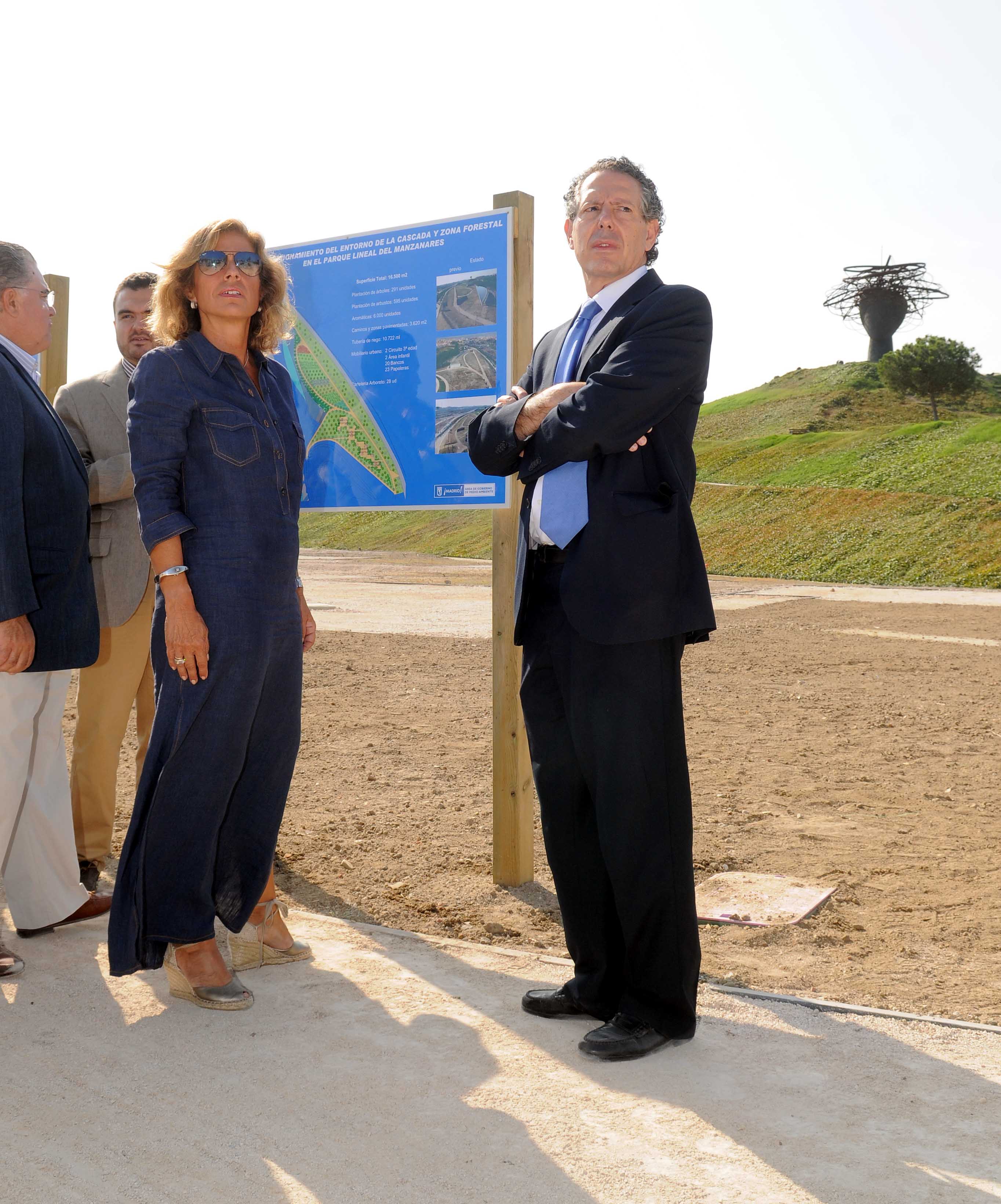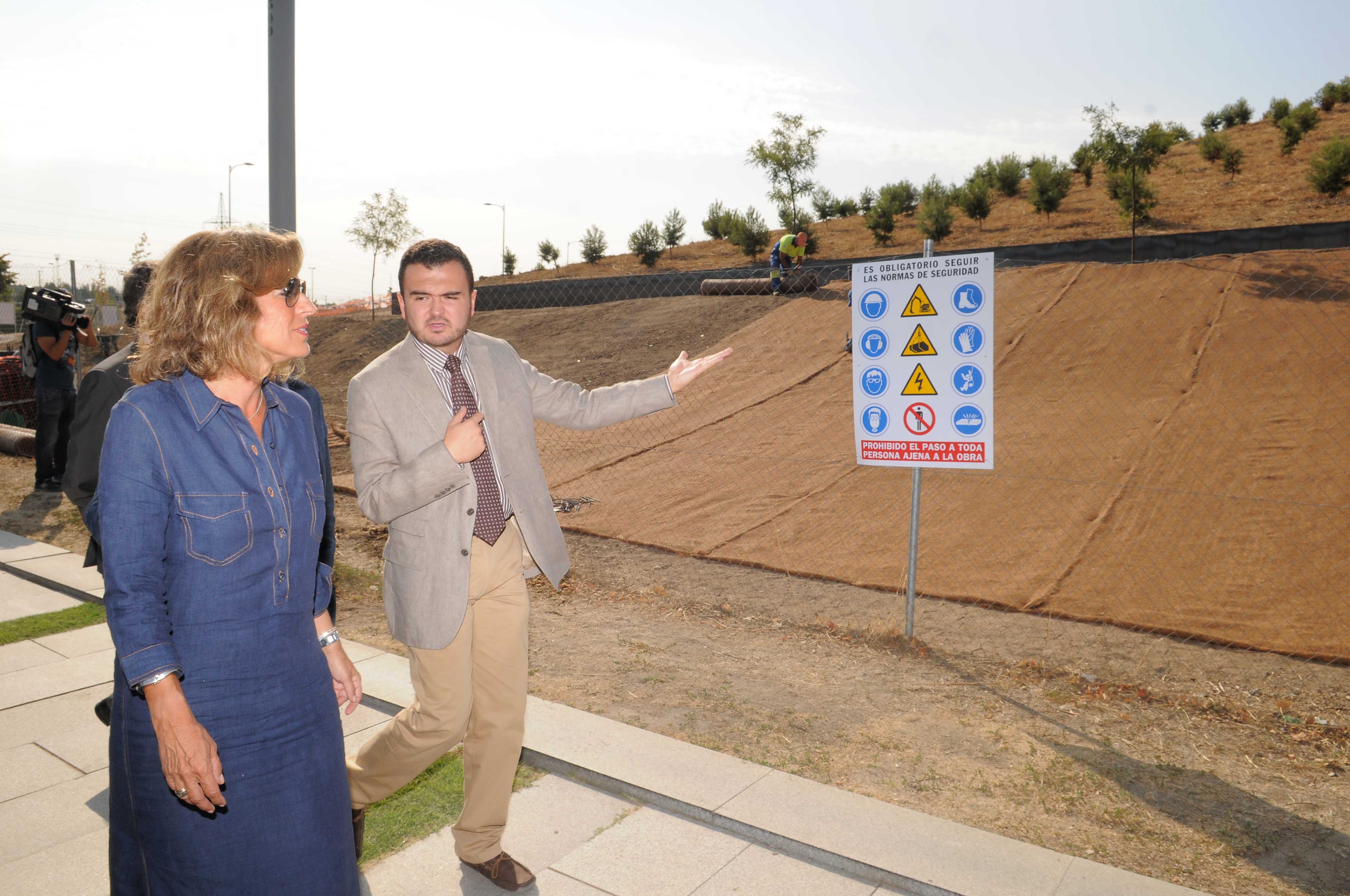 La delegada de Medio Ambiente, Ana Botella, ha visitado hoy las obras de acondicionamiento y ampliación del Parque Lineal del Manzanares. Los trabajos consisten en la adecuación del entorno de la cascada y en la ampliación de la fase I del parque con una nueva zona forestal de 9 hectáreas. El proyecto está financiado por el Fondo Estatal de Inversión Local con 2.300.000 euros y está previsto que termine en diciembre de este año.