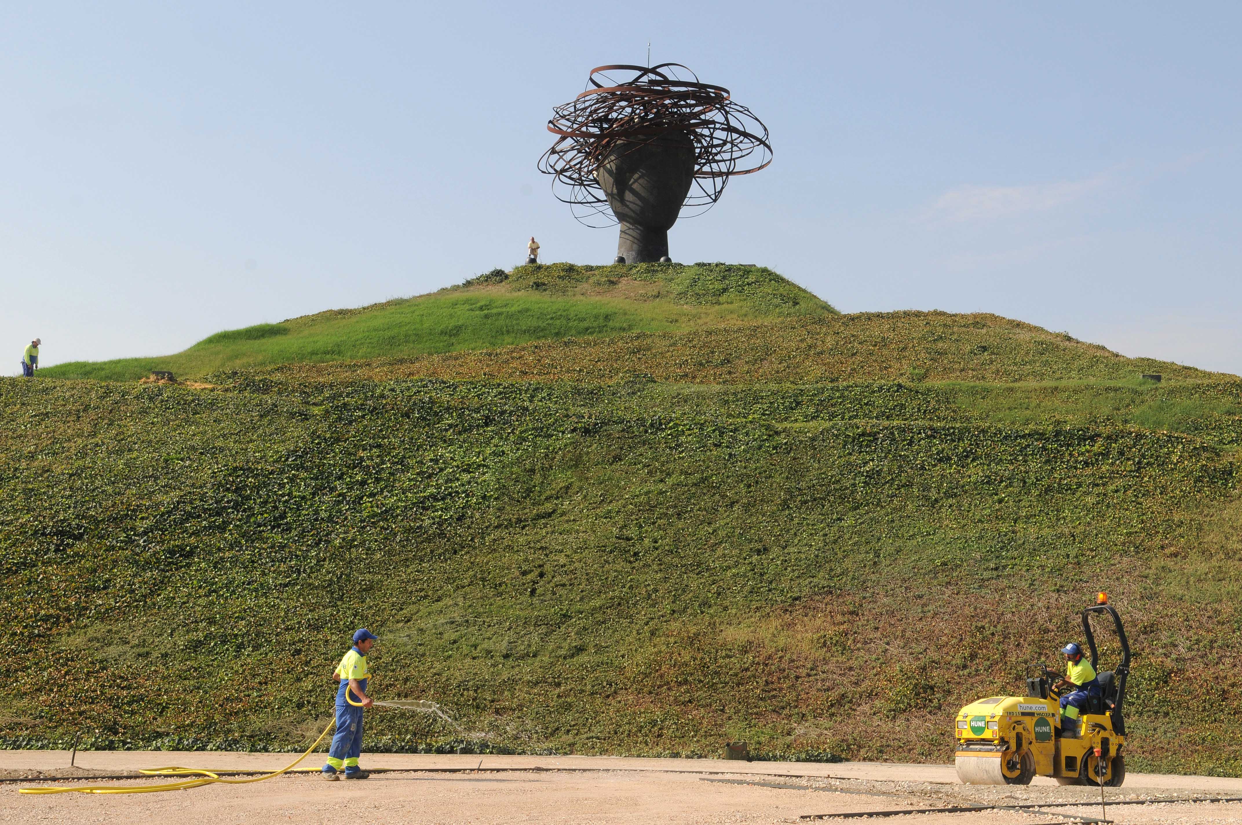 En la adecuación del entorno de la cascada se crea dos zonas diferenciadas en una superficie de 1,6 hectáreas. En la parcela norte, que se encuentra sobre la cubierta de la cascada, se plantarán macizos con arbustos ornamentales que confieran un valor paisajístico. En la parcela sur, de mayor tamaño, se plantarán árboles de especies frondosas y coníferas y se crearán una sucesión de plazas acondicionadas para diferentes usos con la dotación de 2 circuitos para las personas mayores y 2 áreas infantiles.
