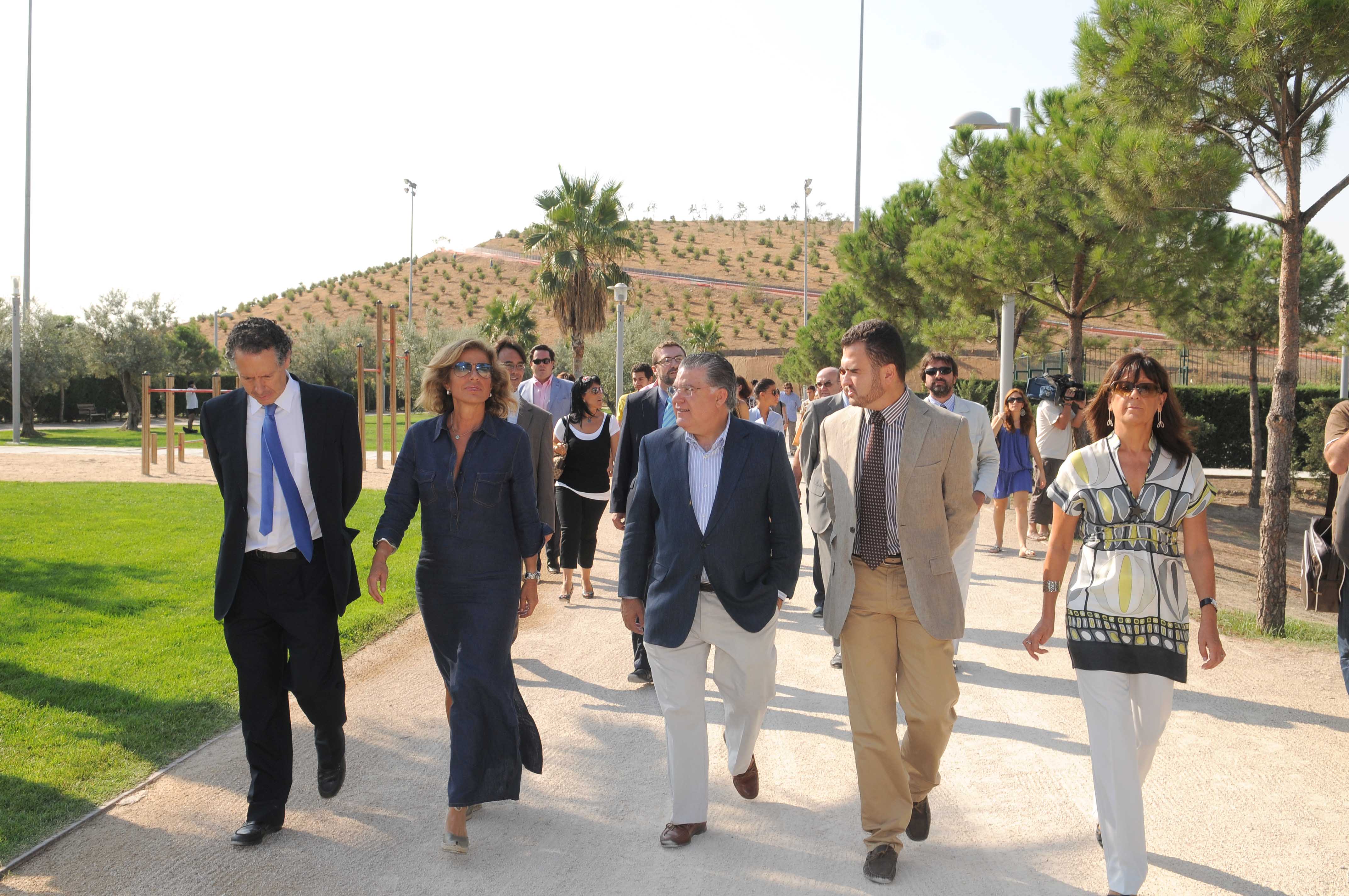 La delegada de Medio Ambiente, Ana Botella, visitando hoy las obras de acondicionamiento y ampliación del Parque Lineal del Manzanares.