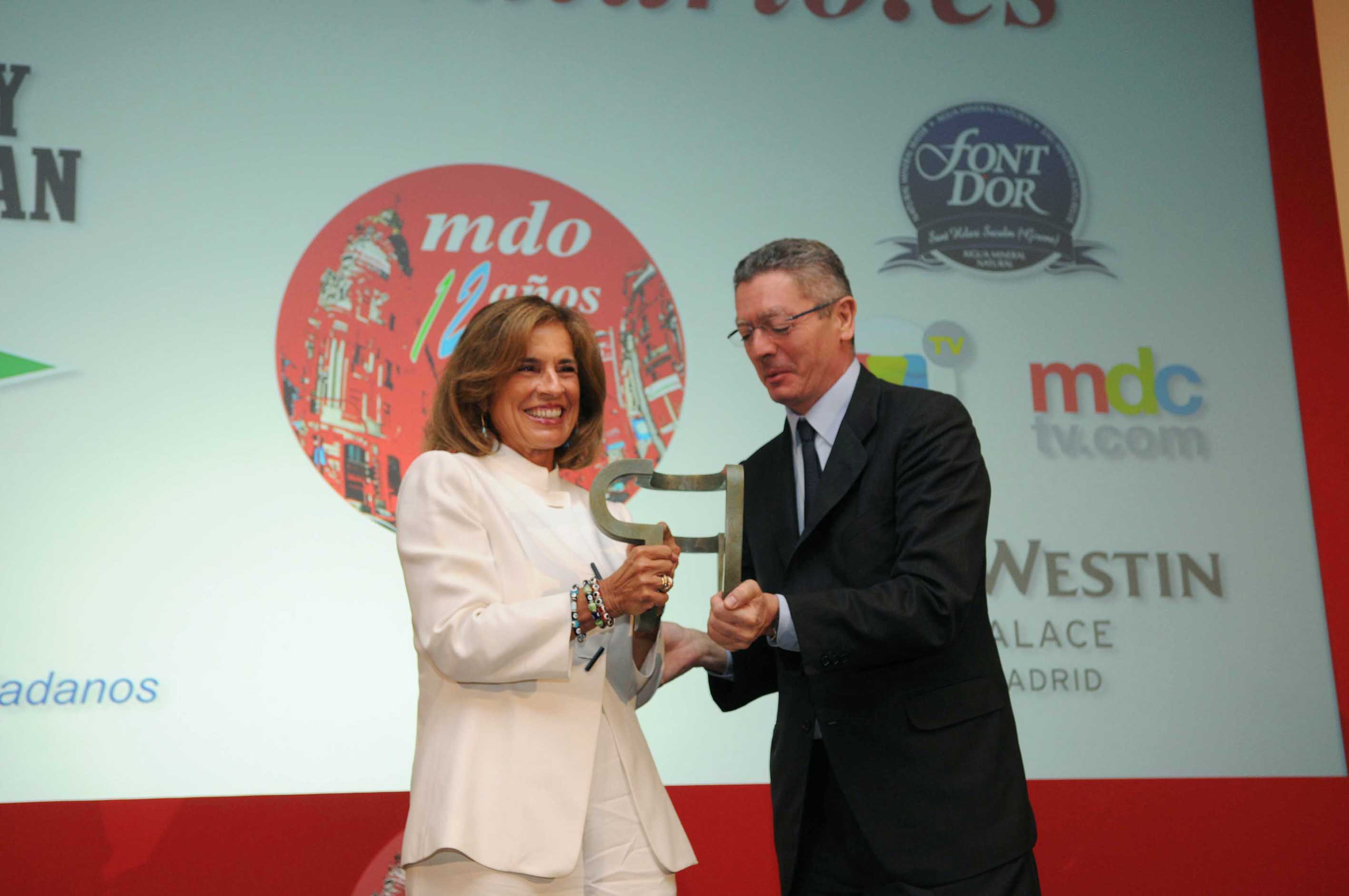 La alcaldesa de Madrid, Ana Botella, ha recibido, de manos del ministro de Justicia, Alberto Ruiz-Gallardón, el galardón "Mujer del Año" en la X Edición de los Premios Madrid.