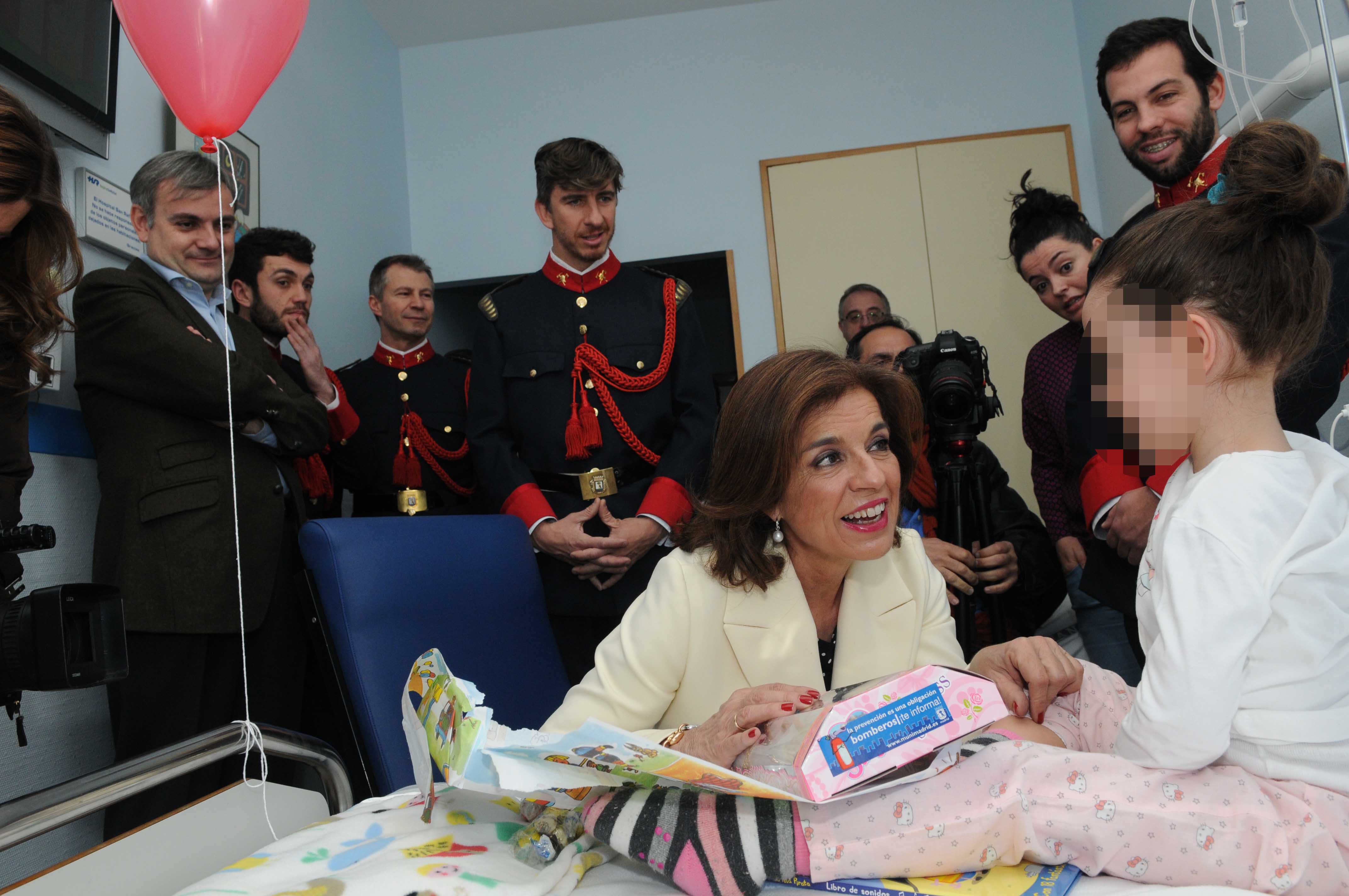 Ana Botella ha estado con los bomberos del Ayuntamiento repartiendo juguetes a los niños ingresados en el Hospital de San Rafael