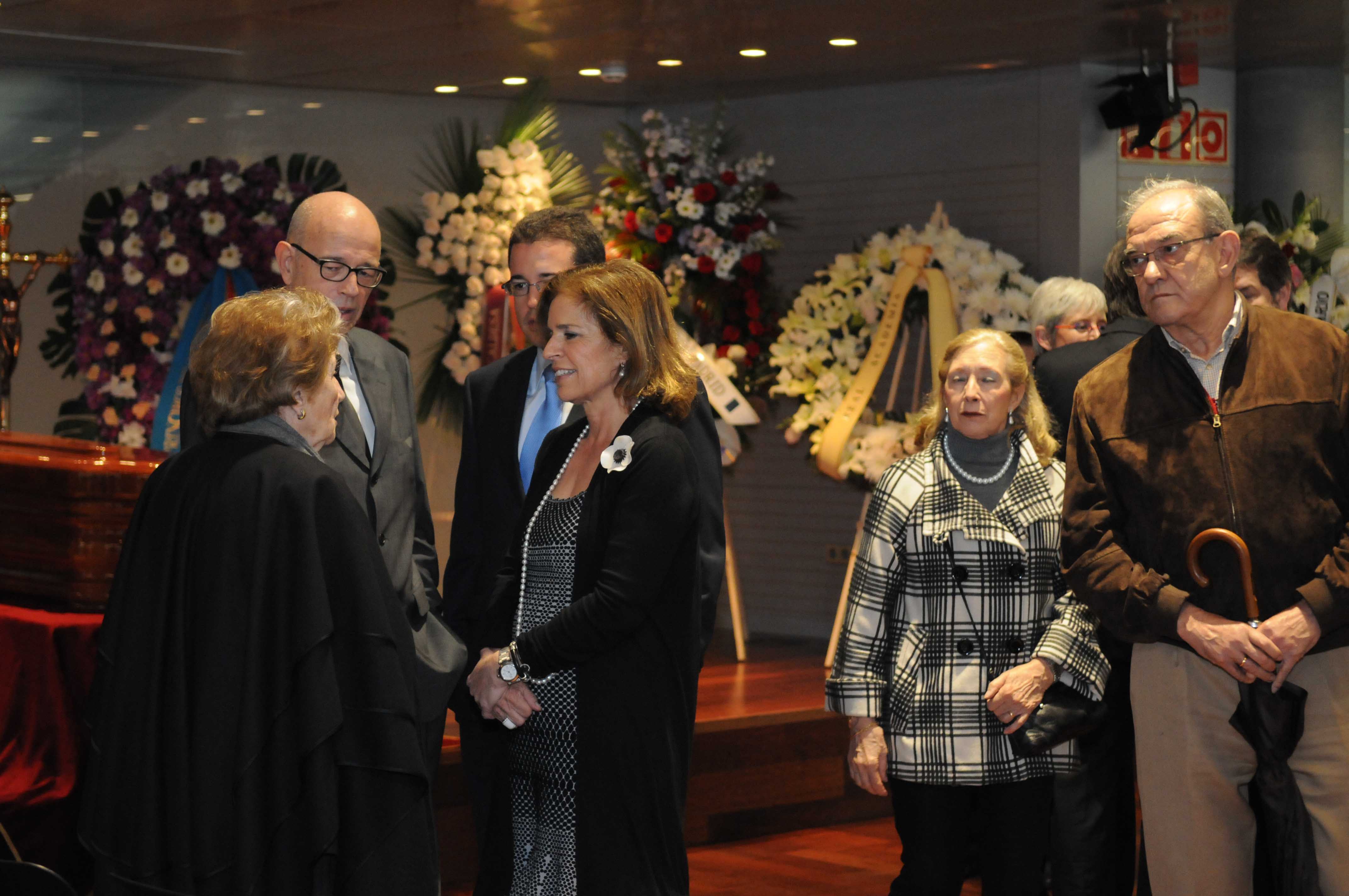 Imágenes de la visita que ha realizado hoy la alcaldesa de Madrid, Ana Botella, a la capilla ardiente del dibujante y académico Antonio Mingote, instalada en los Jardines de Cecilio Rodríguez, en El Retiro. Mingote es 'Alcalde Honorario' de este emblemático parque de la capital. Botella ha expresado sus condolencias a la familia de Mingote.