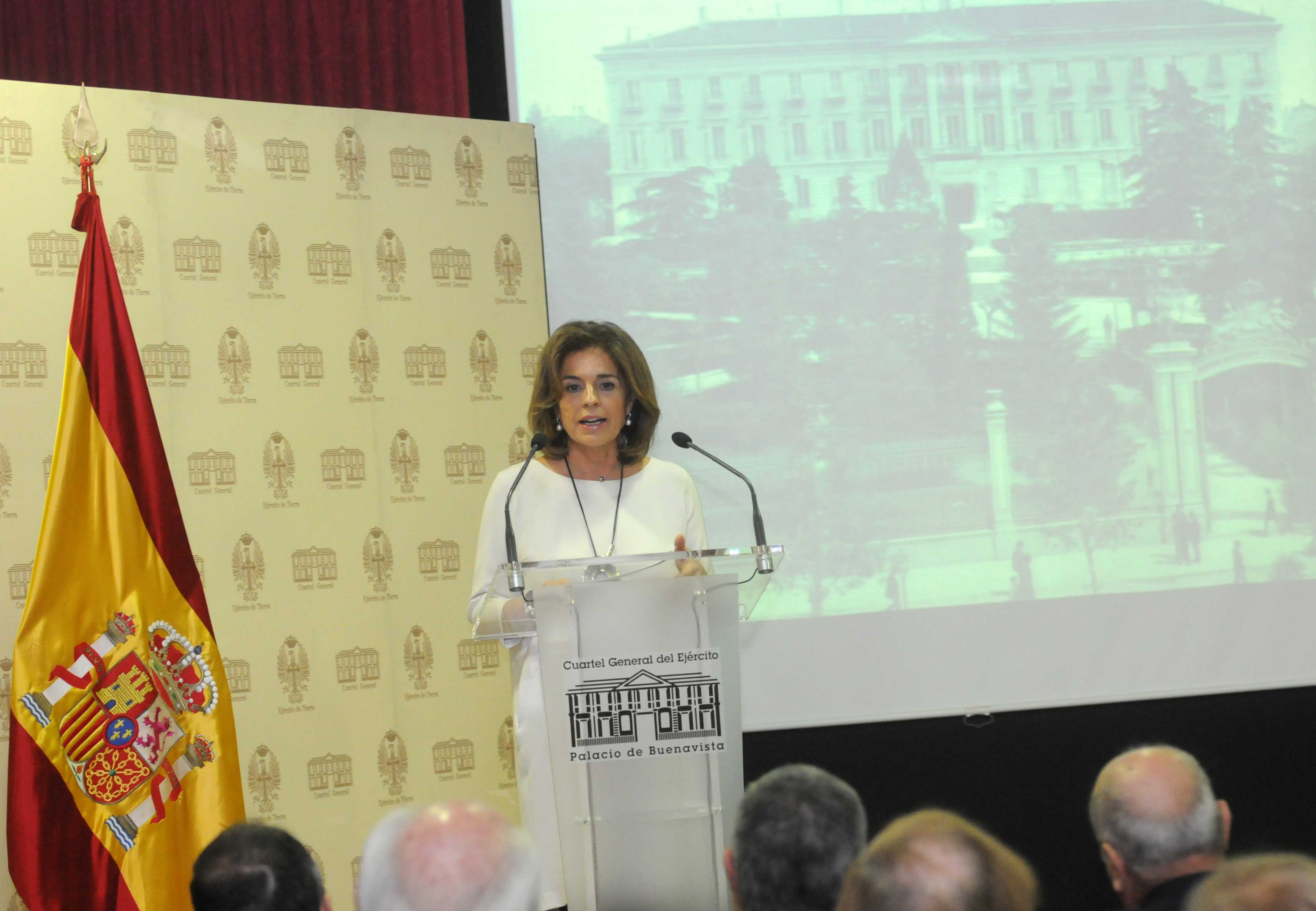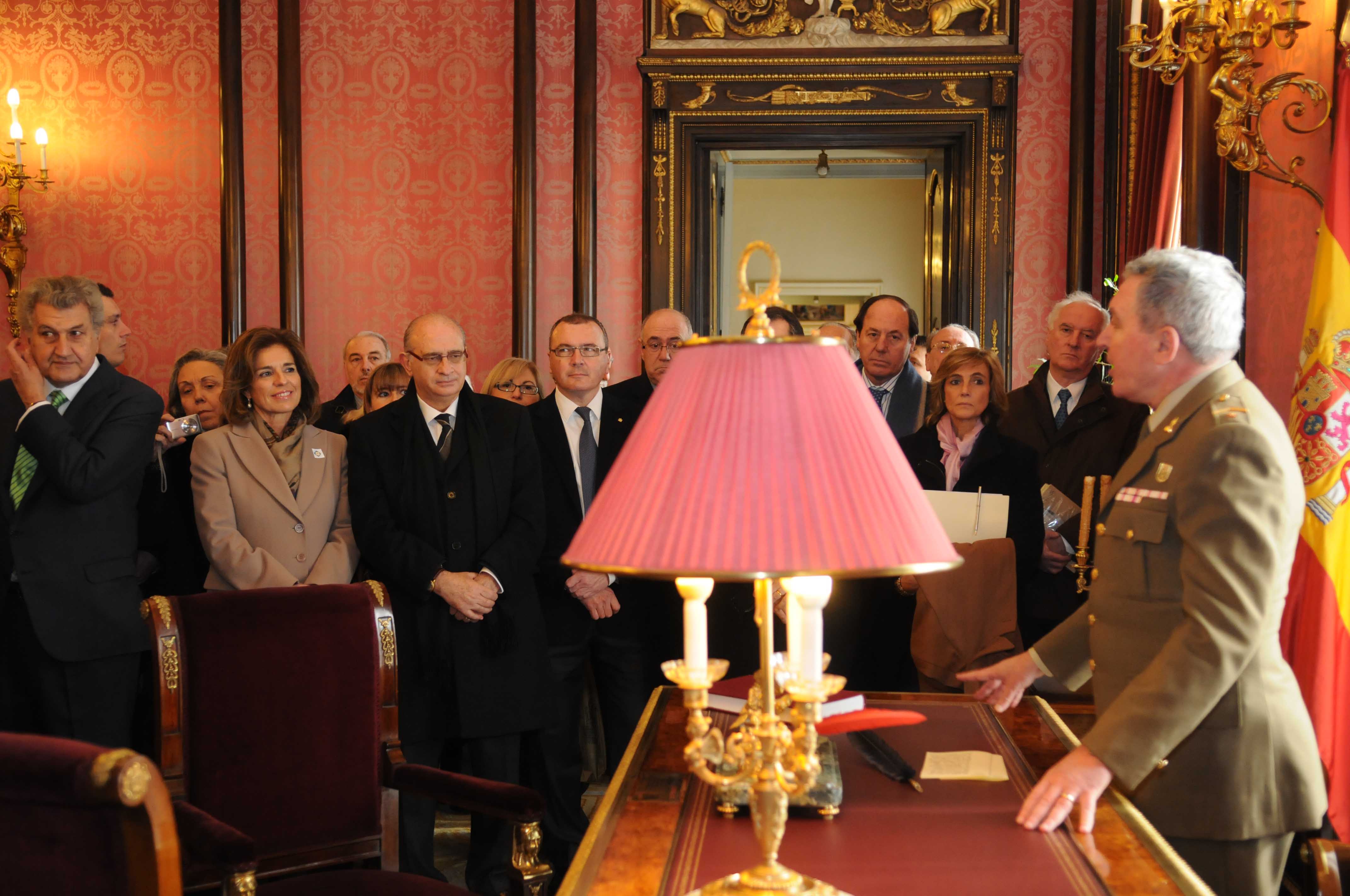 Diferentes momentos del acto de descubrimiento de una placa en homenaje al General Prim, al que ha asistido la alcaldesa de Madrid, Ana Botella