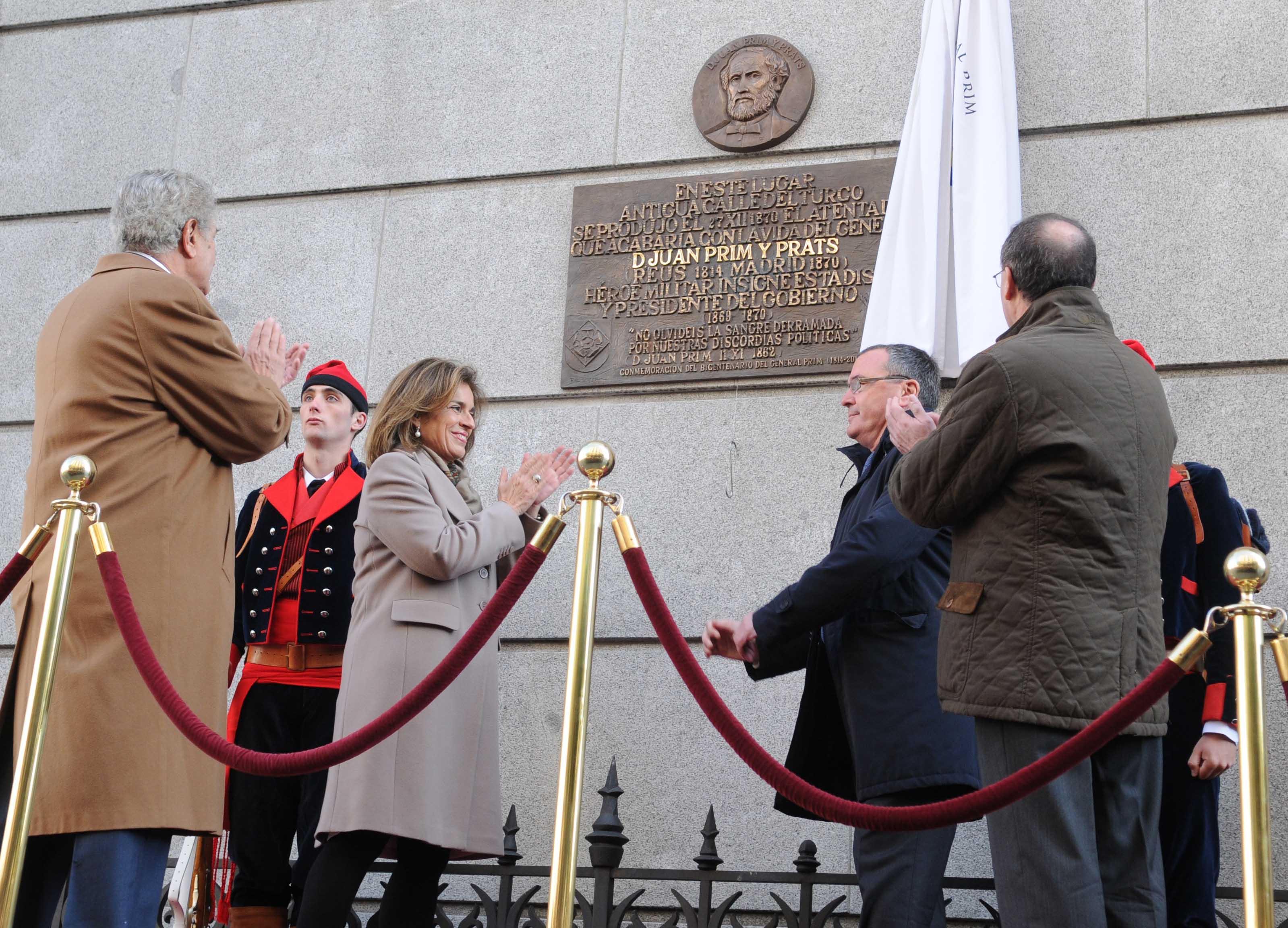 “Las calles de Madrid están llenas de historia”, ha declarado la alcaldesa, Ana Botella, en el acto de descubrimiento de una placa conmemorativa con motivo del aniversario del atentado contra el General Prim, que tuvo lugar el 27 de diciembre de 1870. La capital de España ha sido el escenario de muchos acontecimientos cruciales que están reflejados en el callejero de la metrópoli “para no olvidar la historia y a quienes la protagonizaron”. La placa se ha colocado en la calle Marqués de Cubas (entonces calle del Turco), donde tuvo lugar el atentado contra el que era presidente del Consejo de Ministros, fruto de una conspiración “que cambió la Historia de España”. A partir de hoy el recuerdo de Prim estará por partida doble en las calles de la ciudad, apuntó la alcaldesa. Ya lo estaba con la calle que lleva su nombre detrás del Palacio de Buenavista, en el que falleció tres días después de ser tiroteado, y ahora con la placa que recuerda este suceso y que dice: “No olvidéis la sangre derramada por nuestras disputas políticas”. Una frase del propio Juan Prim “muy bien elegida, y que no debemos olvidar”. Ana Botella recordó que 2012 ha sido el año del bicentenario de la Constitución de Cádiz, la primera que hizo de España una nación de ciudadanos, Y fue también en Cádiz donde nació en aquellos días el término “liberal”, un concepto que, con diferentes significados y alcances, se ha hecho universal en estos doscientos años. Unos acontecimientos que “tienen mucho que ver con la figura de Prim, nacido dos años después de las Cortes de Cádiz y que, además de militar, estadista y patriota, fue constitucionalista y liberal”./