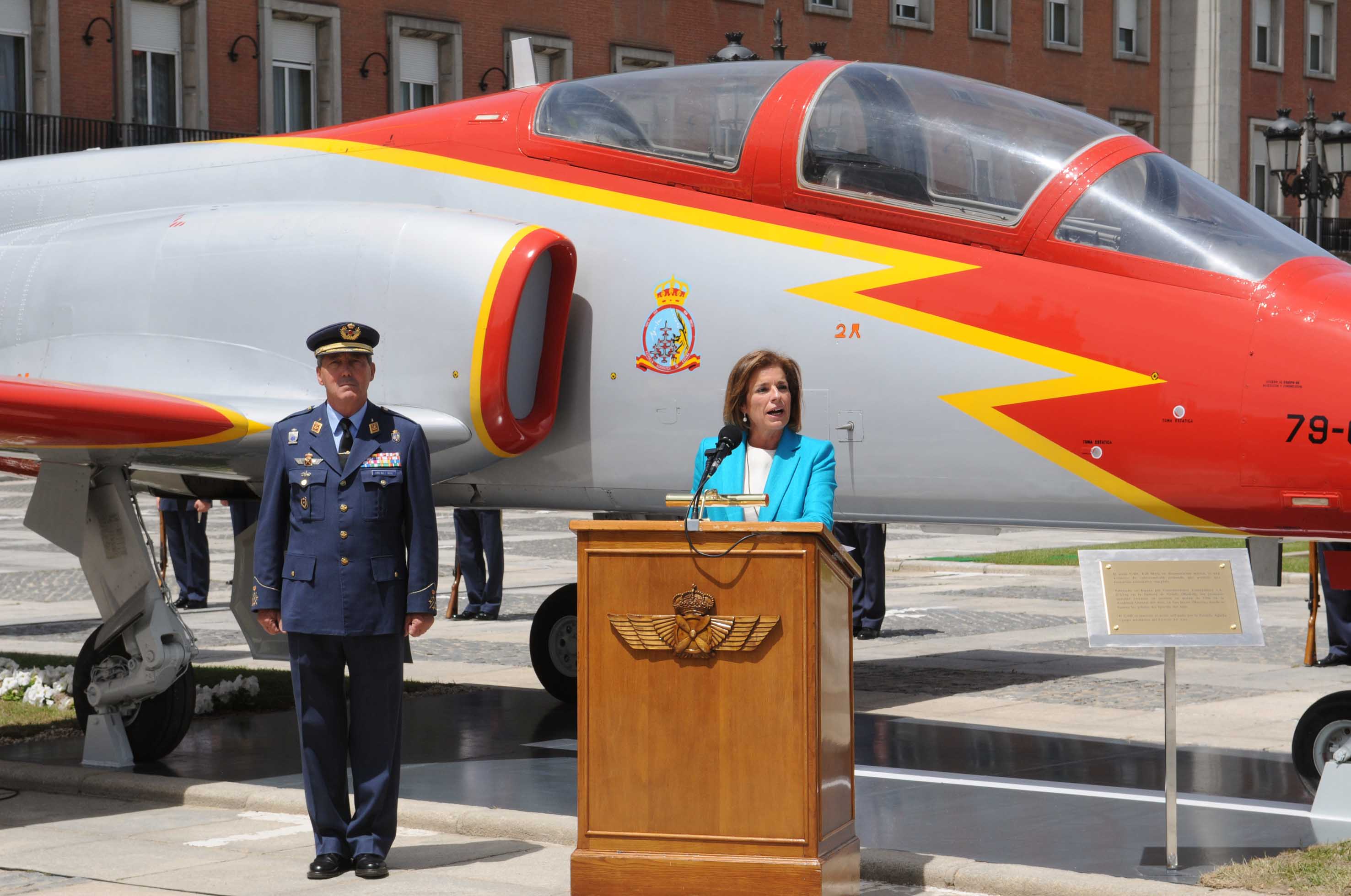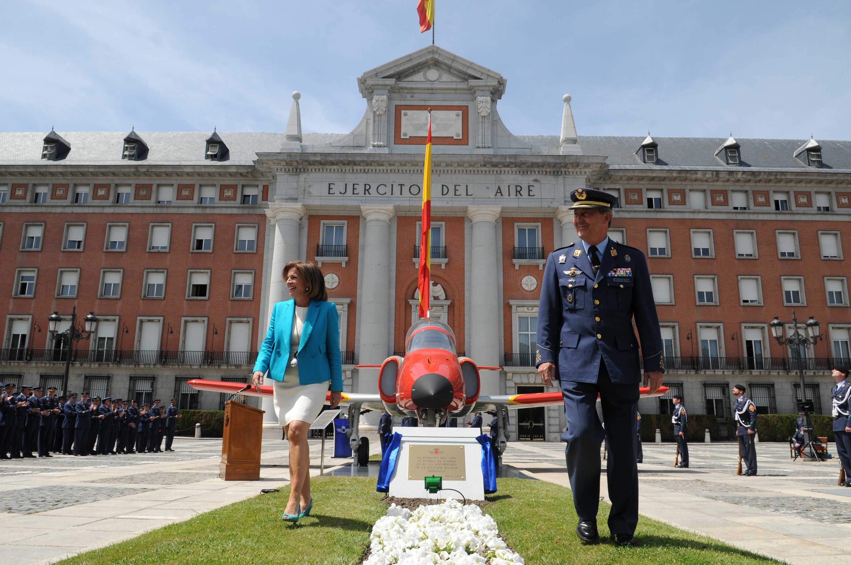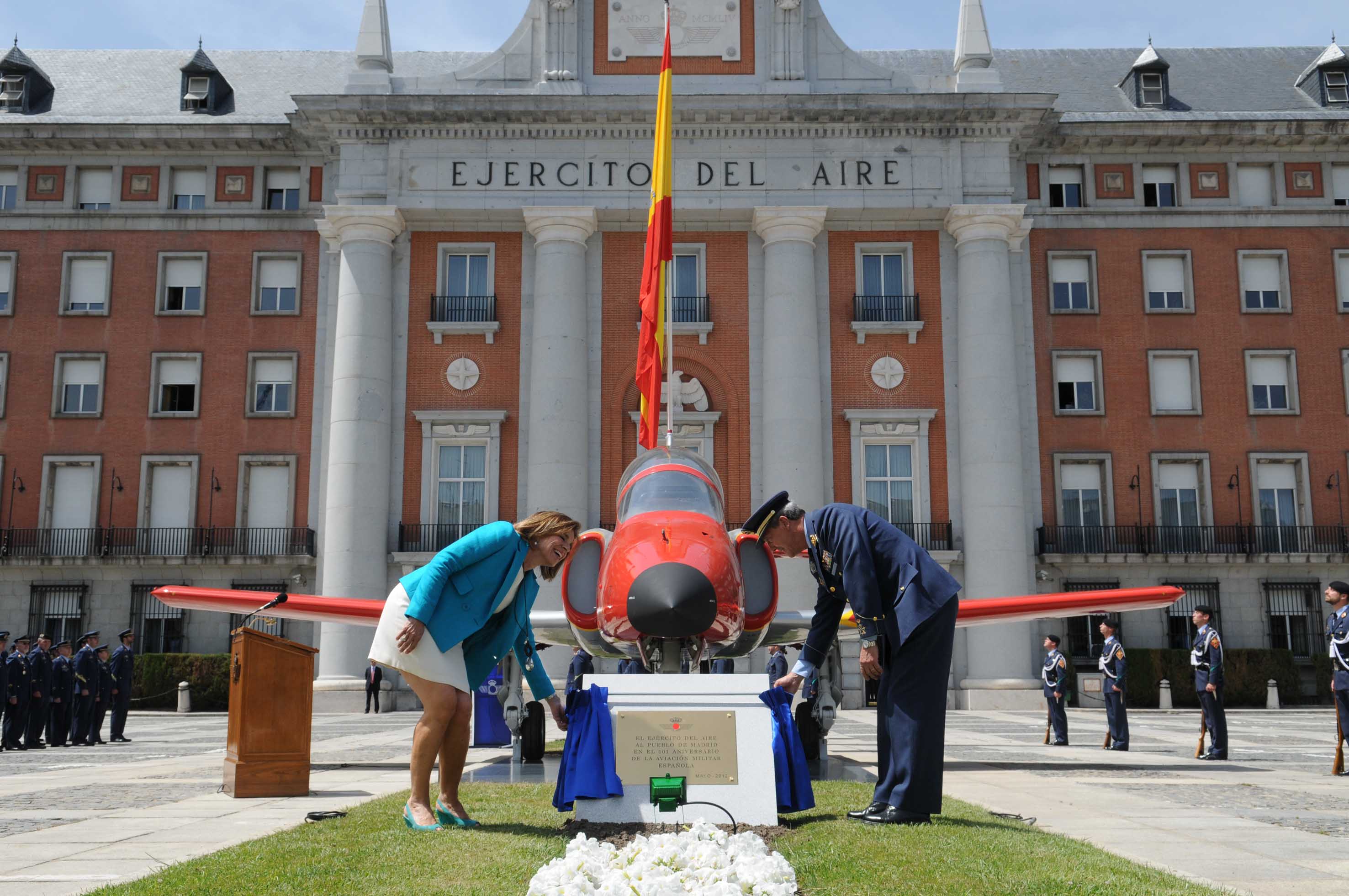 La alcaldesa de Madrid, Ana Botella, ha visitado hoy el Museo del Aire, situado en el Cuartel General de Ejército del Aire, en cuya explanada se ha instalado la aeronave C-101, el avión militar de entrenamiento del Ejército español. Lleva prestando servicio desde 1977 “y ha servido durante todos estos años ¬–ha señalado la alcaldesa– a cientos de pilotos como instrumento de aprendizaje, entrenamiento y también en las exhibiciones que se realizan tanto en España como en el extranjero”. Ana Botella ha elogiado el contenido del Museo, al que ahora se ha sumado el C-101, y que cuenta con piezas únicas, como el autogiro de Juan de la Cierva. Y ha calificado de idónea la instalación del avión en la explanada, “frente al monumento que conmemora la gesta del Plus Ultra, al lado de un importante centro de difusión tecnológica del Ayuntamiento, muy cerca del Faro de la Moncloa y de la Universidad, y al lado del intercambiador de transportes por el que cada día pasan más de 400.000 personas”.