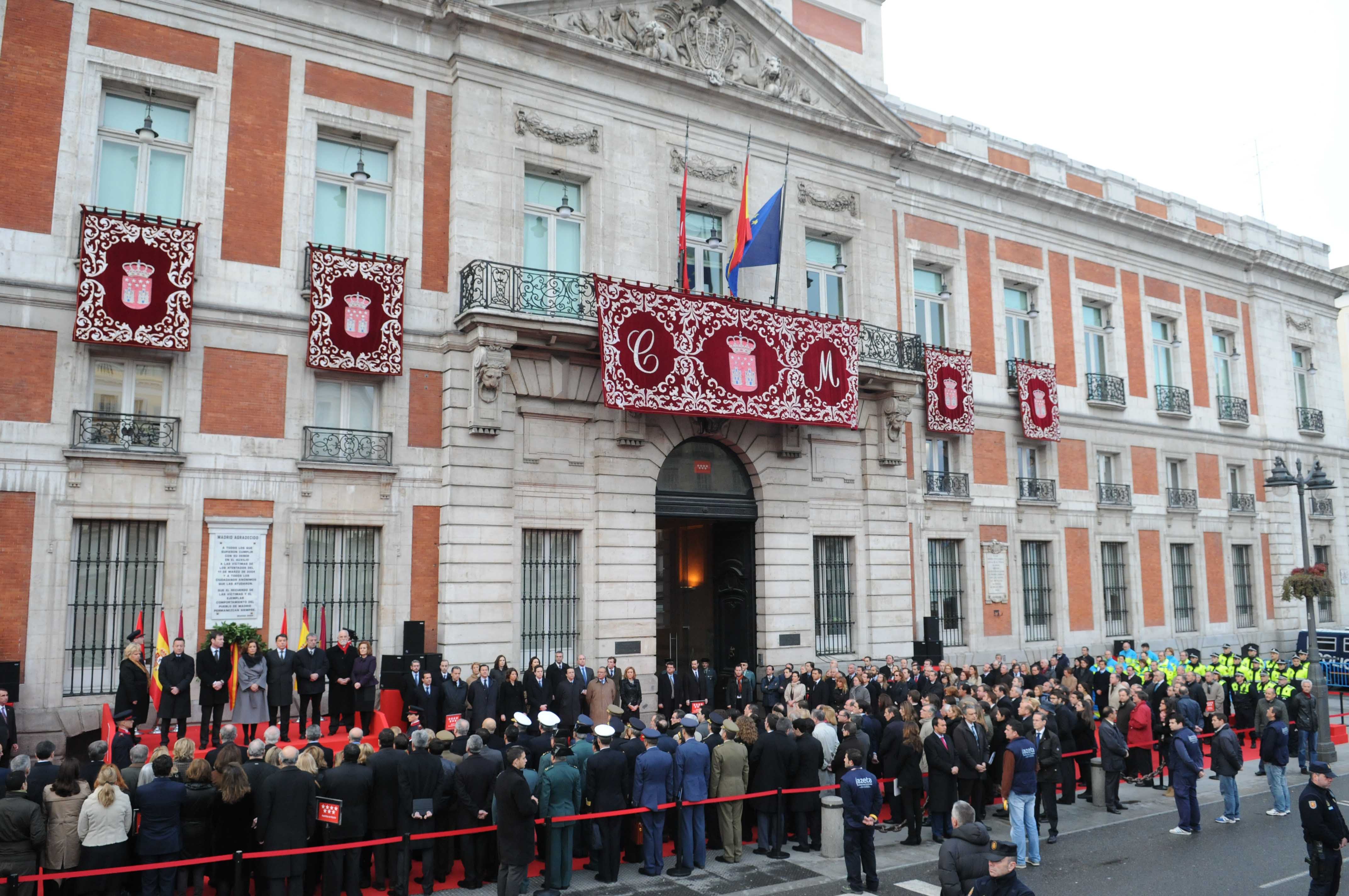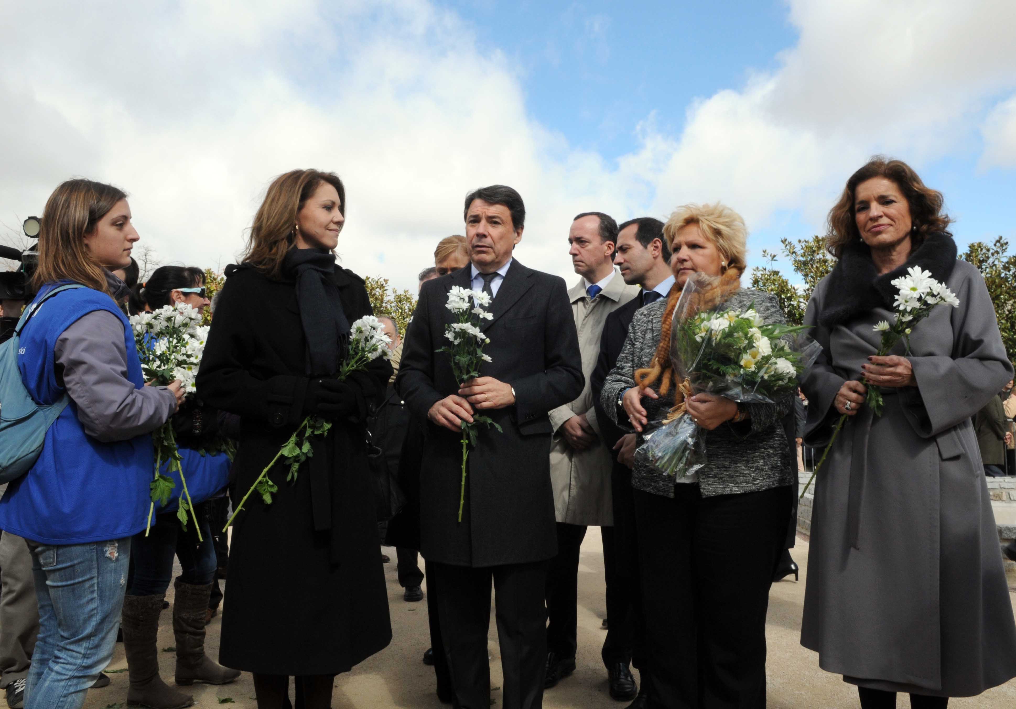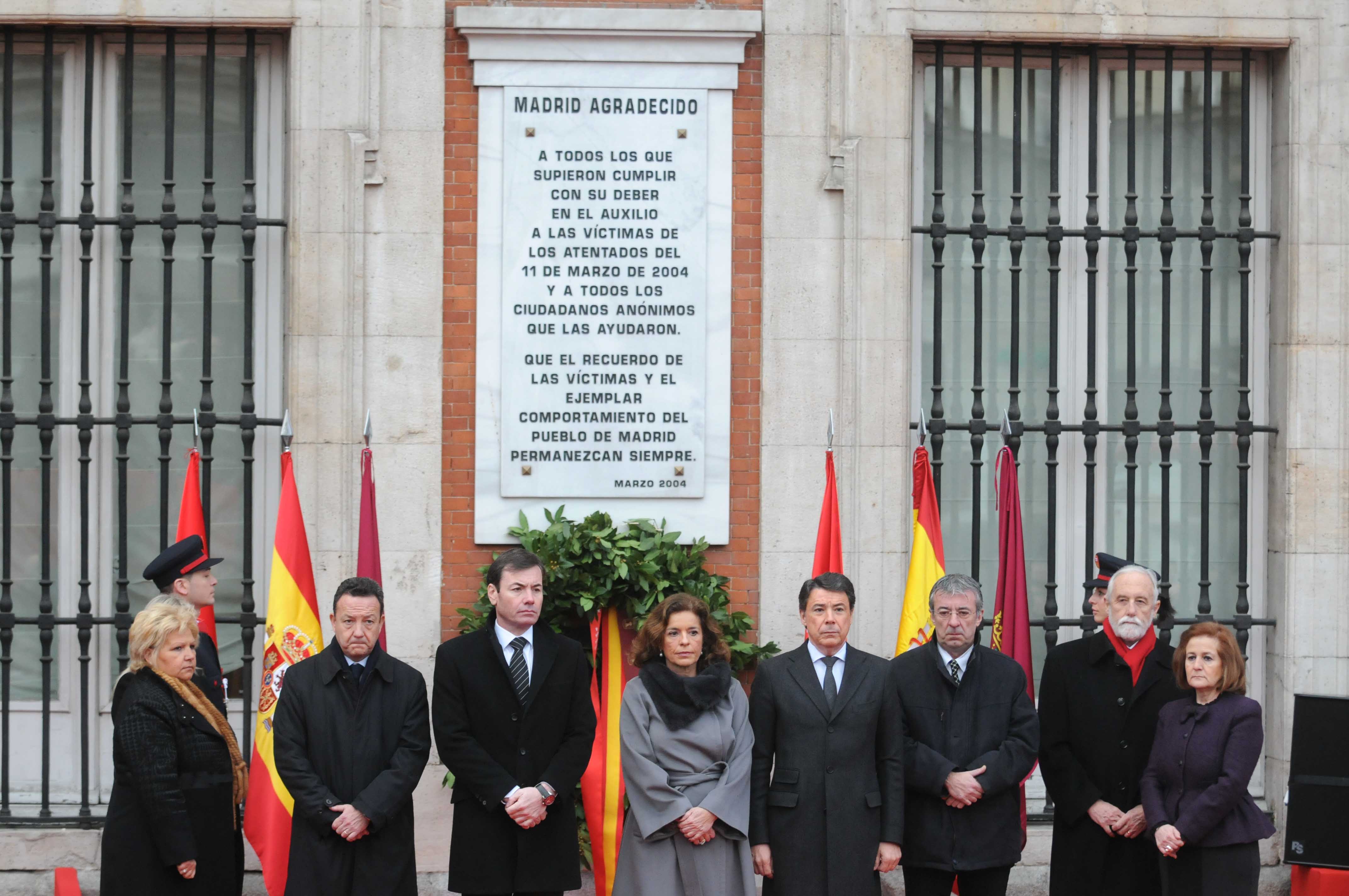 Madrid ha despertado esta mañana con el triste recuerdo de los atentados del 11-M, ocurridos hace nueve años. La Real Casa de Correos, sede de la Comunidad de Madrid, ha sido el escenario del primer homenaje a las víctimas. Con el Réquiem de Mozart de fondo, el presidente regional, Ignacio González, y la alcaldesa de Madrid, Ana Botella, han depositado una corona de laurel ante la placa instalada en la fachada de la Real Casa de Correos, en la Puerta del Sol, que recuerda a las víctimas y a los voluntarios. Además de Ana Botella e Ignacio González han asistido los ministros de Justicia, Alberto Ruiz- Gallardón, y Cultura, José Ignacio Wert; los portavoces de los grupos de la Asamblea de Madrid y las presidentas de diversas asociaciones de víctimas del terrorismo, entre otros. La alcaldesa también ha acudido al acto conmemorativo celebrado en el Bosque del Recuerdo, en El Retiro, organizado por la Asociación de Víctimas del Terrorismo (AVT), en el que se ha guardado un minuto de silencio y se han soltado 191 globos blancos en memoria de los fallecidos. La secretaria general del PP, María Dolores de Cospedal, la delegada del Gobierno, Cristina Cifuentes, y el presidente de la Comunidad de Madrid también se han sumado a este Día Europeo en Recuerdo de las Víctimas del Terrorismo./