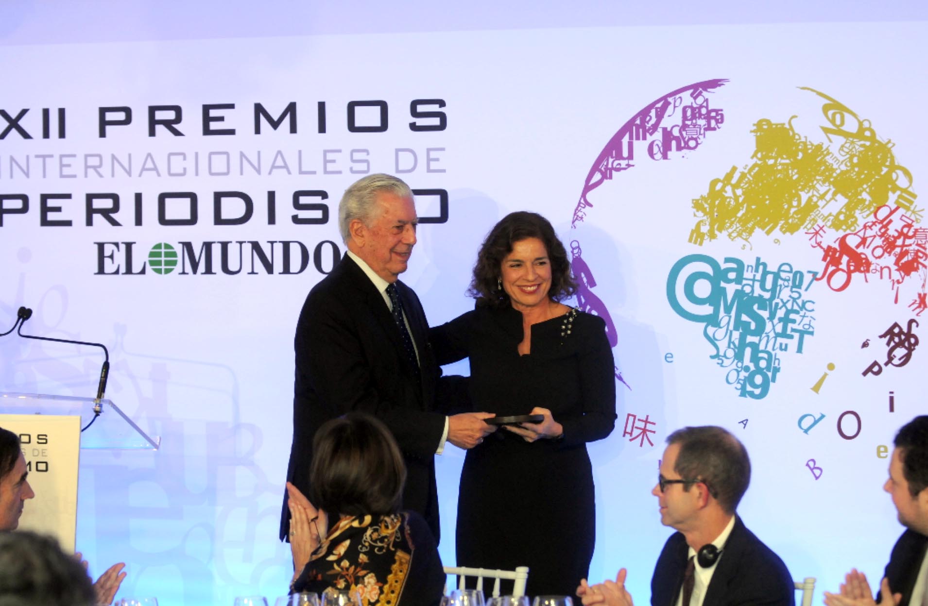 Ana Botella, alcaldesa de Madrid, ha entregado esta noche el premio "Columnistas del Mundo 2013" al Nobel de Literatura Mario Vargas Llosa. Un galardón que quiere reconocer otra de las muchas facetas del escritor, la periodística. También en esta su XII edición han distinguido ‘ex aequo' con el Premio Reporteros del Mundo a Jennifer Preston y a Anthony de Rosa, editora del blog en vivo del New York Times, y editor jefe de la startup Circa, respectivamente. Este último galardón se concede en memoria de Julio Fuentes y Julio Anguita Parrado, ambos periodistas de El Mundo, fallecidos mientras cubrían actos bélicos.