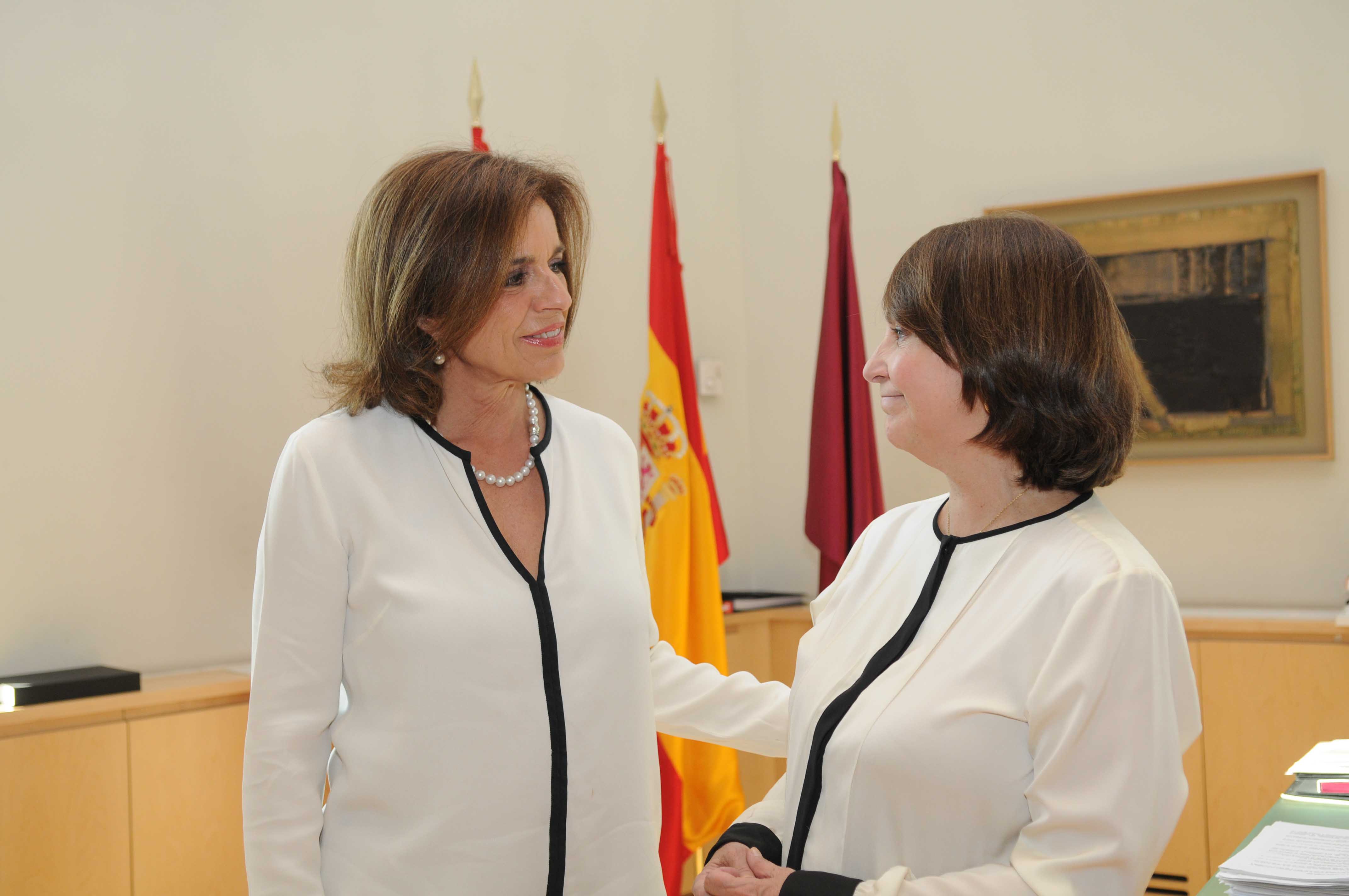 La alcaldesa de Madrid, Ana Botella, en su encuentro con Mitzy Carriles de Ledezma, esposa del alcalde metropolitano de Caracas, Antonio Ledezma, detenido desde el pasado mes de febrero por orden del presidente de Venezuela, Nicolás Maduro. La reunión ha tenido lugar en el Palacio de Cibeles.