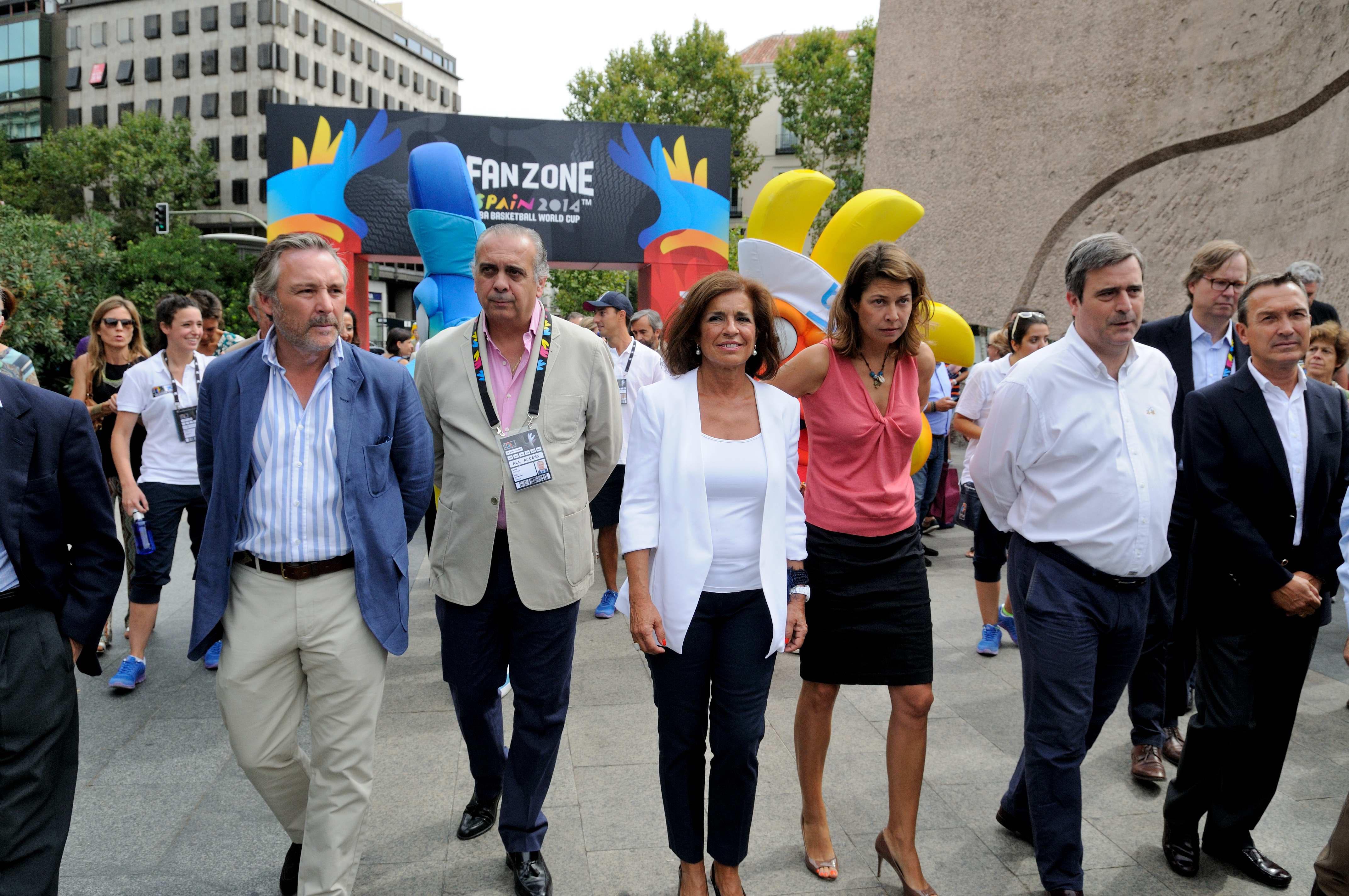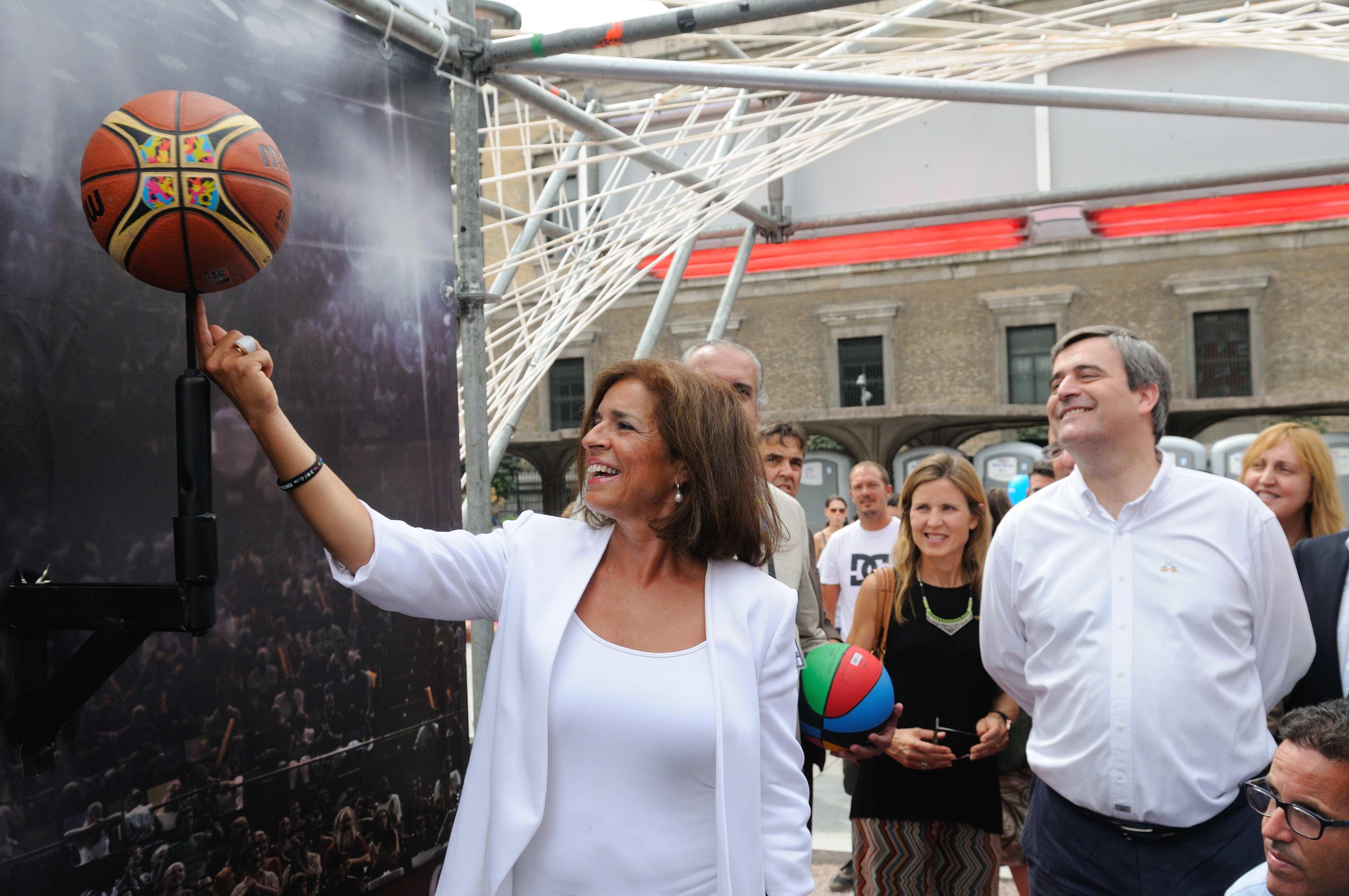 La alcaldesa Ana Botella en la Basket Square, en la Plaza de Colón, con motivo de la celebración de la Copa del Mundo de Baloncesto.