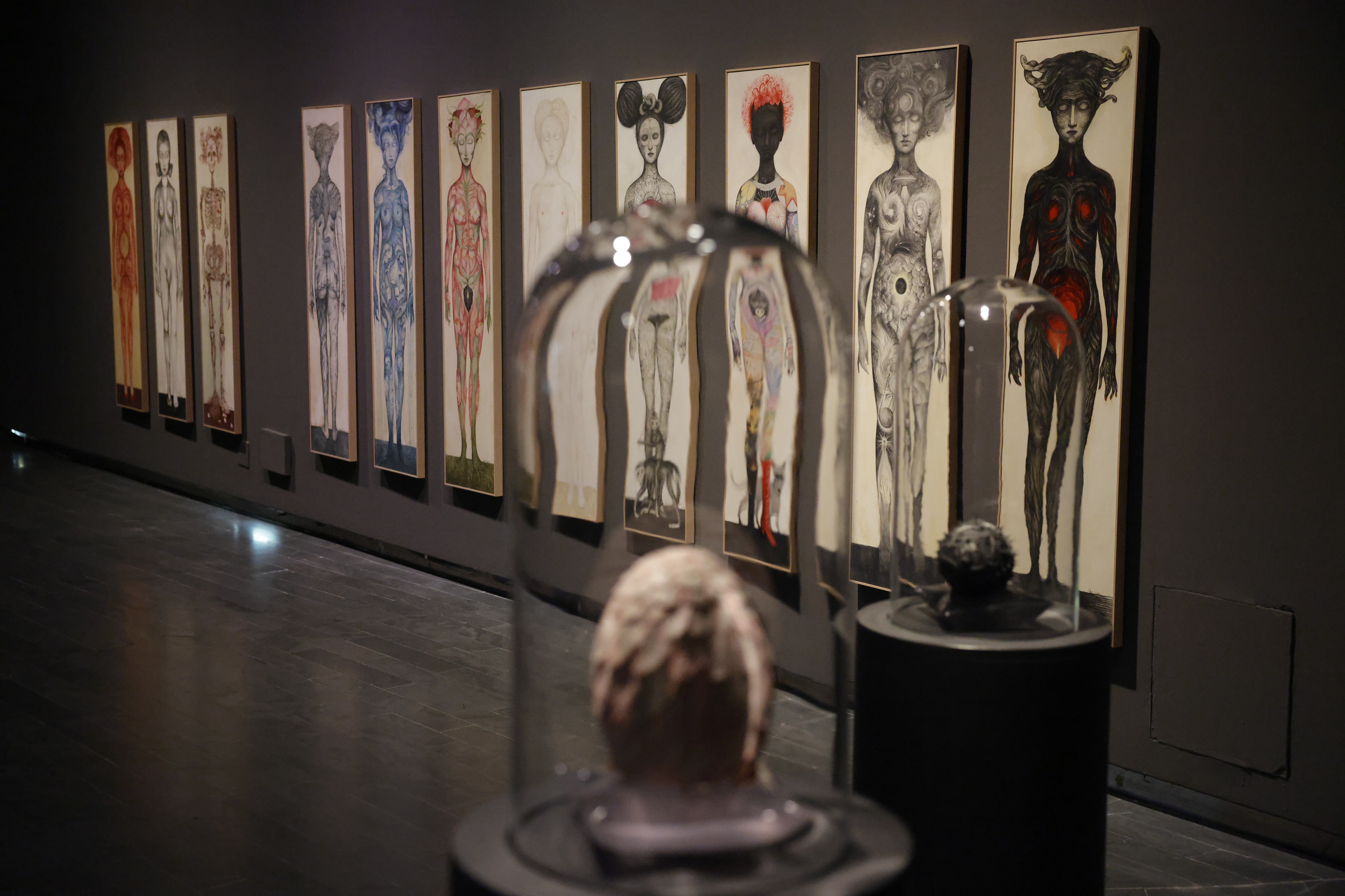 - El dibujo es el eje central de la exposición y se presenta en su forma más clásica —grafito sobre papel— y en nuevos formatos que explora la artista, como la escultura y la animación