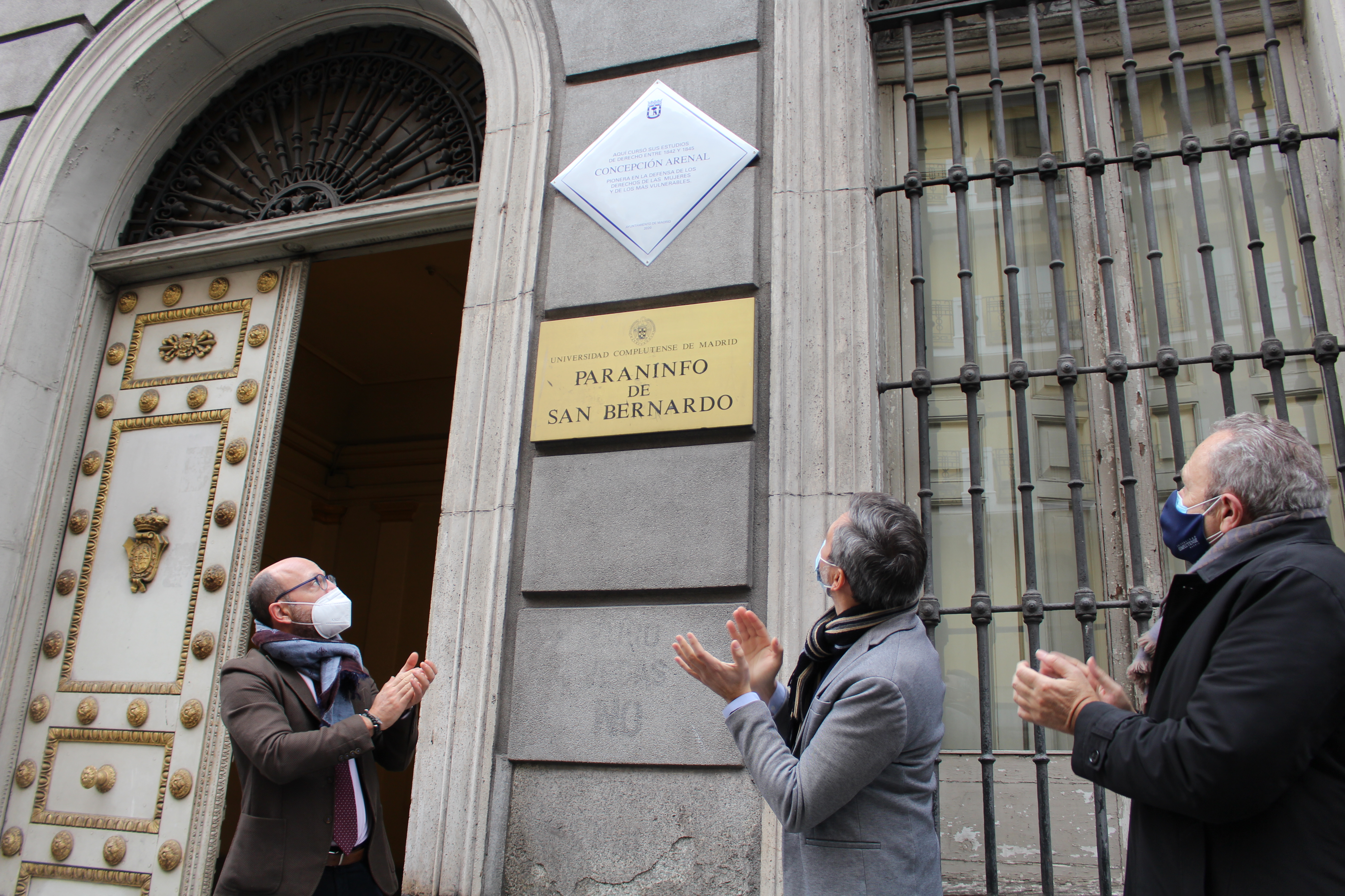 La placa, aprobada por unanimidad de todos los grupos políticos en el Pleno del Ayuntamiento en enero de este año, recuerda la etapa universitaria de Concepción Arenal, que cursó sus estudios de Derecho entre 1842 y 1845 en la antes llamada Universidad Central y su trabajo en defensa de la igualdad entre mujeres y hombres, así como su ayuda a los colectivos más vulnerables.