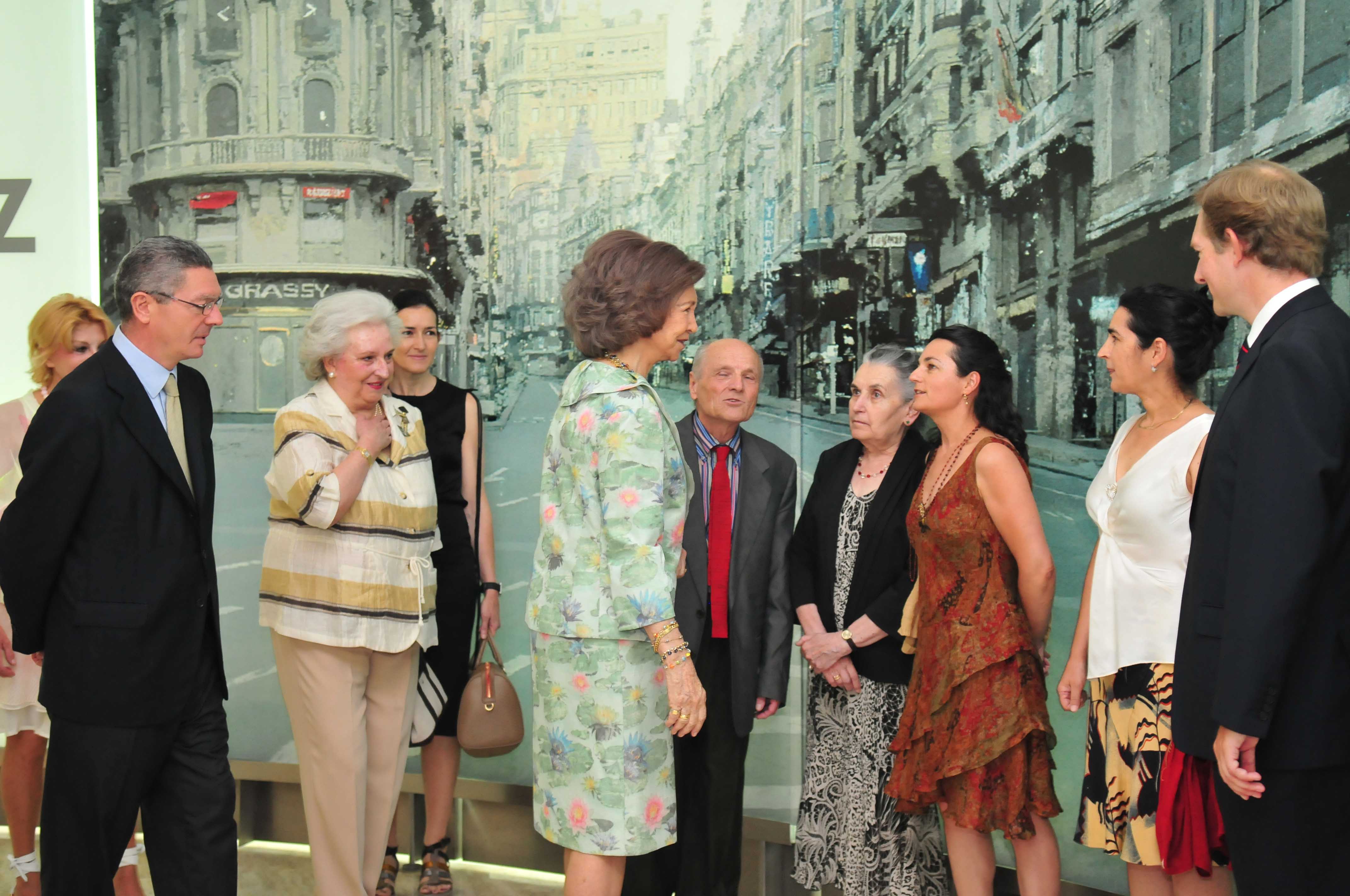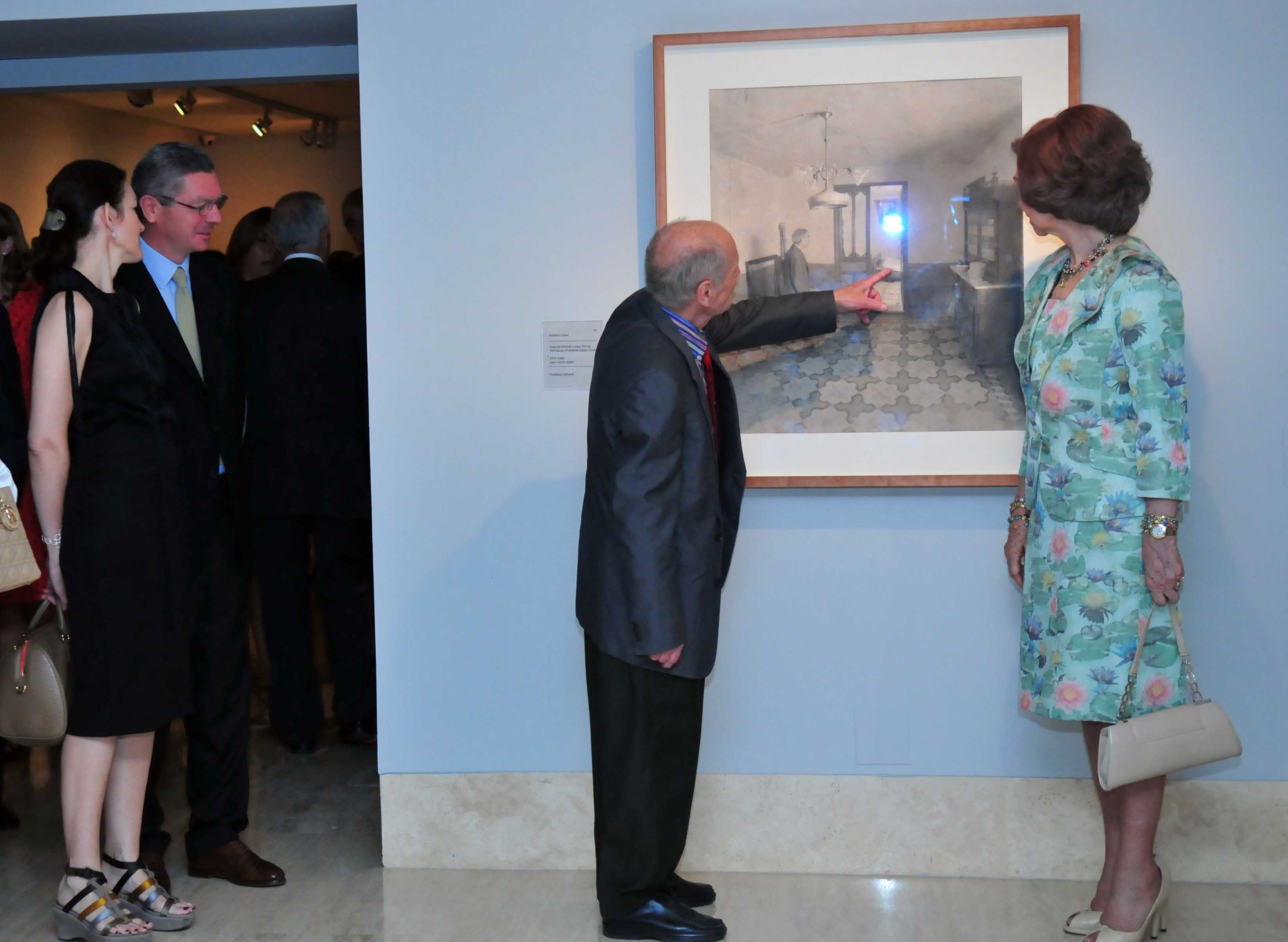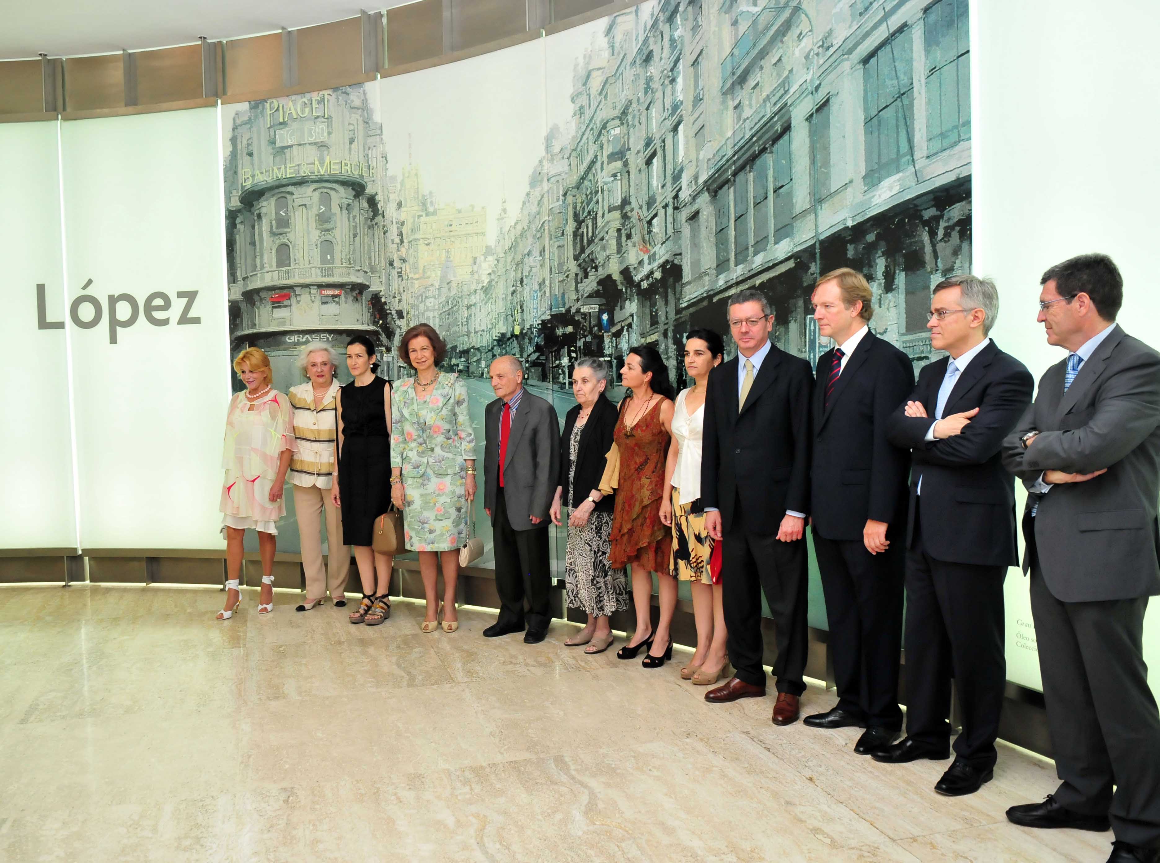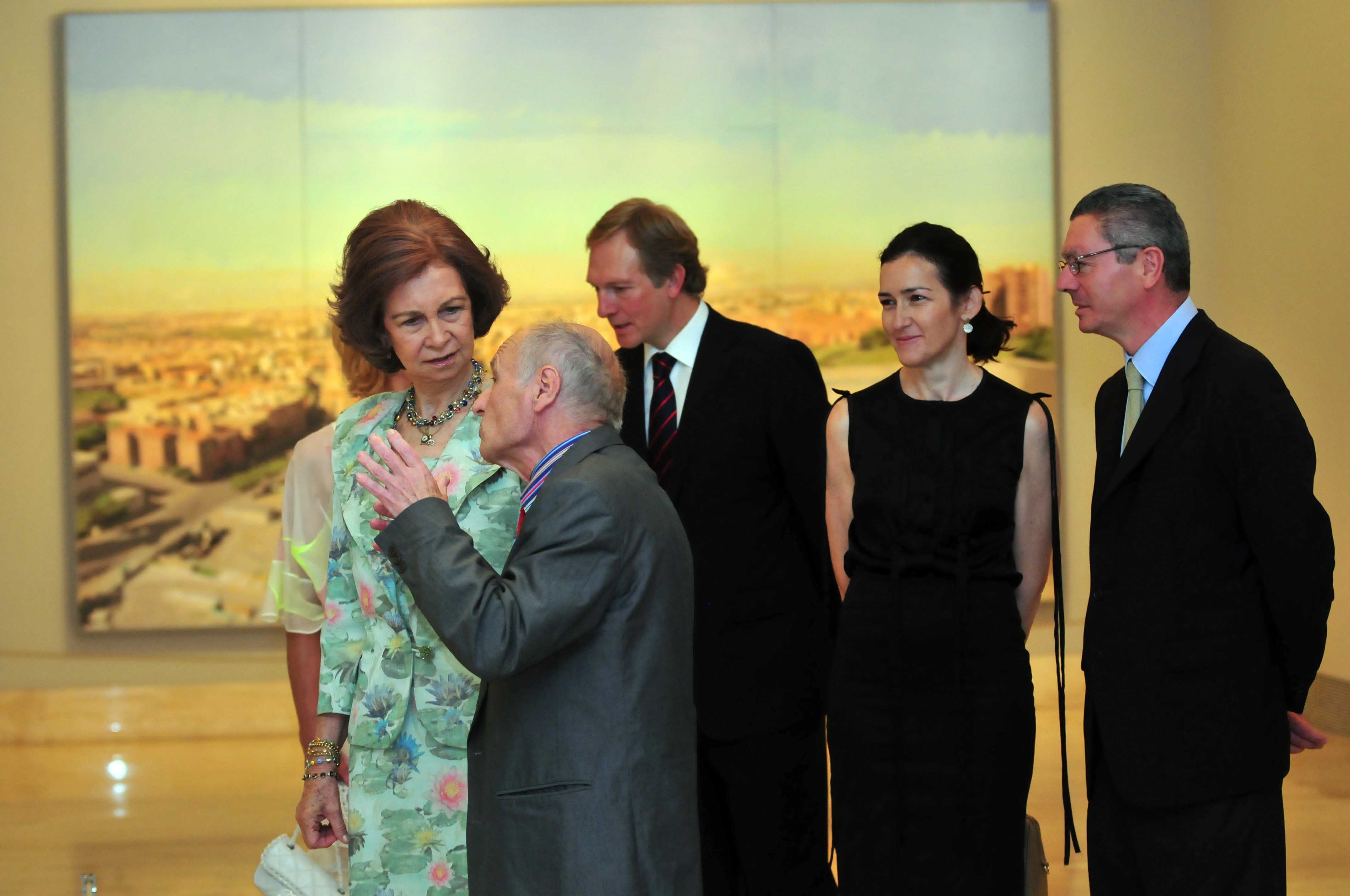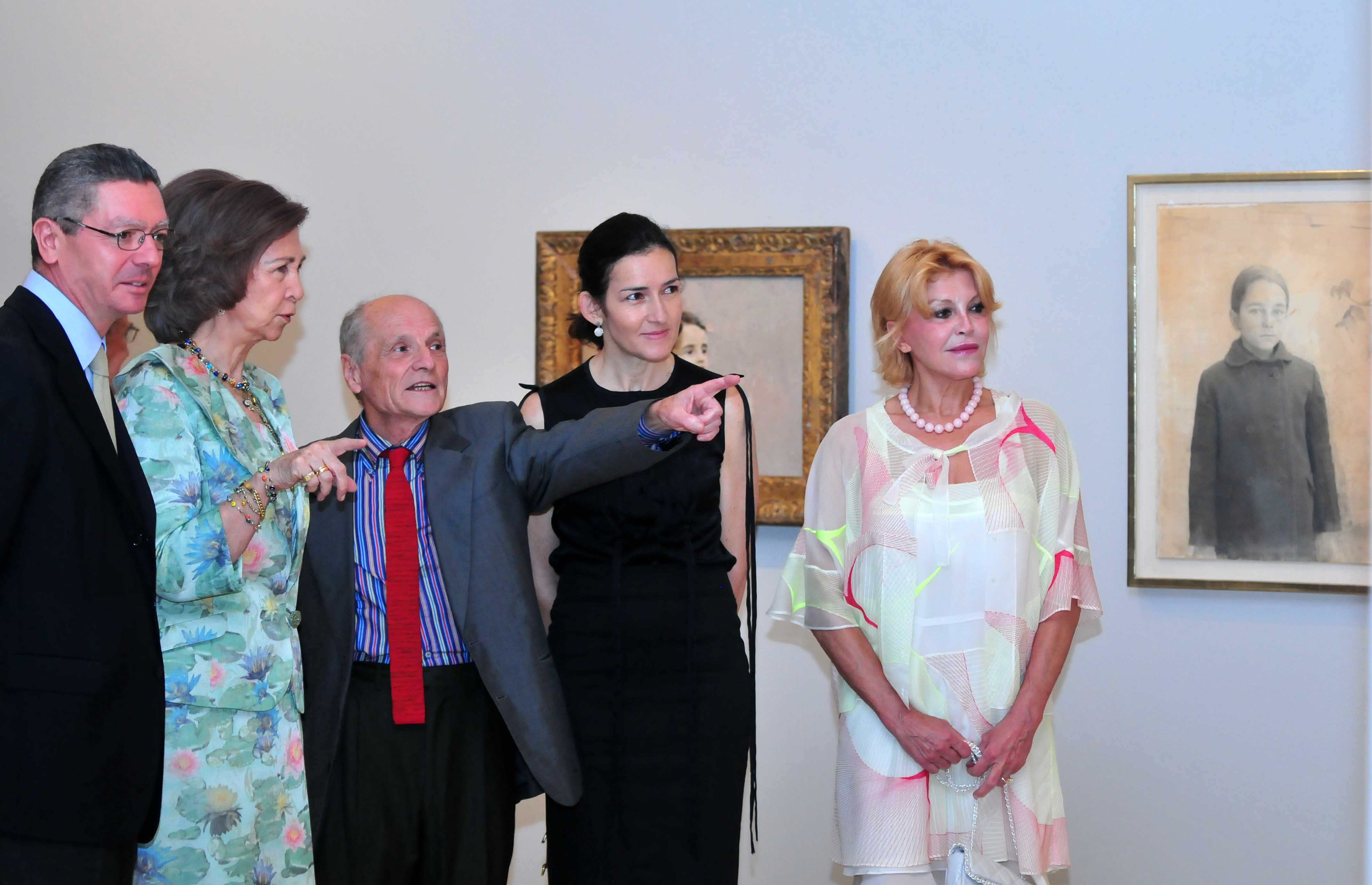 Distintos momentos de la inauguración de la exposición antológica de Antonio López que, desde mañana y hasta el 25 de septiembre, acoge el Museo Thyssen Bornemisza. S.M. la Reina Doña Sofía ha inaugurado la muestra, acompañada por el pintor; el alcalde de Madrid, Alberto Ruiz-Gallardón, y la ministra de Cultura, Ángeles González Sinde, entre otros.