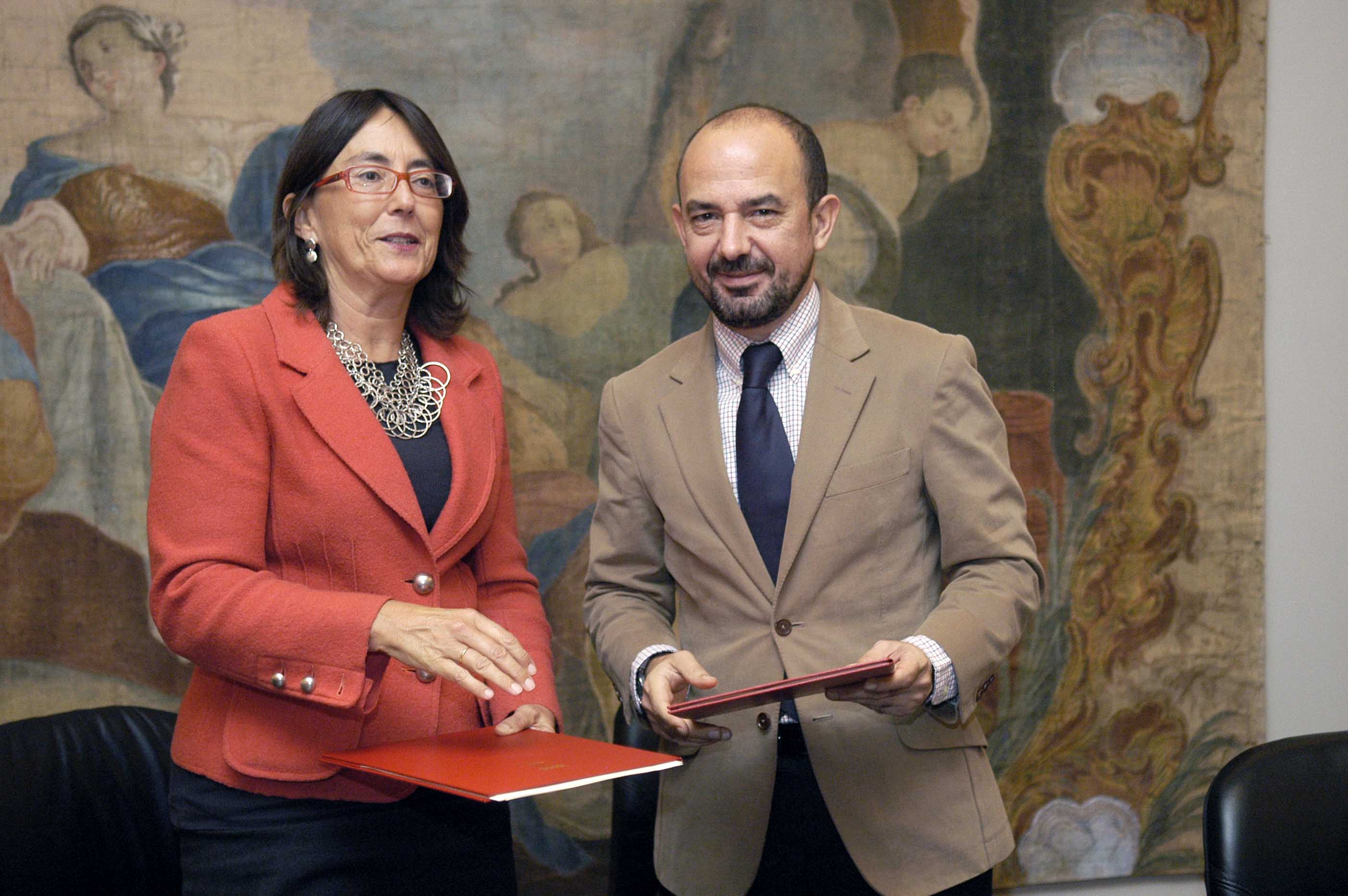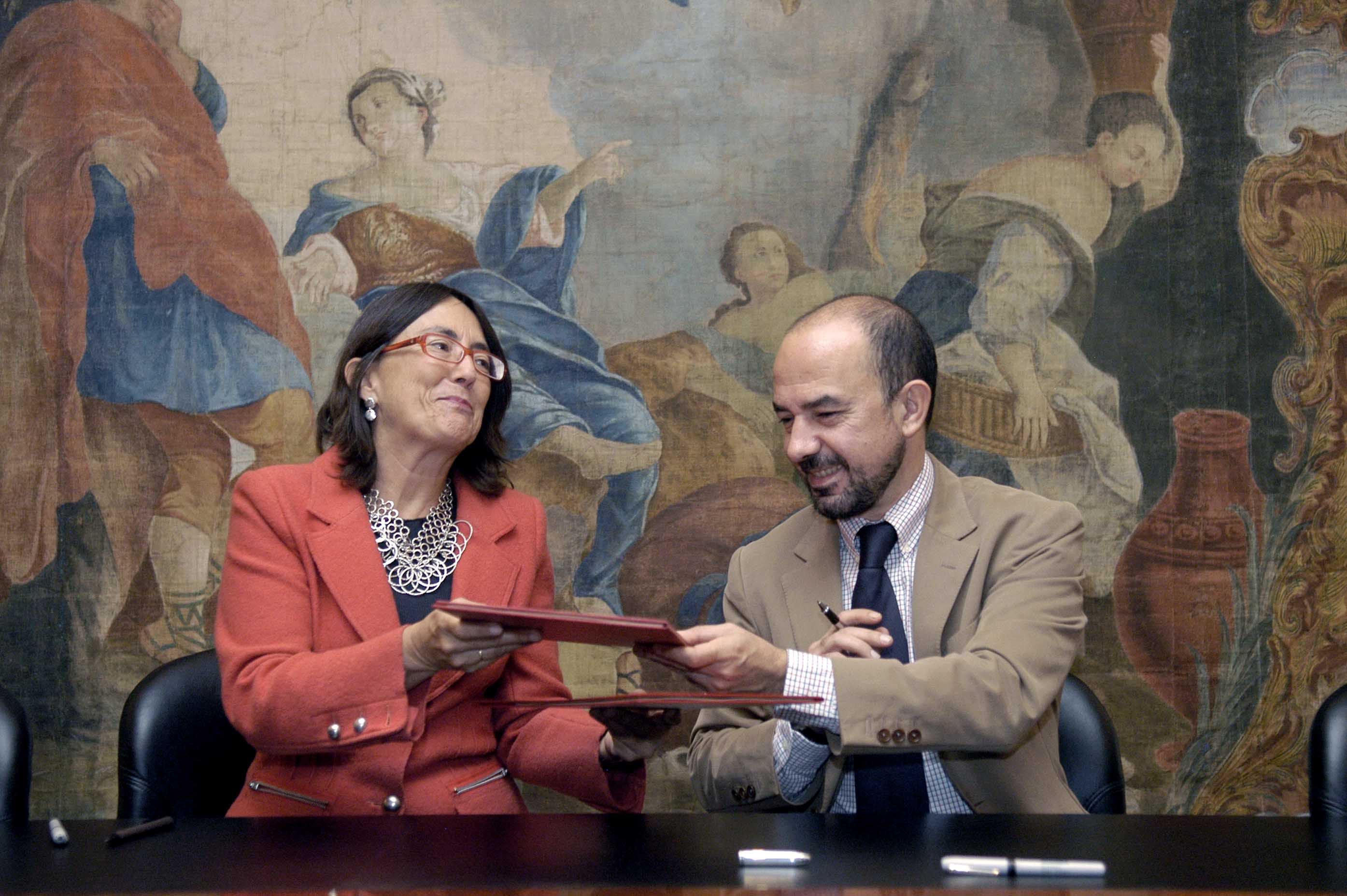El delegado de Economía y Empleo, Miguel Ángel Villanueva, y la presidenta de la Fundación Rafael del Pino, María del Pino, han firmado un acuerdo de colaboración para formar a los emprendedores que tienen sus proyectos en los viveros empresariales del Ayuntamiento.