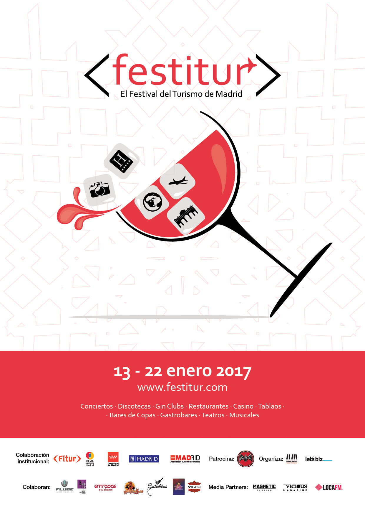 Esta mañana ha tenido lugar la presentación de la 3ª edición de FESTITUR, el Festival del Turismo de Madrid que, desde hoy y hasta el próximo día 22, es la antesala de la 37ª edición de la Feria Internacional del Turismo de Madrid (FITUR) que comienza el 18 de enero. Organizado por la Asociación de Empresarios de Ocio Nocturno de la Comunidad de Madrid, FESTITUR quiere ser el escaparate de las experiencias –gastronómicas, lúdicas, hosteleras...– que Madrid ofrece a los profesionales del turismo que estarán en FITUR. Una de las principales novedades de esta tercera edición es que el Ayuntamiento se suma incorporando al festival el ciclo musical Inverfest, que se celebra durante estos días en el Teatro Circo Price. Las más de 9.600 empresas que mostrarán sus propuestas en FITUR dan buena cuenta del impacto que tiene la Feria en la vida madrileña.