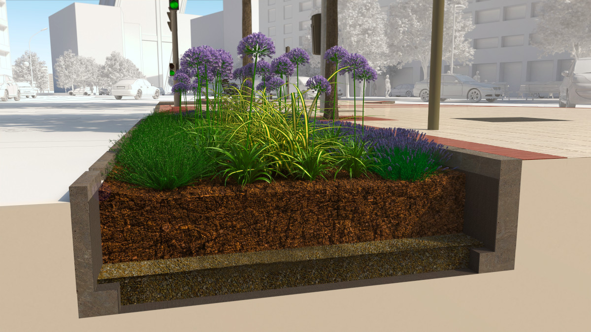 - El objetivo es conseguir recoger, limpiar e infiltrar no solo el agua de aceras y parques, sino también la escorrentía de lluvia procedente de las superficies viarias y aparcamientos