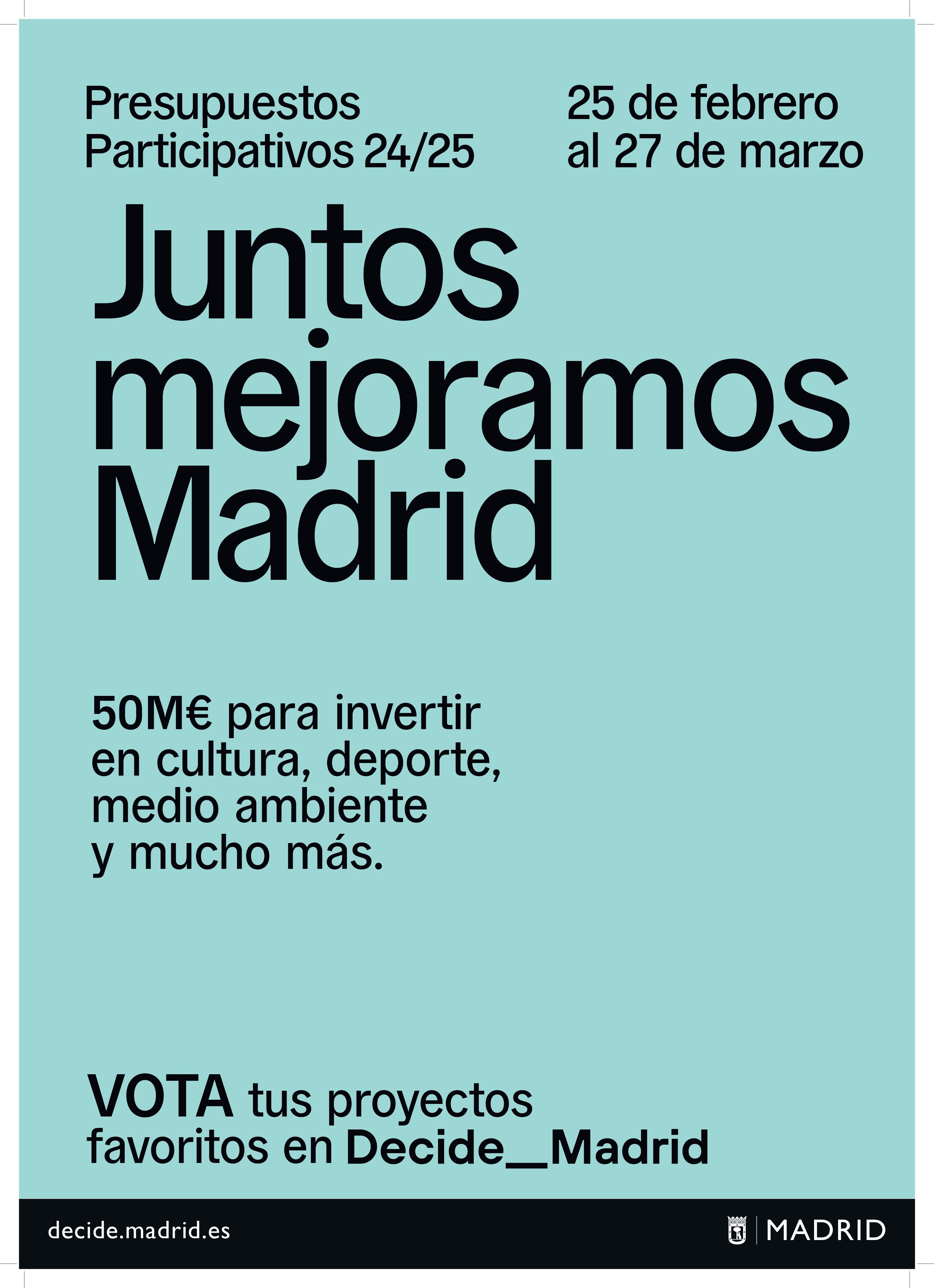 La información sobre los presupuestos participativos 2024-25 y sobre el proceso de votación está disponible desde hoy en https://decide.madrid.es/presupuestos./