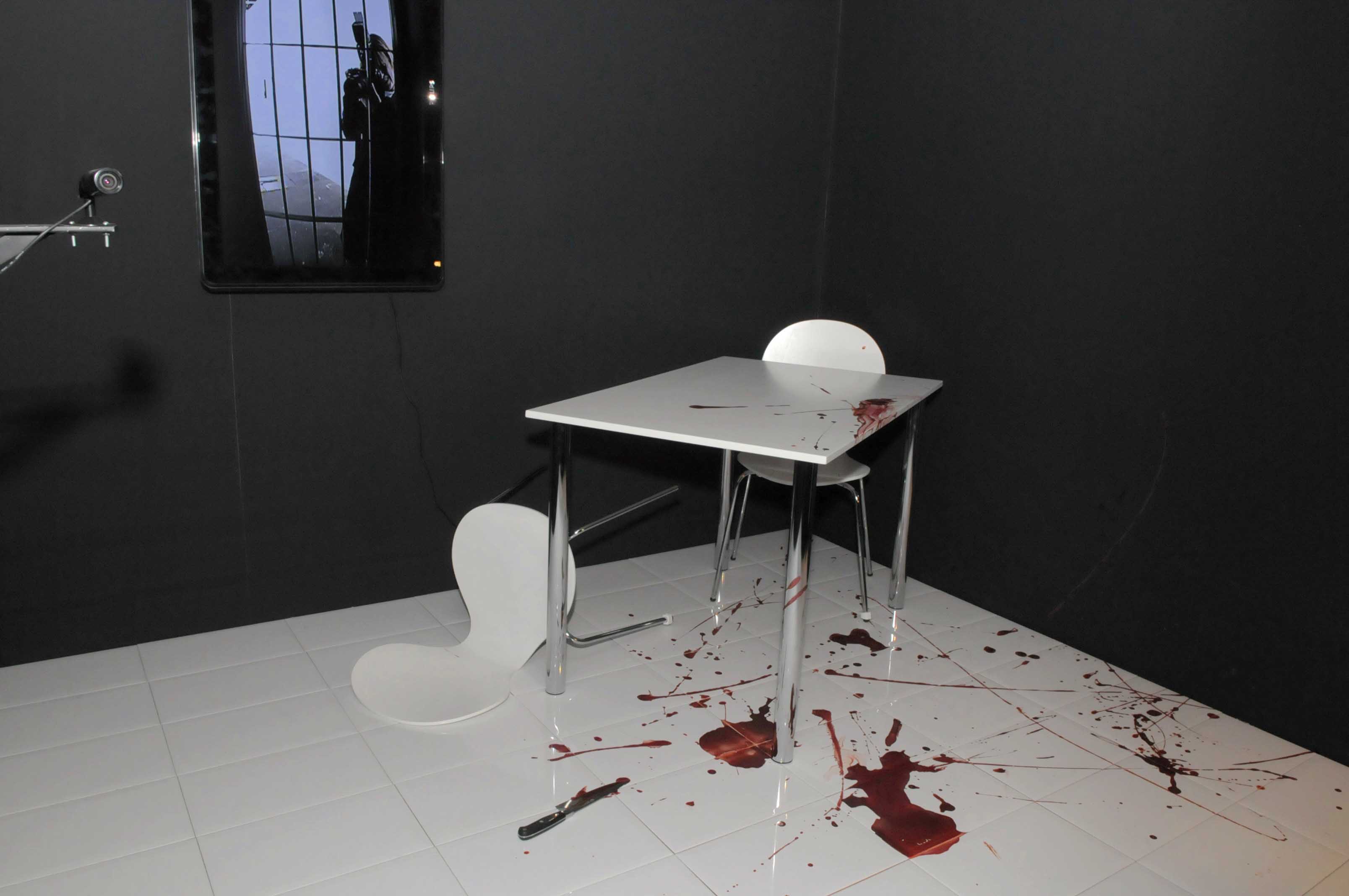 En un segundo nivel, un circuito cerrado de televisión permite al espectador observarse a sí mismo, en su condición de público, voyeur de la muerte de una mujer, de la que le separa una puerta enrejada imposible de franquear. La violencia que provoca el choque entre lo percibido y lo conocido, unida a esa condición de partícipe pasivo, produce en el observador una profunda sensación de impotencia que le conduce irremediablemente a la reflexión.