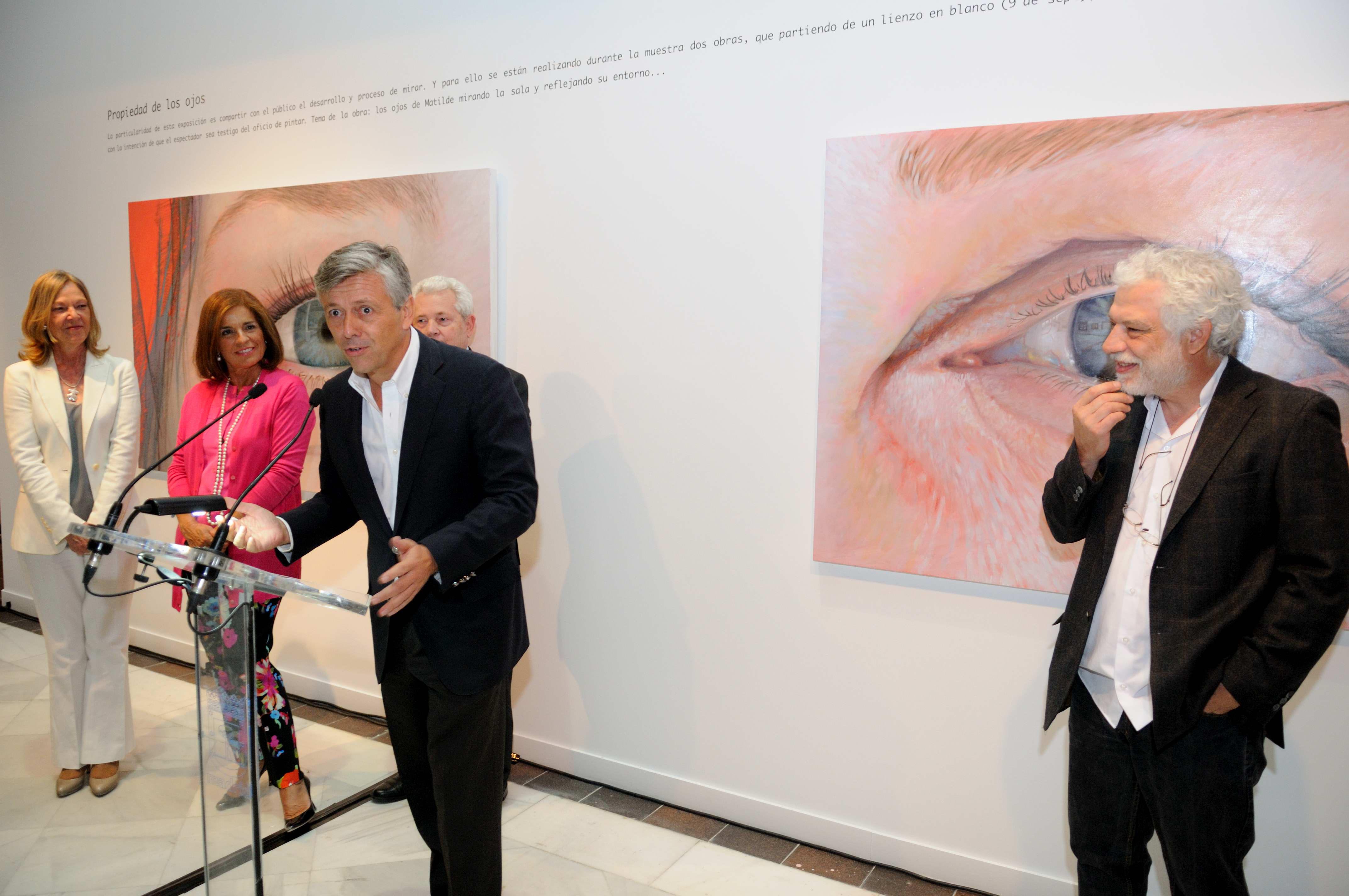 Madrid es cultura en todos sus distritos”, ha asegurado la alcaldesa de Madrid, Ana Botella, en la inauguración de “…Propiedad de los ojos”, una muestra de las obras de dos artistas singulares, Aldo Bahamonde y su discípulo Javier Herreros de Tejada, abierta desde esta tarde en el Centro Cultural Casa de Vacas, en el Parque de El Retiro. A través de 48 obras, 24 de cada uno, se puede apreciar la particular visión de estos dos artistas, su búsqueda de la belleza, la firmeza de su lenguaje figurativo proyectado en escenas interiores y en figuras humanas. Botella ha alabado la calidad de las obras y el diálogo pictórico que se establece, a través de sus composiciones, entre profesor y alumno, entre dos culturas hermanadas, en esta ocasión, a través del testimonio plástico de un autor español y otro chileno./