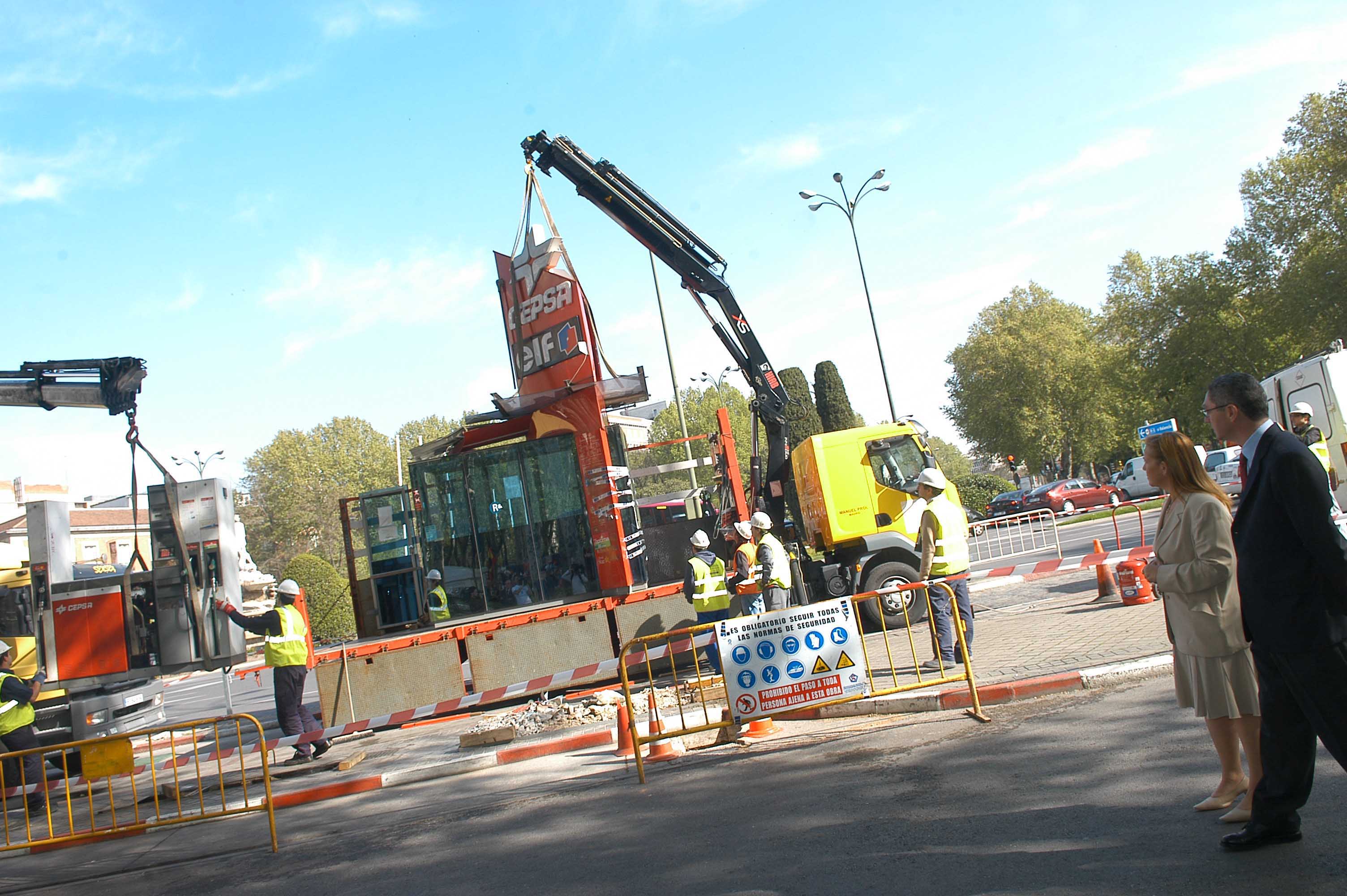 “Esta estación de suministro de combustible hoy pasa a la historia, al igual que ocurrió con la situada delante del edificio de Caixaforum. La desaparición de ambas ha sido posible gracias al Convenio suscrito con Repsol-YPF y CEPSA para resituar 12 surtidores del centro, de los que ya se han desmontado 9, y otros 3 lo serán en mayo”, señaló Ruiz-Gallardón.